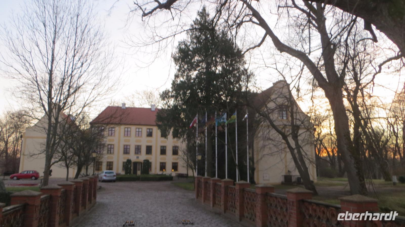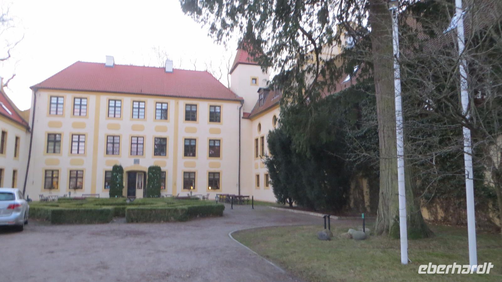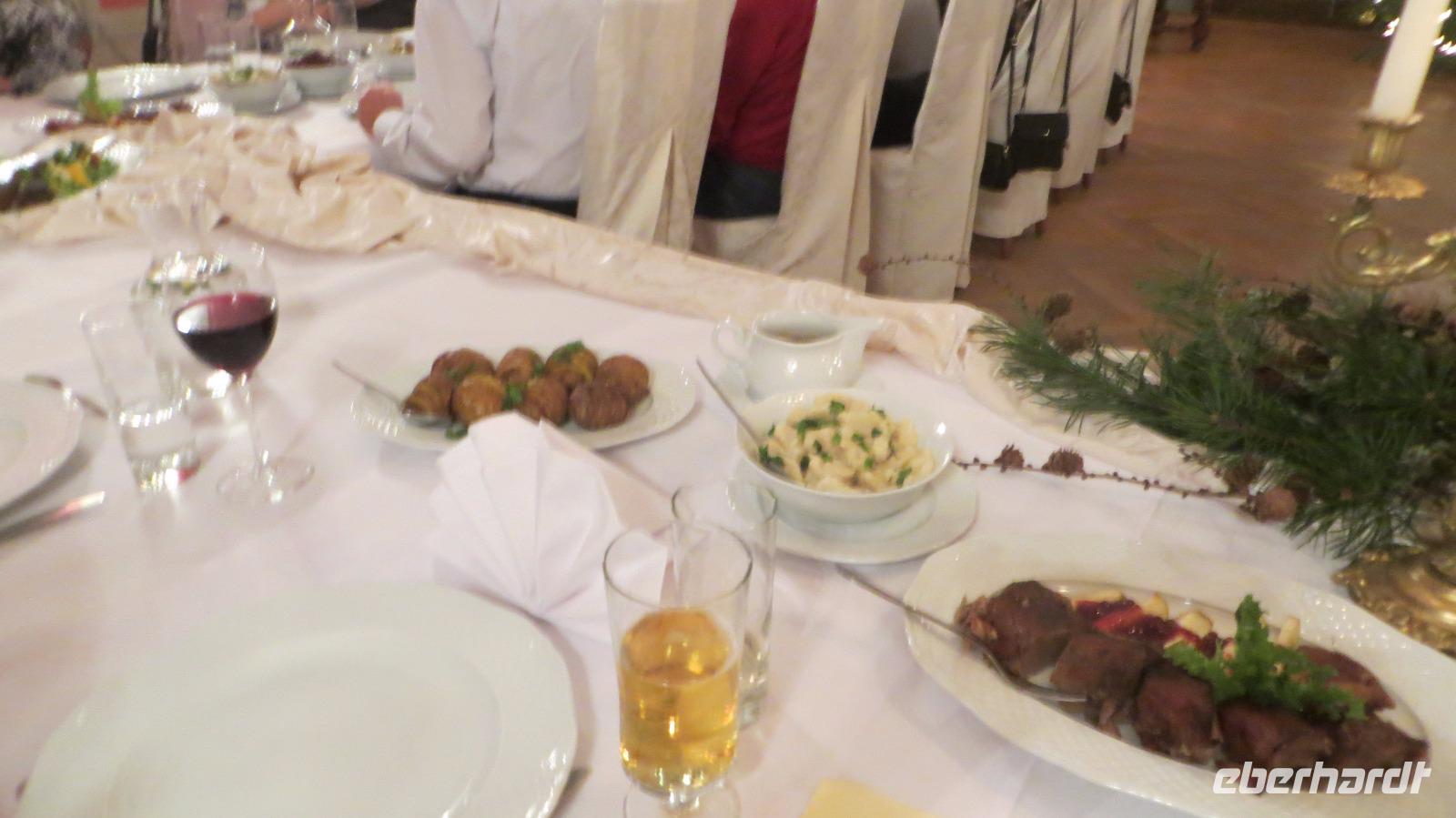 Am frühen Abend erreichten wir das Schloss. Nachdem alle ihre Zimmer im Schloss oder Gästehaus bezogen hatten, trafen wir uns zum Abendessen. Das Menü, Creme aus gebratenen Rüben, Zander auf Zuccinikuchen und das leckere Dessert, Ricotta mit Orangen, kam bei allen sehr gut an. Danach saßen wir noch gemütlich beisamen.