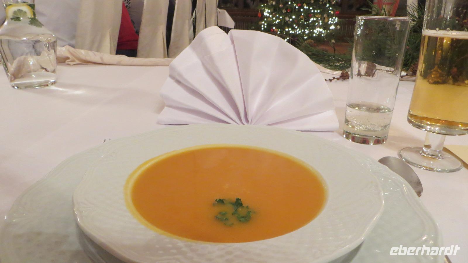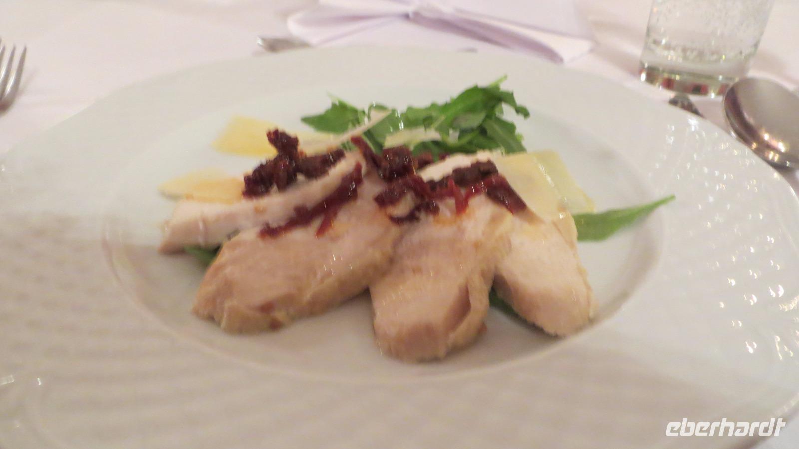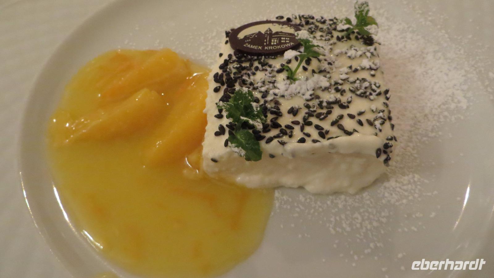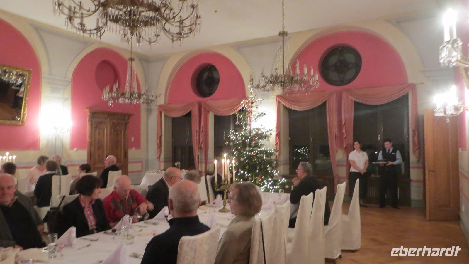 Am frühen Abend erreichten wir das Schloss. Nachdem alle ihre Zimmer im Schloss oder Gästehaus bezogen hatten, trafen wir uns zum Abendessen. Das Menü, Creme aus gebratenen Rüben, Zander auf Zuccinikuchen und das leckere Dessert, Ricotta mit Orangen, kam bei allen sehr gut an. Danach saßen wir noch gemütlich beisamen.