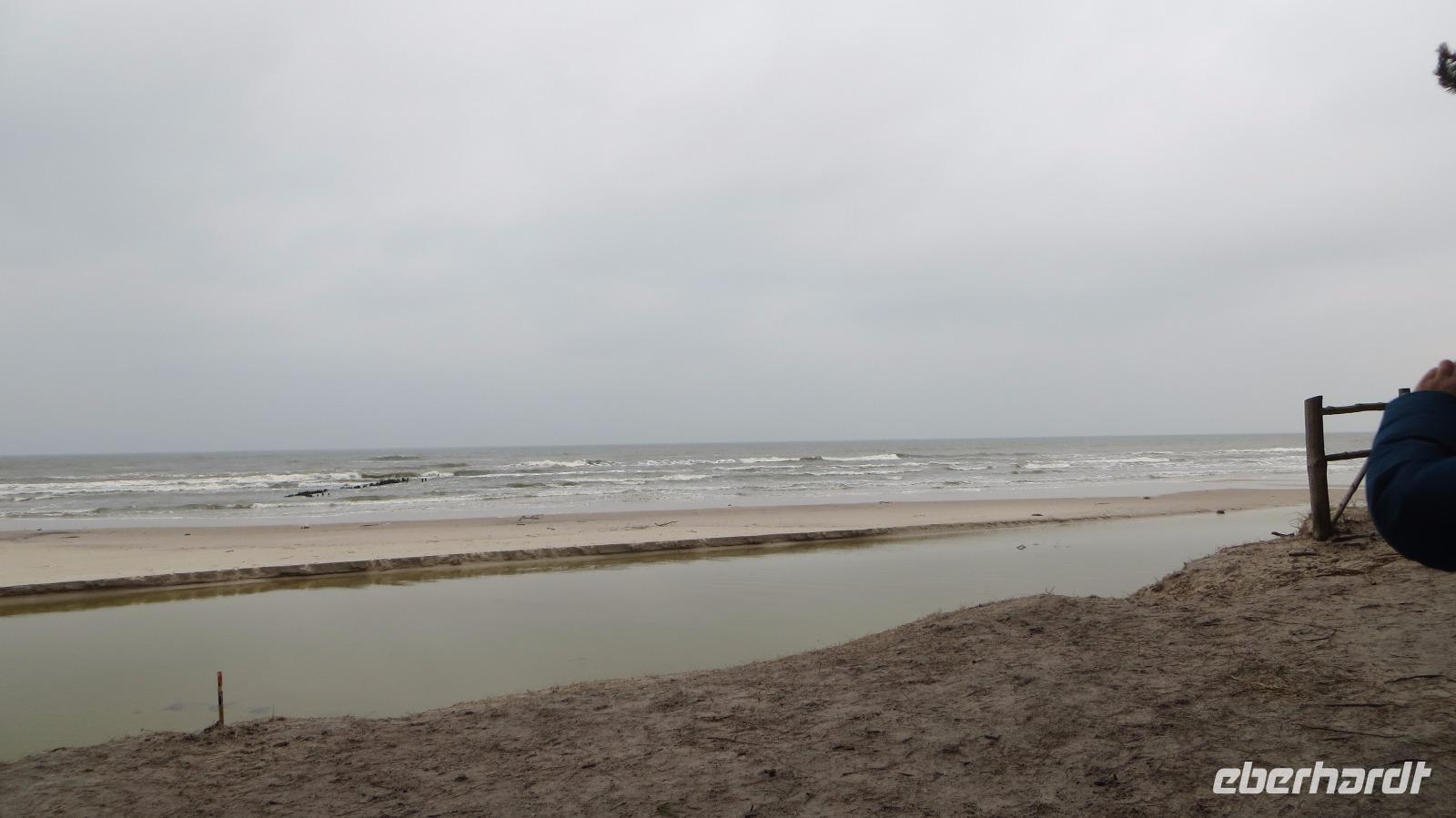 Nach einem späten Frühstück fuhren wir mit dem Schlossbus und Patricia zum Strand. Sie zeigte uns wo die Grenze nach dem Versailles Vertrag (28.6.1918) verlief. Direkt an der Ostsee entlang spazierten wir zurück. Die frische Luft war toll. Dann gings zum Mittagessen zurück zum Schloss.
