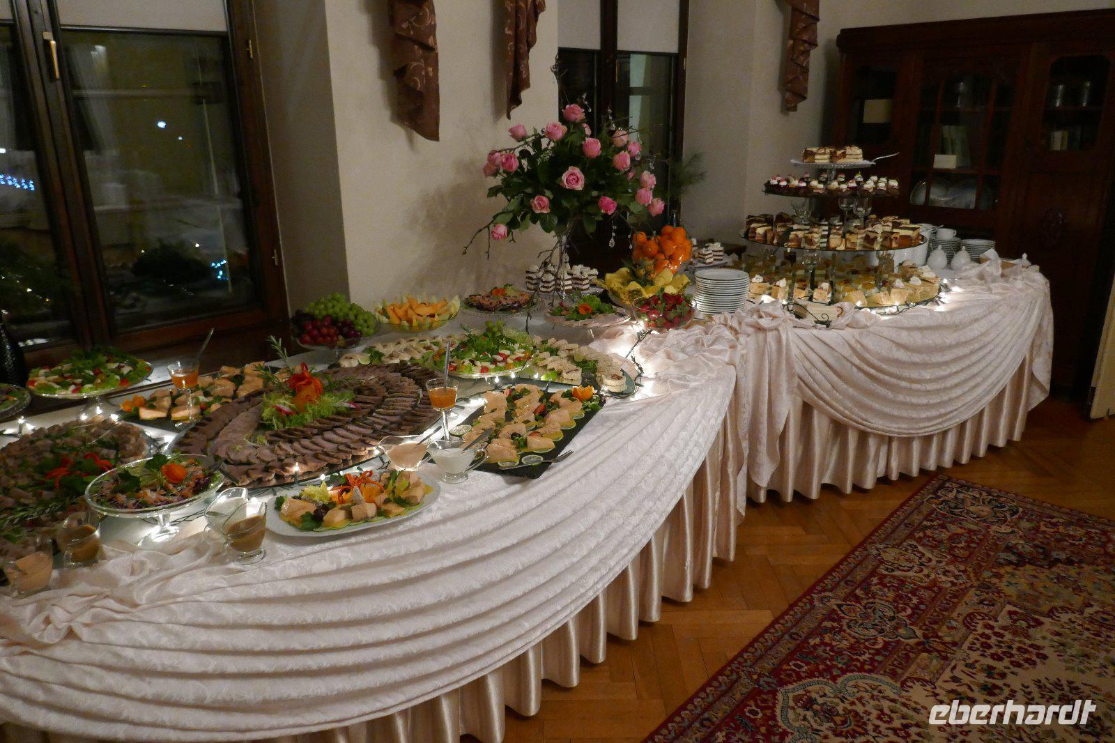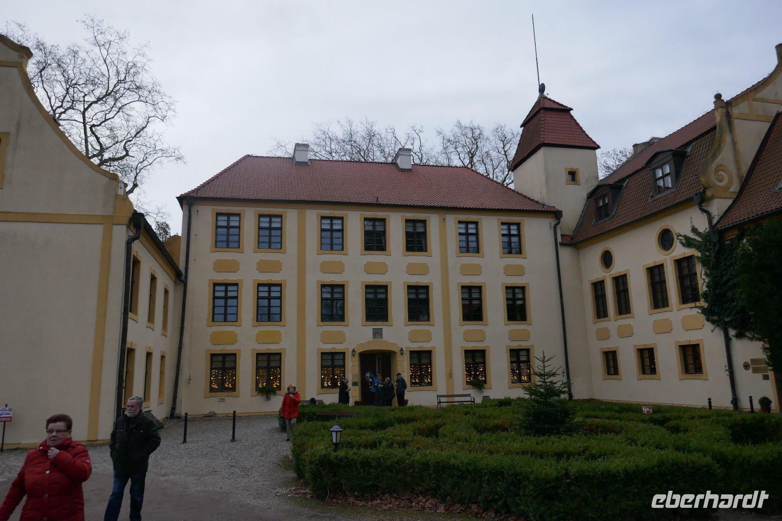 Schloss Krokowa, auf dem noch heute um Mitternacht die „Weiße Dame" durch die Räume spaziert und in den umliegenden Dörfern bei Gewitter der „Wilde Graf" auf dem schwarzen Ross sein Unwesen treibt, sollte für 31 Gäste das Domizil ihrer Silvesterreise sein. Schon frühmorgens ging es von Chemnitz über Dresden und Berlin, vorbei an Stettin nach Krokowa. Es war schon Dunkel als wir das Schloss erreichten. Nachdem die Zimmer bezogen waren blieb noch etwas Zeit in abendlicher Stimmung das Schloss und seine Umgebung zu erkunden. Der erste Tag klang mit einem leckeren Abendessen aus.