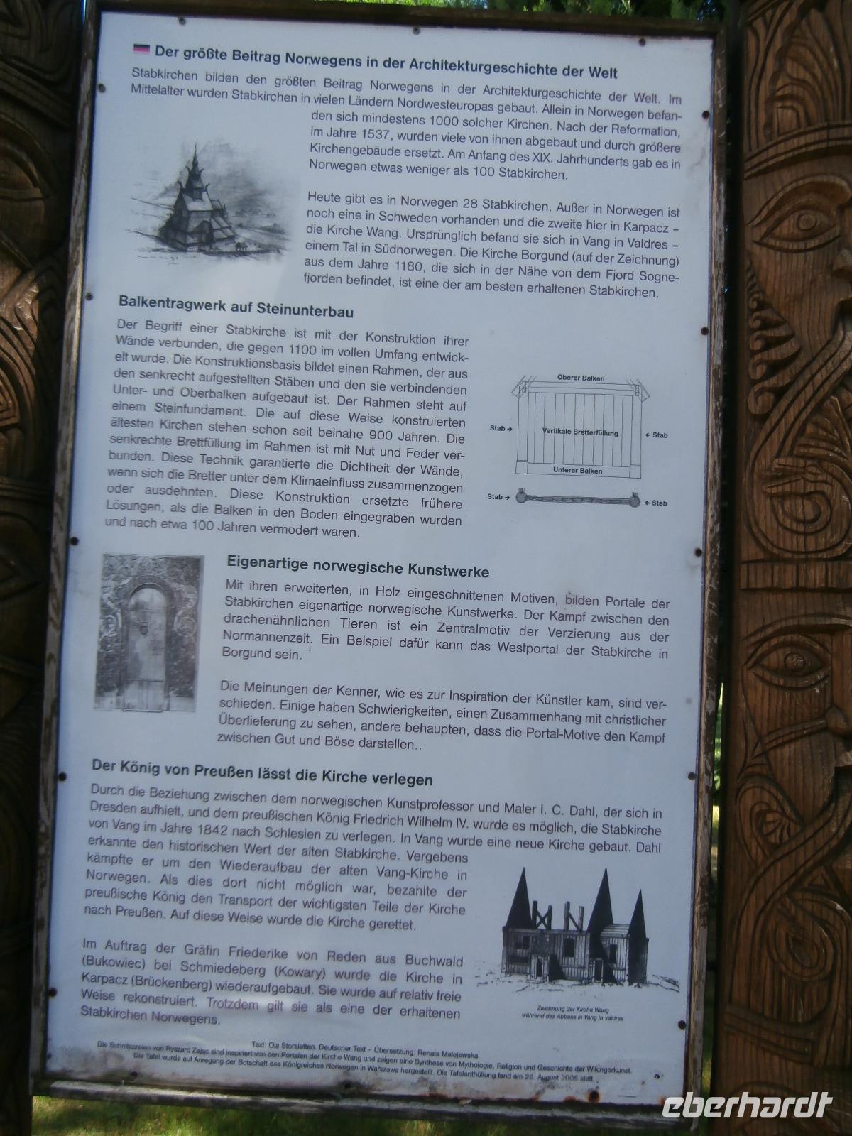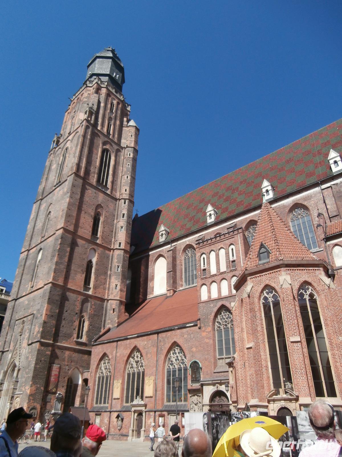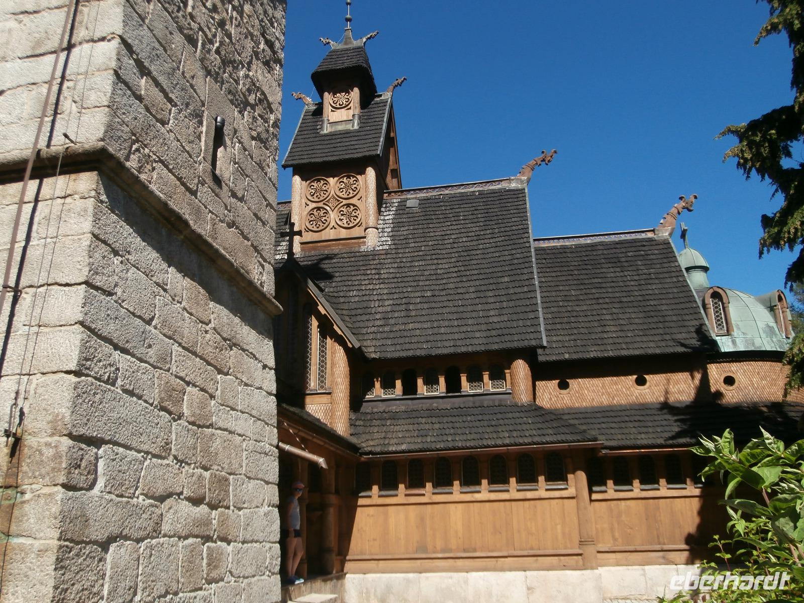 Nach einem ausgiebigen Frühstück starten wir bei Super Sommerwetter zur Rundfahrt durch das Reich Rübezahls, in das Riesengebirge. Ewa ist auch heute wieder mit uns unterwegs und erzählt uns viel über dieses höchste Teilgebirge der Sudeten, gelegen an der Grenze zwischen Polen und Tschechien. Mit der Schneekoppe, die wir heute gut zu sehen bekommen, erreicht das Riesengebirge eine Höhe von 1602 Metern. Es ist als Nationalpark geschützt, die Landschaft wirkt alpiner als es die Höhe vermuten lässt, das Klima ist rau und Schnee bleibt in der Regel sechs Monate liegen. Am Fuße der Schneekoppe liegt Karpacz und hier besuchen wir die wichtigste Attraktion der Stadt, die Stabkirche Wang. Sie wurde im südnorwegischen Wang abgebaut, König Friedrich Wilhelm IV. kaufte sie, um diese Kirche vorm Abriss zu bewahren. Sie wurde in Einzelteile zerlegt und per Schiff, Eisenbahn und Pferdekarren schließlich nach Krummhübel gebracht. Am 28. Juli 1844 wurde die Stabkirche eingeweiht. Da in der Kirche eine Hochzeit gefeiert wurde, müssen wir etwas Geduld aufbringen, aber gegen Ein Uhr betreten wir dieses fantastische Bauwerk. Wir werden mit Glockenklang und Orgelmusik empfangen und auch über die Geschichte und Bauweise informiert man uns. Im Restaurant „Karzcma Polska" werden wir mit Musik auf dem Schifferklavier begrüßt, ein leckeres 2 Gang Menü wird uns serviert und zur Musik wird viel gesungen. Das Rübezahl Lied und auch das Lied vom Riesengebirge stimmen wir gemeinsam an. Ein wunderschöner Ausflug, der Besuch im Reich von Rübezahl, geht am späten Nachmittag zu ende. Ein abendlicher Spaziergang beschließt unseren Aufenthalt in Breslau.