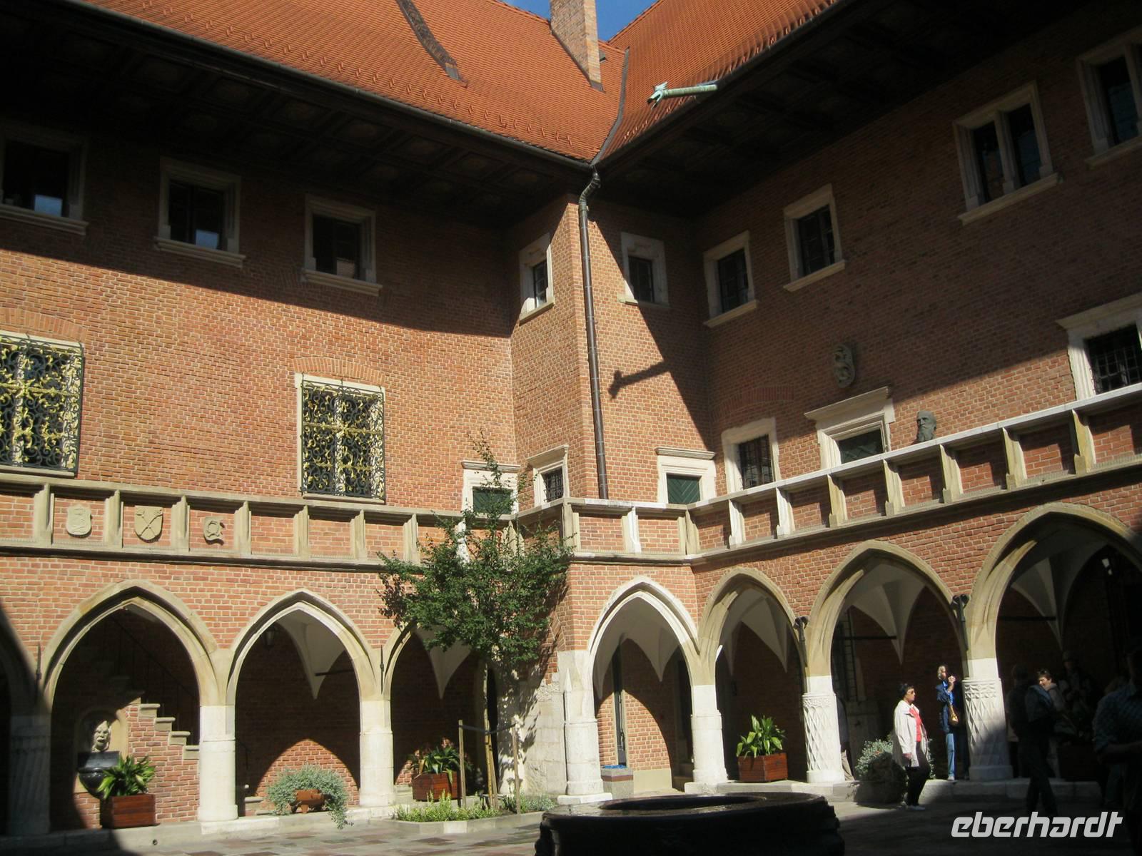 Heute holte uns unser ÖRL Christian vom Hotel ab und mit wenigen Schritten waren wir am Rynek.Von dort aus erkundeten wir das im Jugendstil ausgeschmückte Franziskanerkloster.Am grünen Stadtgürtel vorbei erreichten wir die Jagelonen Universität.Im Hof des ältesten Gebäutes ,in dem schon Kopernikus wirkte, lauschten wir der Uni- Hymne und beobachteten den Umzug des Patronats.Nun mußten wir uns sputen,wollten wir doch in der Marienkirche die Öffnung des VEIT Altares nicht verpassen.Ein einmaliges Erlebnis.Danach brauchten wir eine Pause .Pünktlich tafen wir uns beim "Adamsche" wieder um ein Gruppenfoto zu schießen.Anschließend spazierten wir Richtung Wawel und bestaunten zuerst die Stanislaus Kirche (Kathedrale )Hier ist nicht nur die Grablege der meisten pol.Herrscher ,sondern hier predigte auch Papst Johannes Paul II bis zu seiner Berufung nach Rom.Das Schloß mit seinen Innenräumen stand als nächstes auf unserem Plan.Eine fantastische Sammlung von Wandteppichen erwartete uns.Zum Schluß wurden wir von einem Feuerspeienden-Drachen verabschiedet.(kennen sie noch die Legende ?)