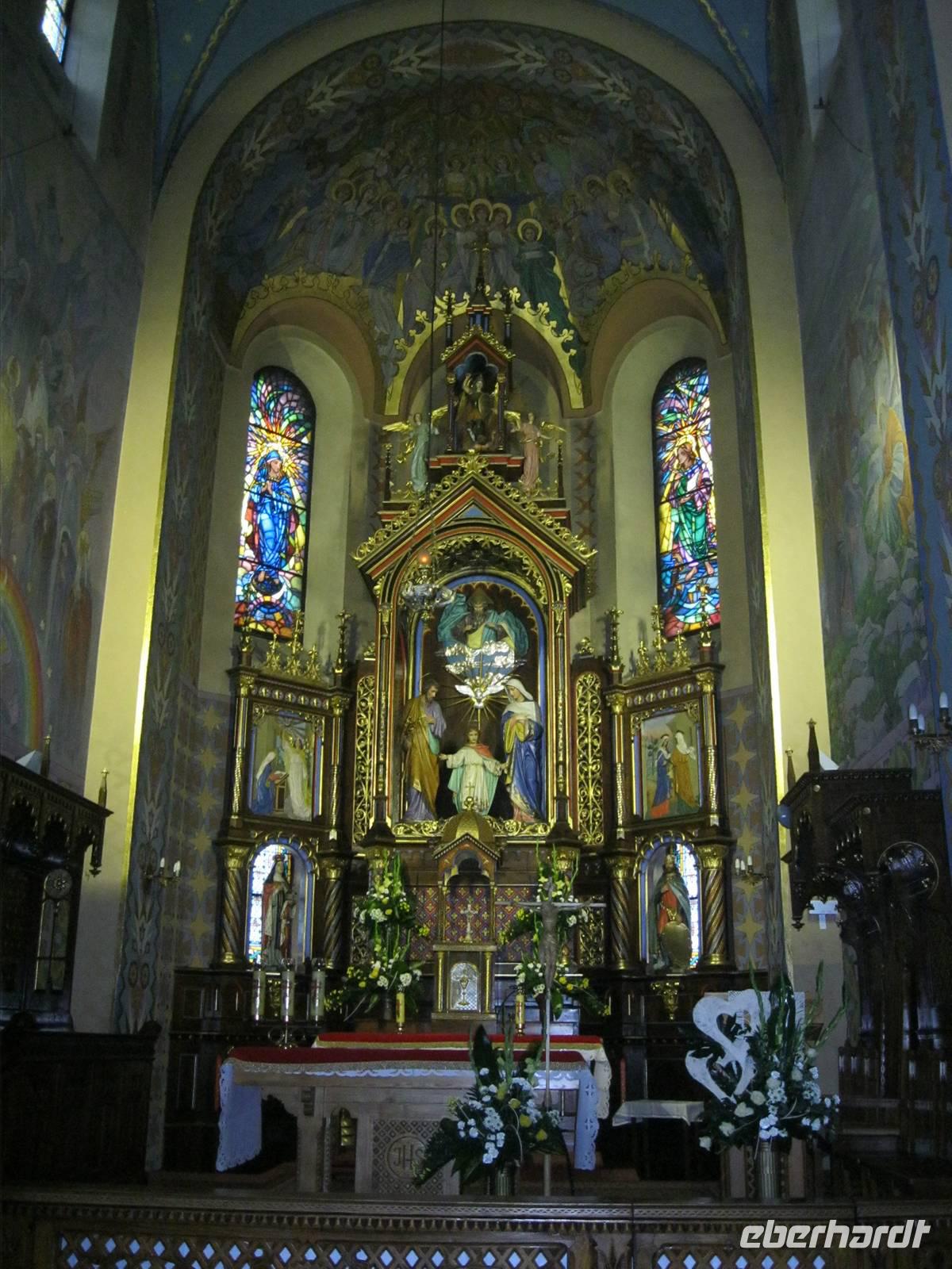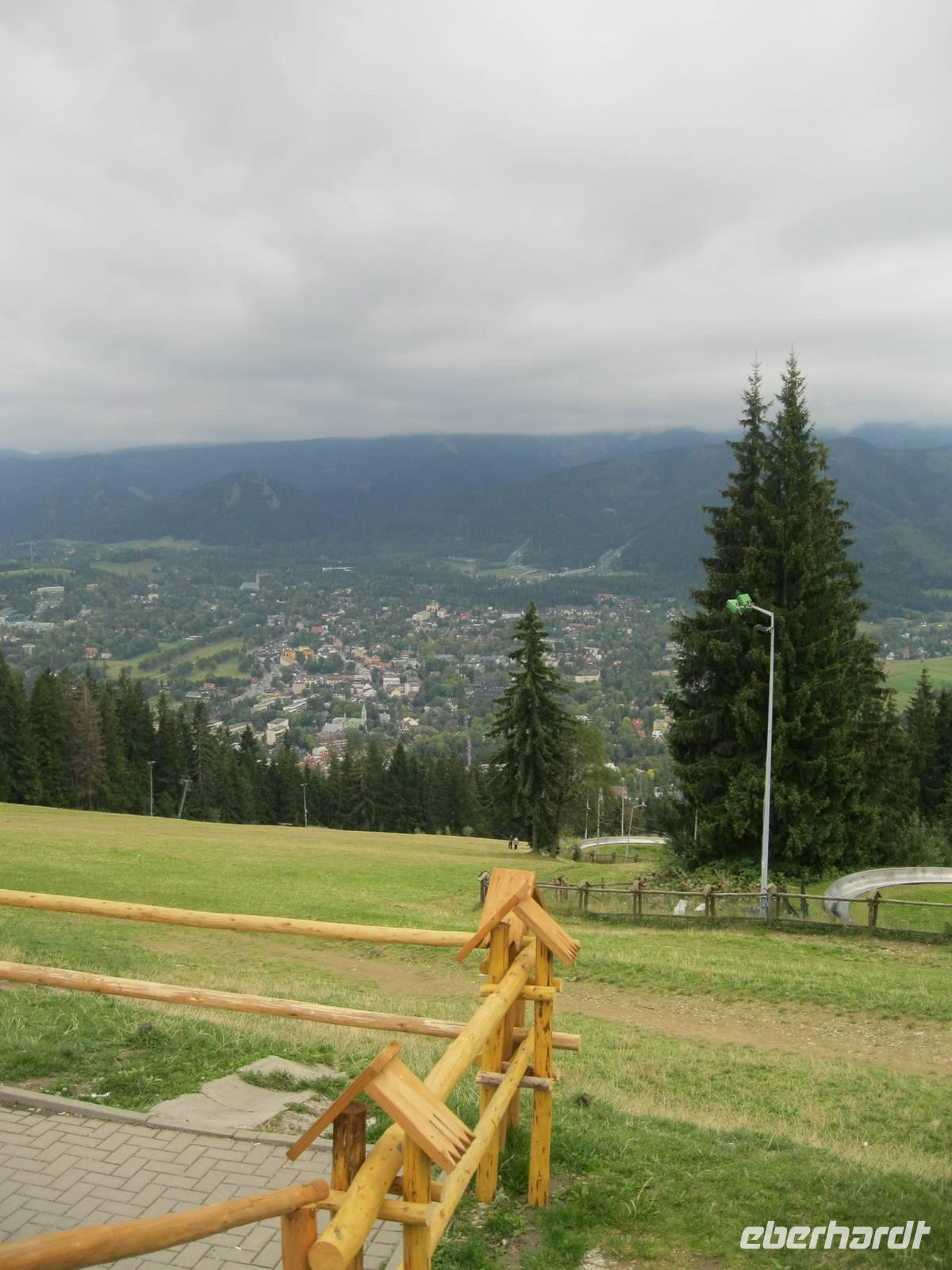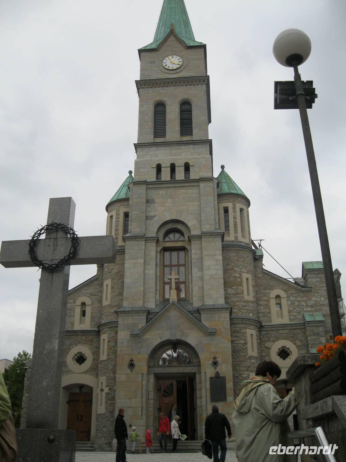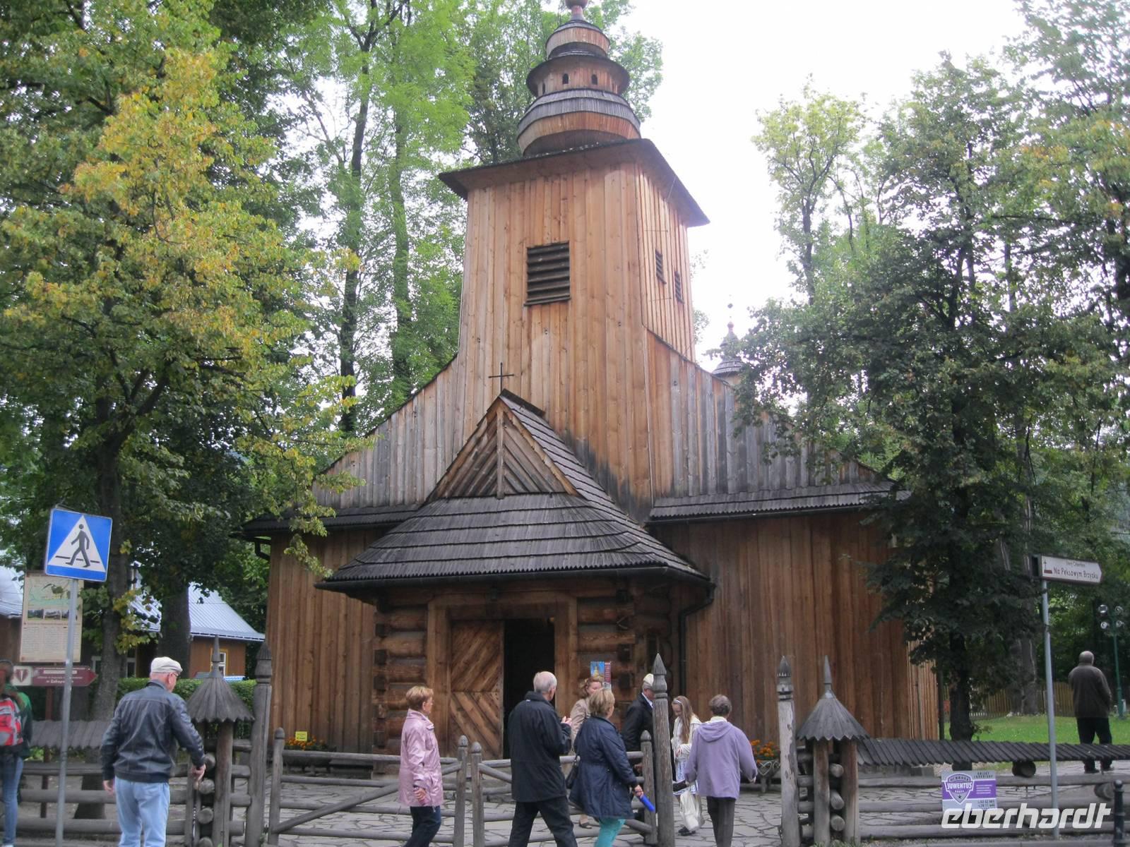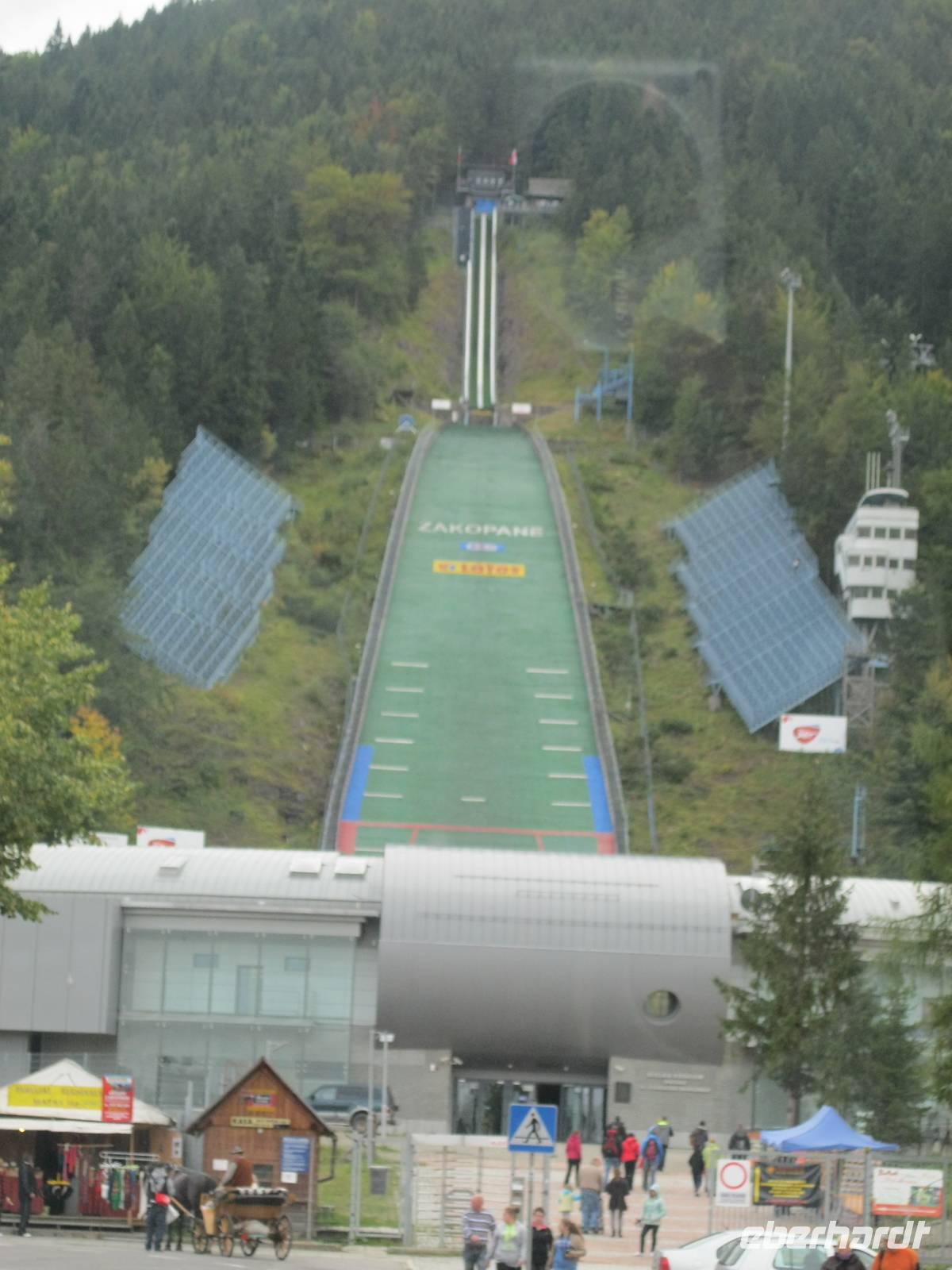 Auch heute war die Gruppe wieder geteilt.Der größere Teil wollte sich die Tatra anschauen. Wir lernten in Chocholow die typ.Bauweise der Goralenhäuser kennen.Meist nur zwei Stuben und alles aus Fichtenstämmen zusammengesetzt.Eine Käseverkostung durfte auf unsrerer Fahrt nicht fehlen.Der Geruch der Räucherei setzte sich überall fest.Nun erreichten wir Zakopane und besichtigten die alte Goralen Holzkirche nebst Friedhof.Danach liefen wir an Markständen vorbei zur Standseilbahn ,die uns hinauf zum Gubalowka brachte.Leider hatten wir, wettermäßig bedingt, keinen schönen Blick übers Land.Dies ließ uns aber nicht davon abbringen die Flugschanze zu besuchen.