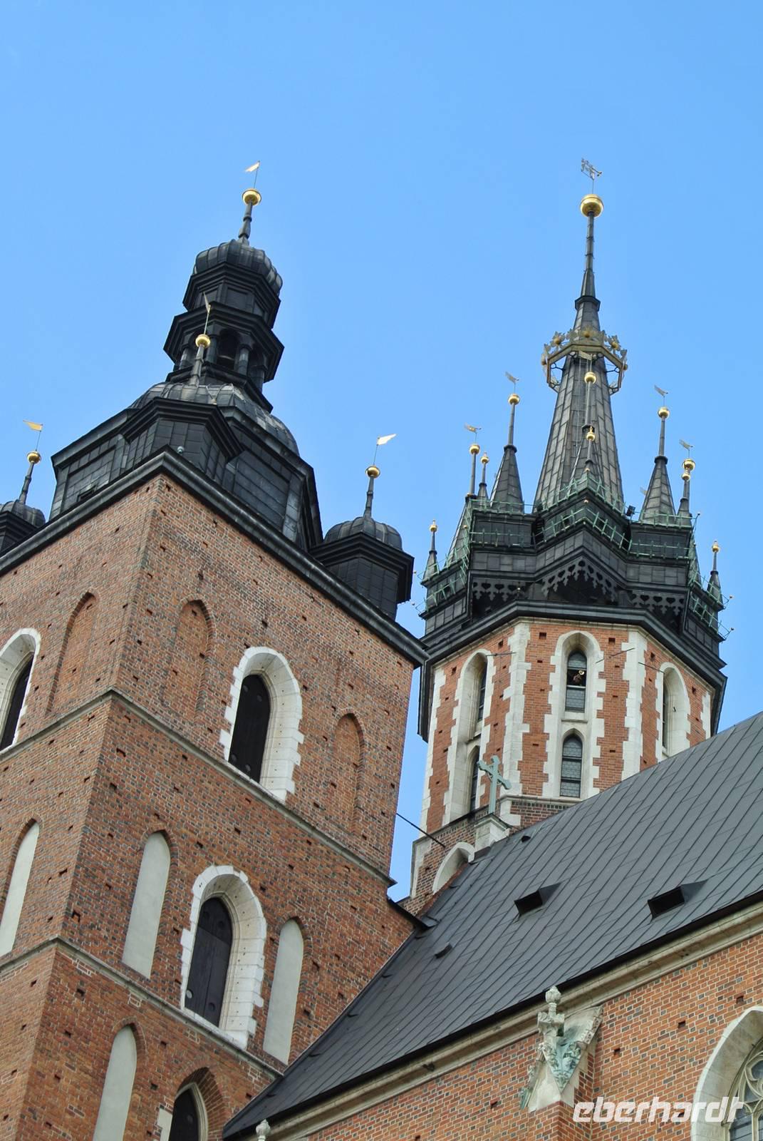 Jeden Tag zur vollen Stunde bläßt es den "Hejnal" in alle 4 Himmelsrichtungen. Dieser Brauch stammt aus aus dem 13.Jh., als die Tataren Krakau überfallen haben. Der Trompeter blies damals einen Alarm und wurde beim Spielen von einem Pfeil eines Tataren tödlich getroffen. Deshalb endet der Trompetenstoß abrupt.