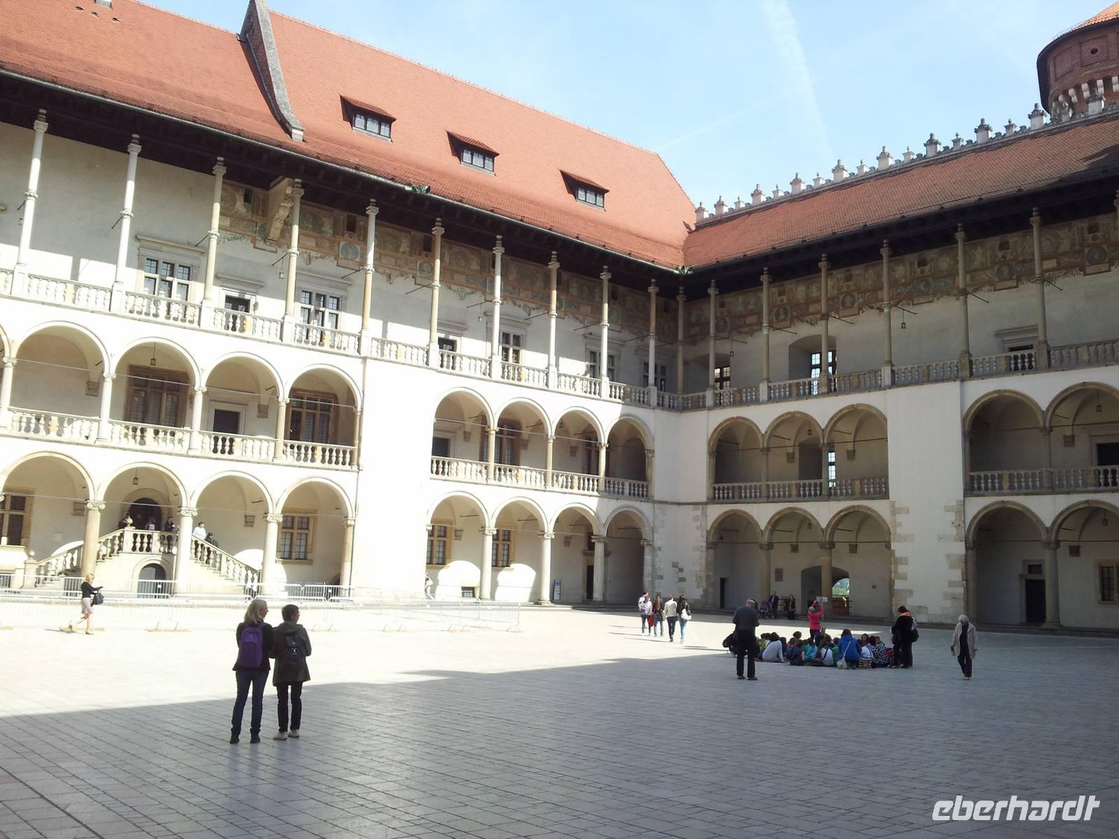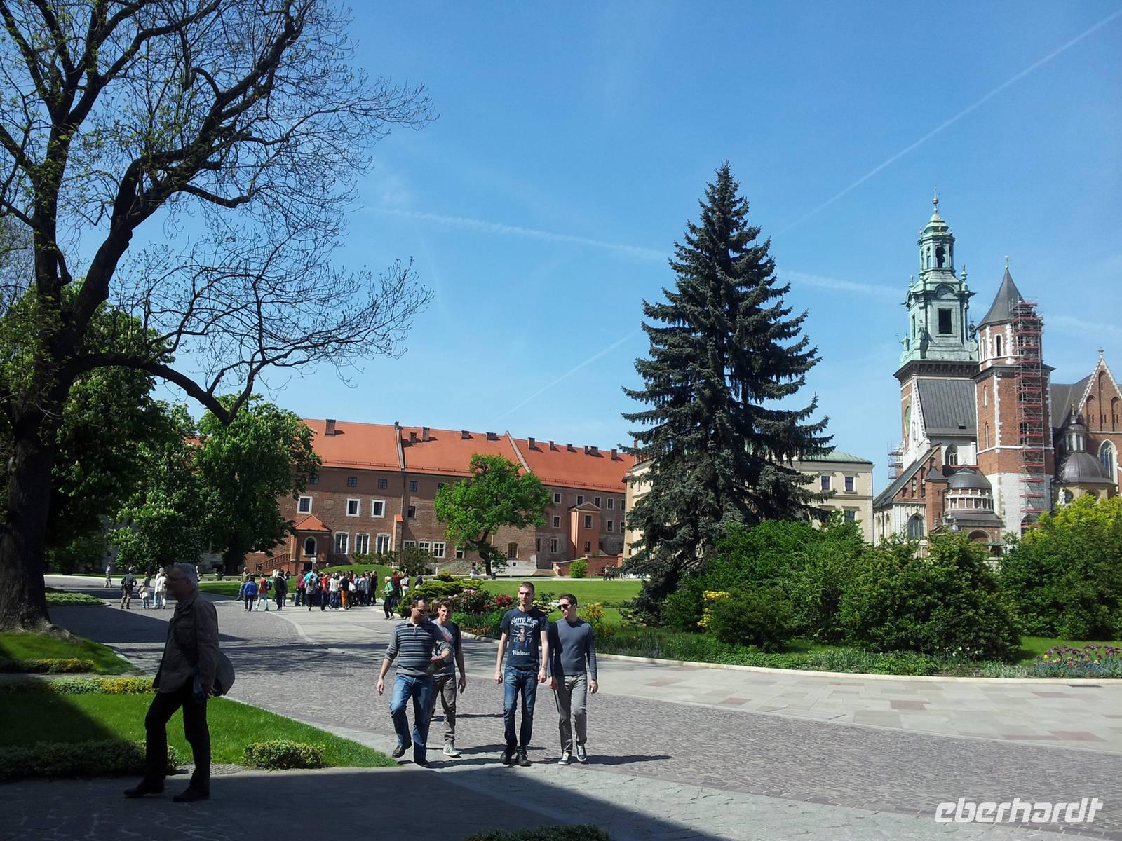 Nach einem kurzen Spaziergang bergauf zum Wawel, erschloss sich uns im Inneren die wunderschöne parkähnliche Schlossanlage mit vielen Restaurants, Souvenirläden Kaffeeterrassen - und dies bei schönstem Sonnenschein.