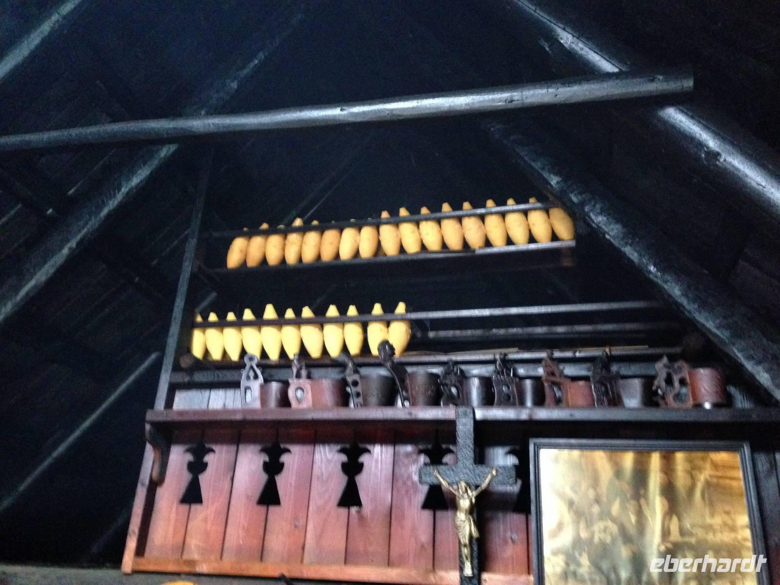 De Weg dorthin führt uns durch das Dorf Chocholow, ein Jahrhunderte altes Goralendorf. Ela beschreibt uns die typische Kleidung der Goralen und führt uns in das Haus des Holzschnitzers, in dem wir originale Möbel, wie ein Bett, eine Wiege und eine Küchenausstattung besichtigen können.