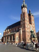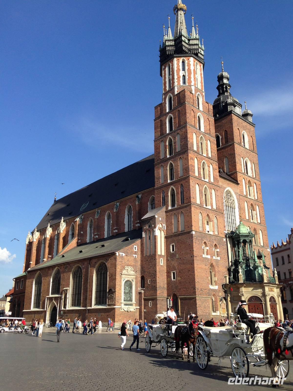 Die Marienkirche gehört zu den Wahrzeichen Krakaus. Ihre zwei Türme sind unterschiedlich hoch, einundachtzig und neunundsechzig Meter. Warum ist das so? Der Sage nach bauten zwei miteinander konkurrierende Brüder die Türme, jeder wollte den Höheren bauen. Die Geschichte endete tragisch im Brudermord, der ältere Bruder hatte seinen Turm bereits fertig, während der Jüngere seinen größer und schöner baute. Voller Eifersucht erstach der Ältere den Bruder. Das Messer soll heute noch in den Tuchhallen zu sehen sein.
