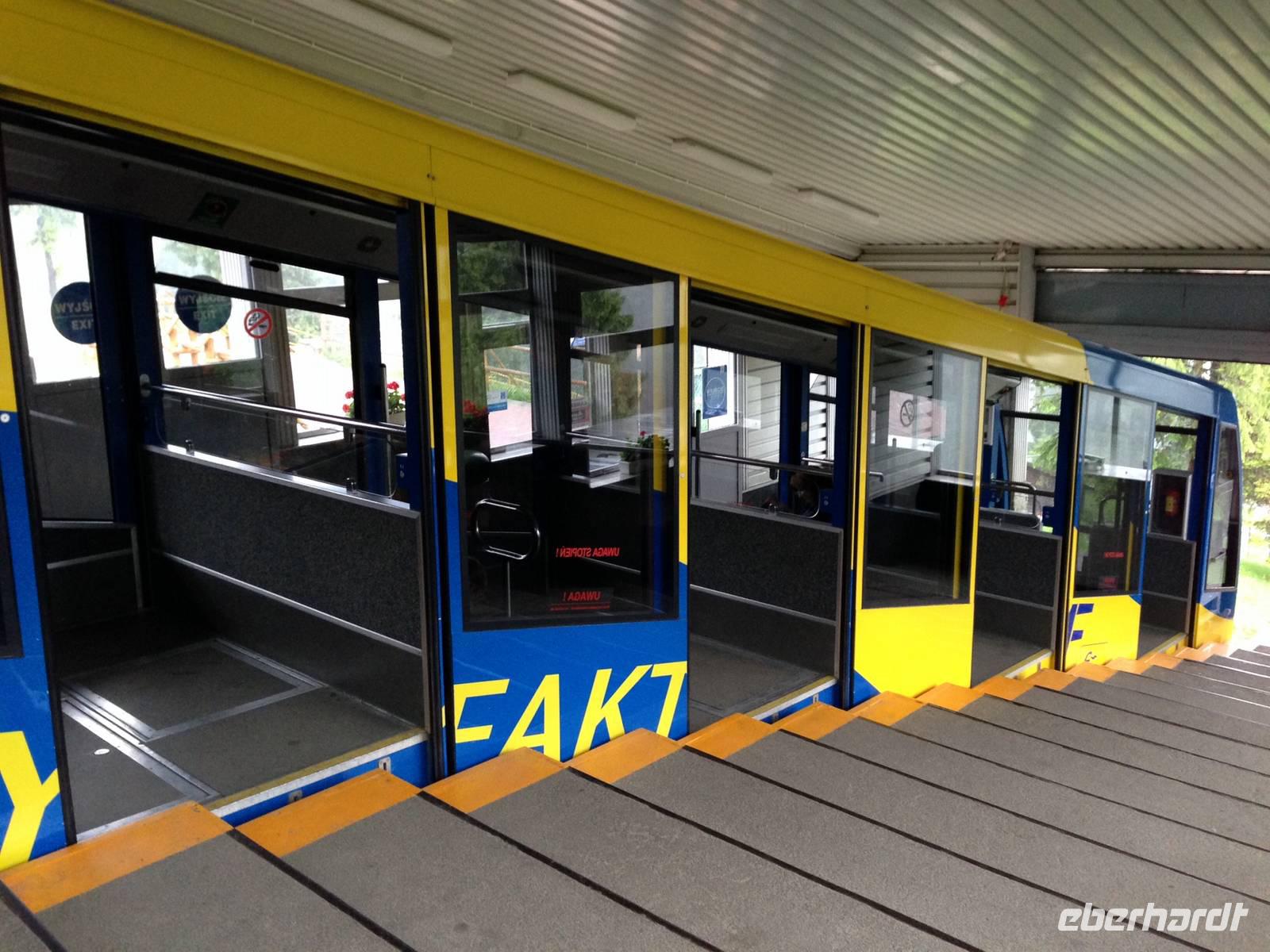 Nun ist es nicht mehr weit bis Zakopane. Bei unserer Rundfahrt landen wir an einer Kreuzung auf einer nicht gekennzeichneten Baustelle. Unser Bus hat keine Chance, die Stelle zu passieren. Mit viel Geduld fädeln wir uns rückwärts wieder hinaus. Immer noch ist der Himmel wolkenverhangen und es regnet leicht.