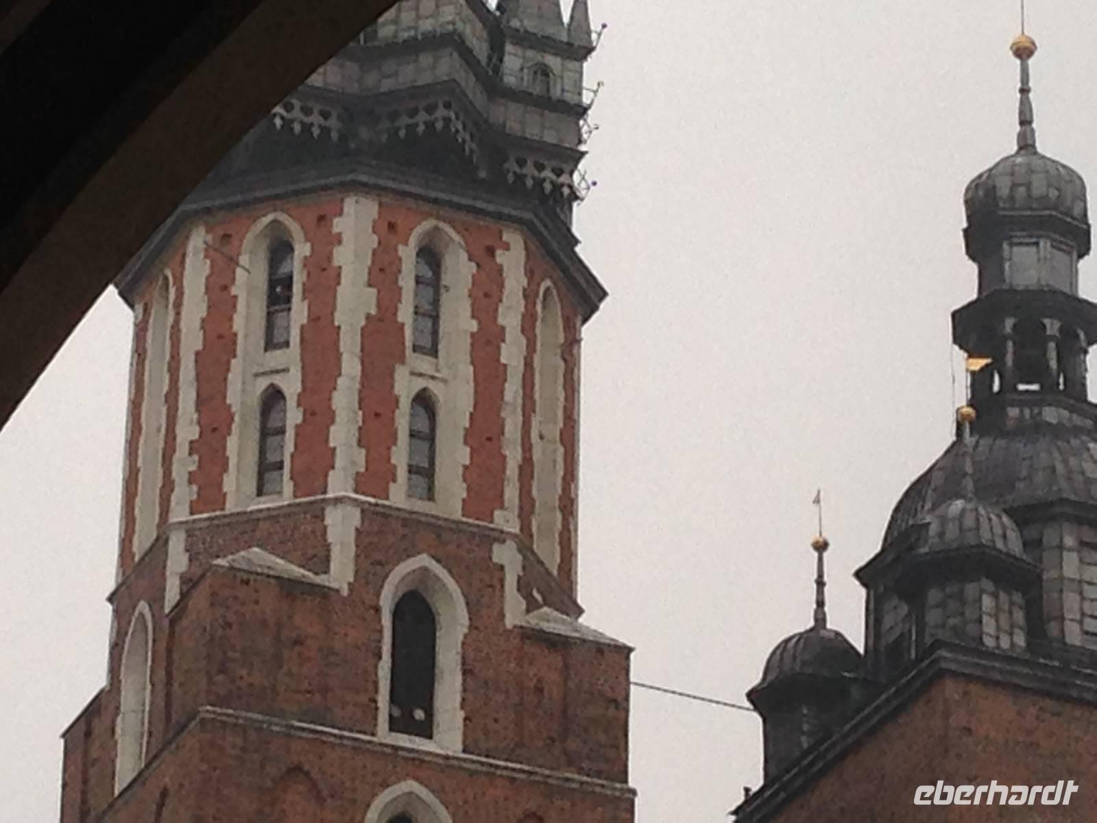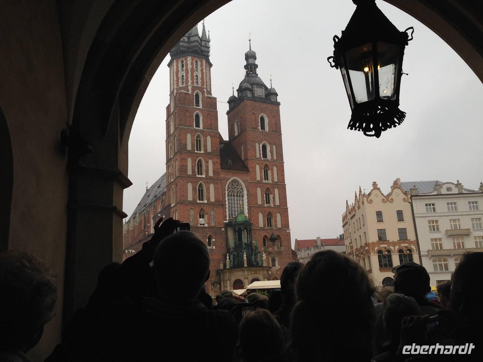 Kurz danach trafen wir uns dann mit unserer örtlichen Reiseleiterin Ela und begaben uns auf einen von ihr sehr interessant geführten Stadtrundgang. Trotz regnerischen Wetters lernten wir Krakau in all seinen Facetten und mit dem einmaligen Charme dieser Stadt kennen. Wir erfuhren sehr viel über die Geschichte der Stadt und des Handels, welcher ihr ihren Reichtum erbrachte. Wir lauschten Erzählungen über Könige und Geschichten über wichtige Gebäude, während wir traditionelle Musik genossen, die von in Trachten gekleideten Musikern auf Akkordeon und Trompete gespielt wurde.Wir sahen faszinierende Kirchen, eindrucksvolle Theater und beeindruckende Bürgerhäuser.