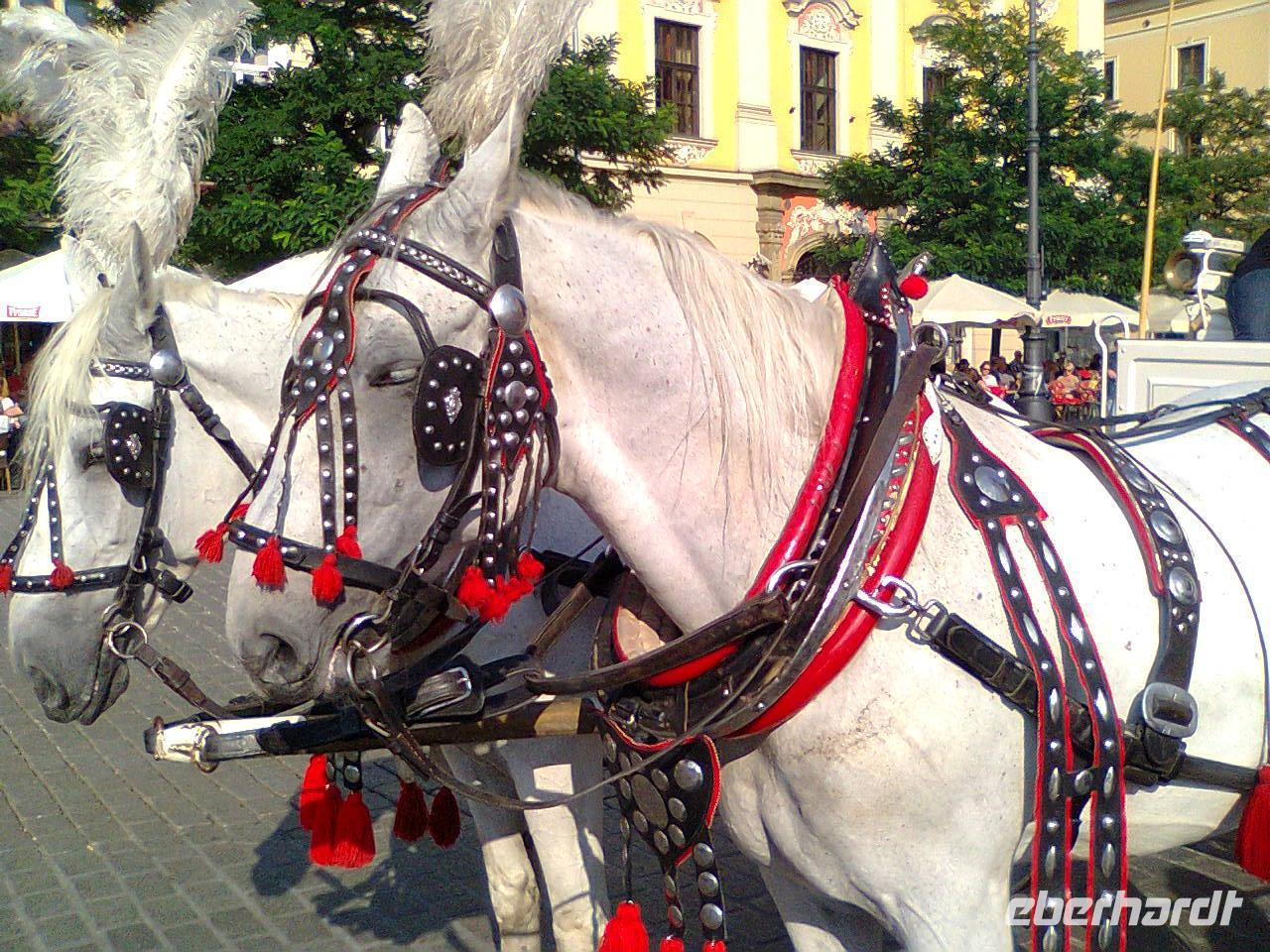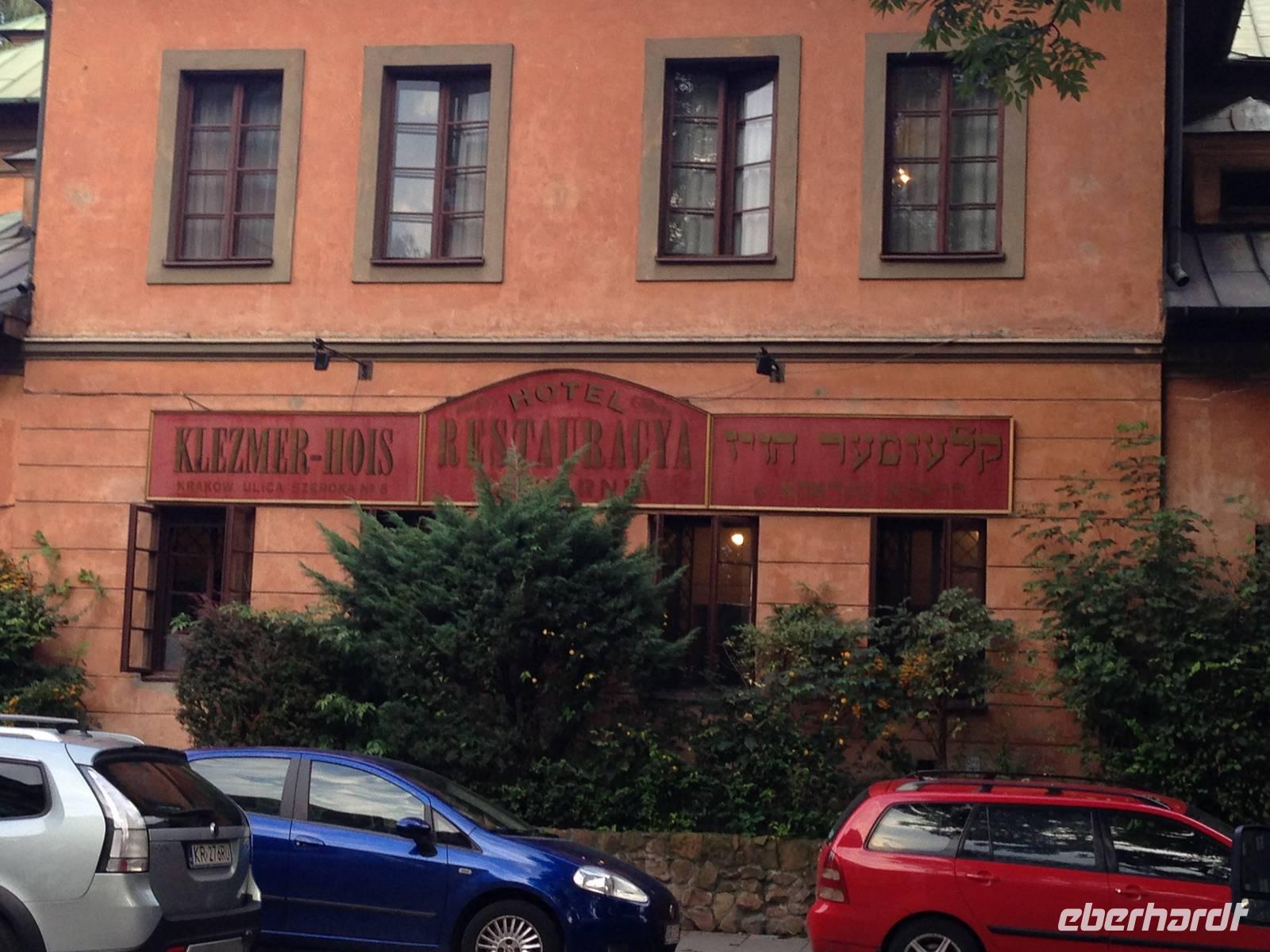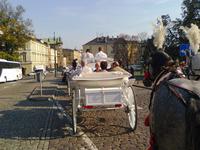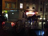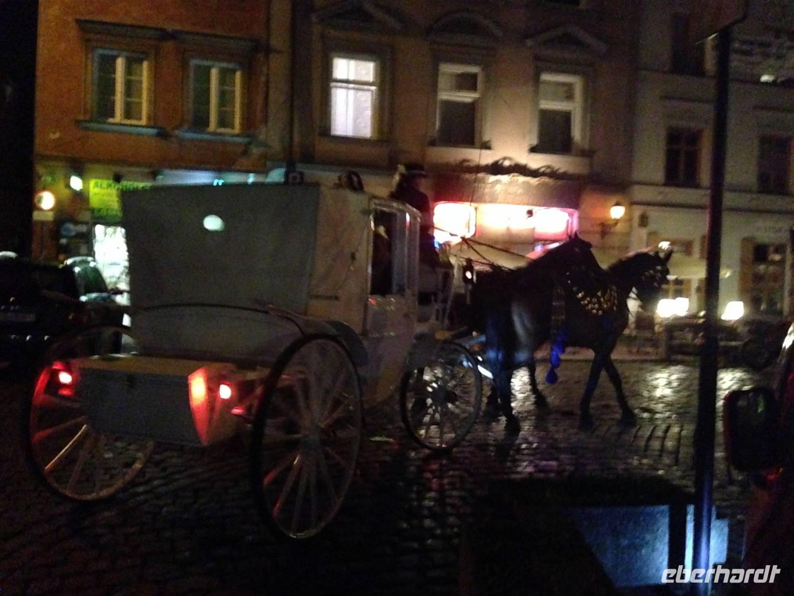 Nach einer kurzen Freizeit begaben wir uns auf eine romantische Kutschfahrt vom Markt bis ins jüdische Viertel im Krakauer Stadtteil Kazimierz. Leider konnten nicht alle an dieser teilnehmen, aber jene von uns, für die dies nicht möglich war, hatten abends die Gelegenheit, mit der Kutsche durch das nächtliche Krakau zurück zum Hotel zu fahren.Angekommen im jüdischen Viertel erhielten wir eine weitere sehr interessante Stadtführung von Ela, welche uns durch die engen Gassen leitete und uns den einmaligen Charme dieser Gegend vorführte. Wir sahen mehrere Synagogen, faszinierende Bürgerhäuser und auch den jüdischen Friedhof. Einen wundervollen Ausklang zu diesem Abend bot dann ein sehr leckeres und ausgiebiges 3-Gänge-Menü in dem jüdischen Restaurant Klezmer Hois. Neben der traditionellen Küche der polnischen Juden lernten wir auch jiddische Musik kennen, als ein auf höchstem Niveau musizierendes Trio mit Akkordeon, Geige und Kontrabass aufspielte.Ein eindrucksvoller Tag neigte sich dem Ende, als wir spät am Abend voller neuer Erinnerungen mit dem Bus (und einige mit der Pferdekutsche) zurück zum Hotel fuhren.