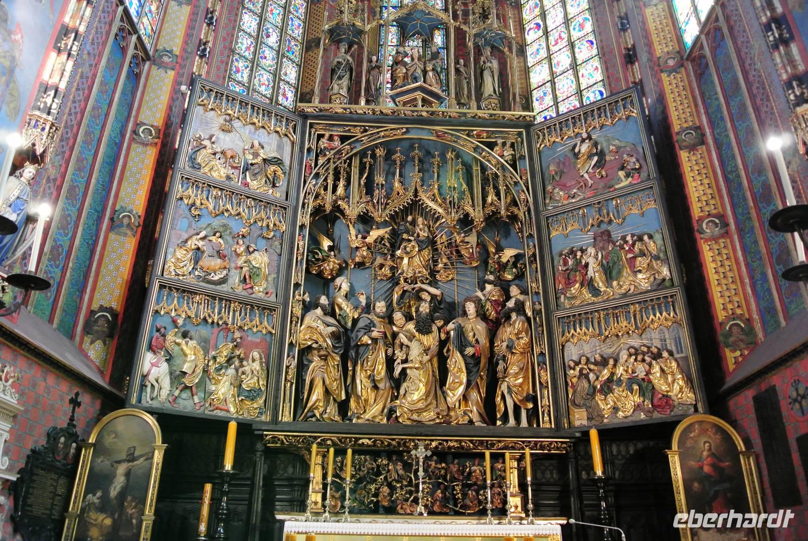Neben vielen bedeutenden Plätzen und Gebäuden vorbei konnten wir die Tuchhallen auf dem Rynek, die Franziskanerkirche, die Universität und die Marienkirche mit der Öffnung des herrlichen Altars von Veit Stoss erleben.