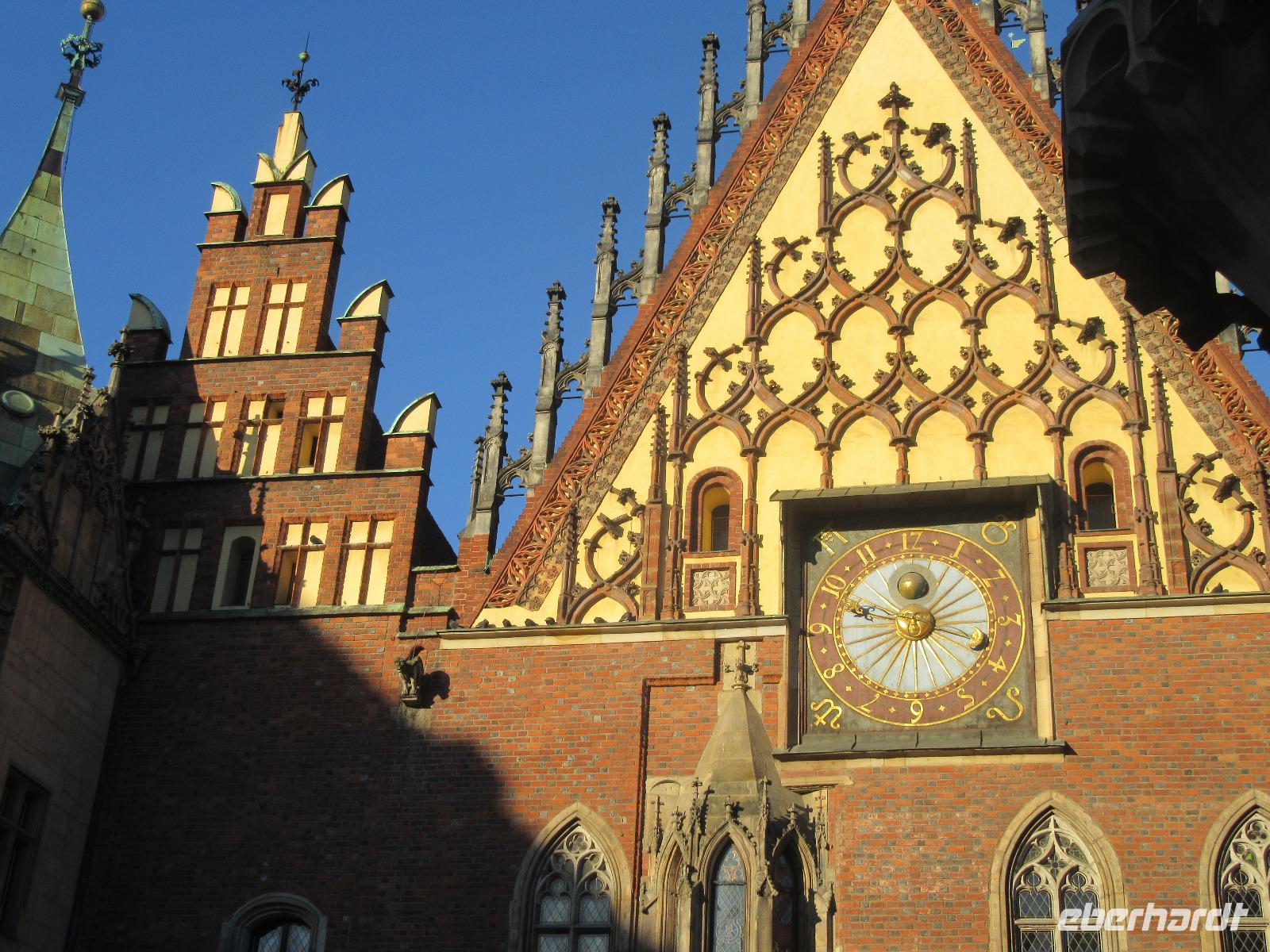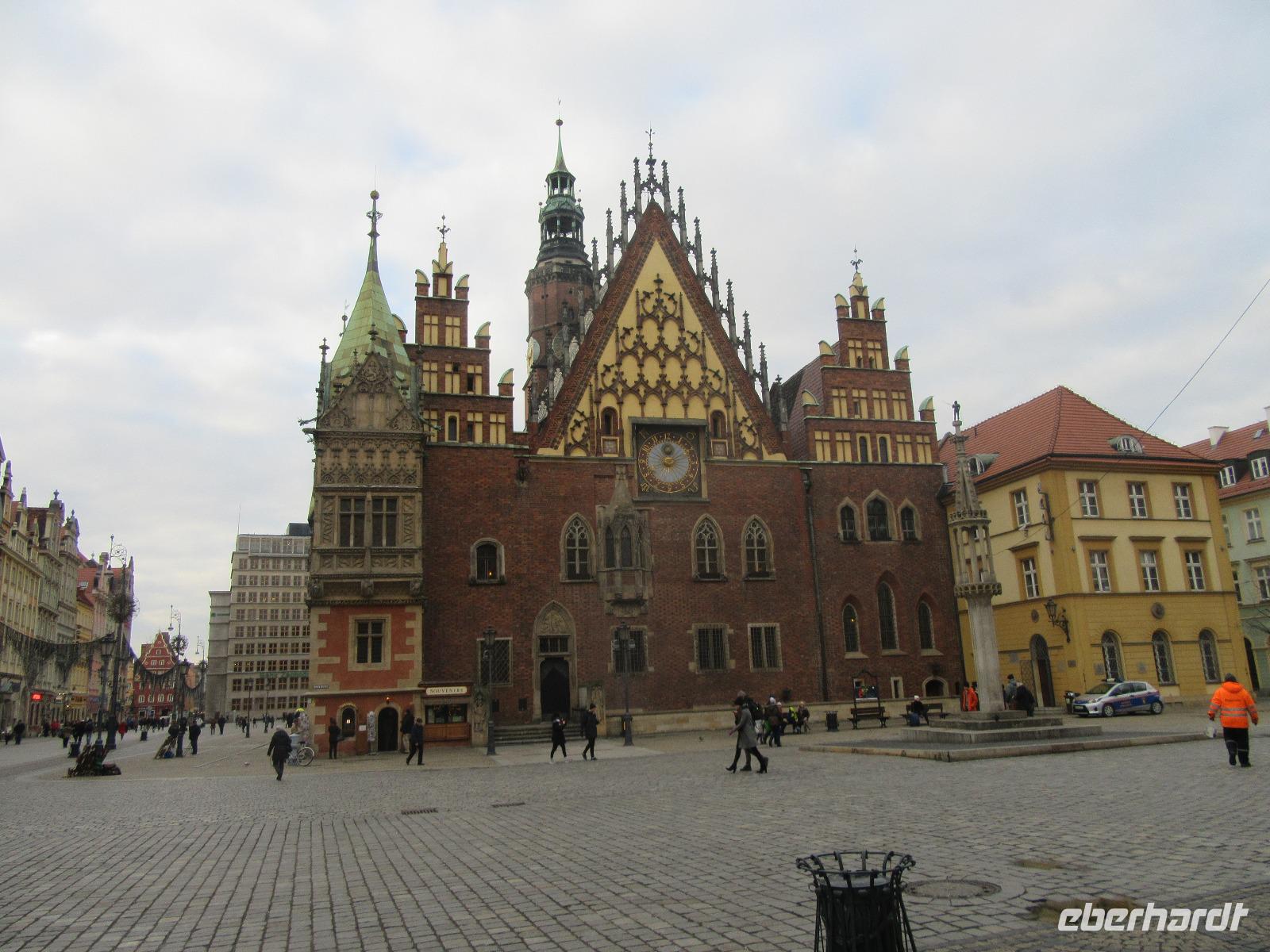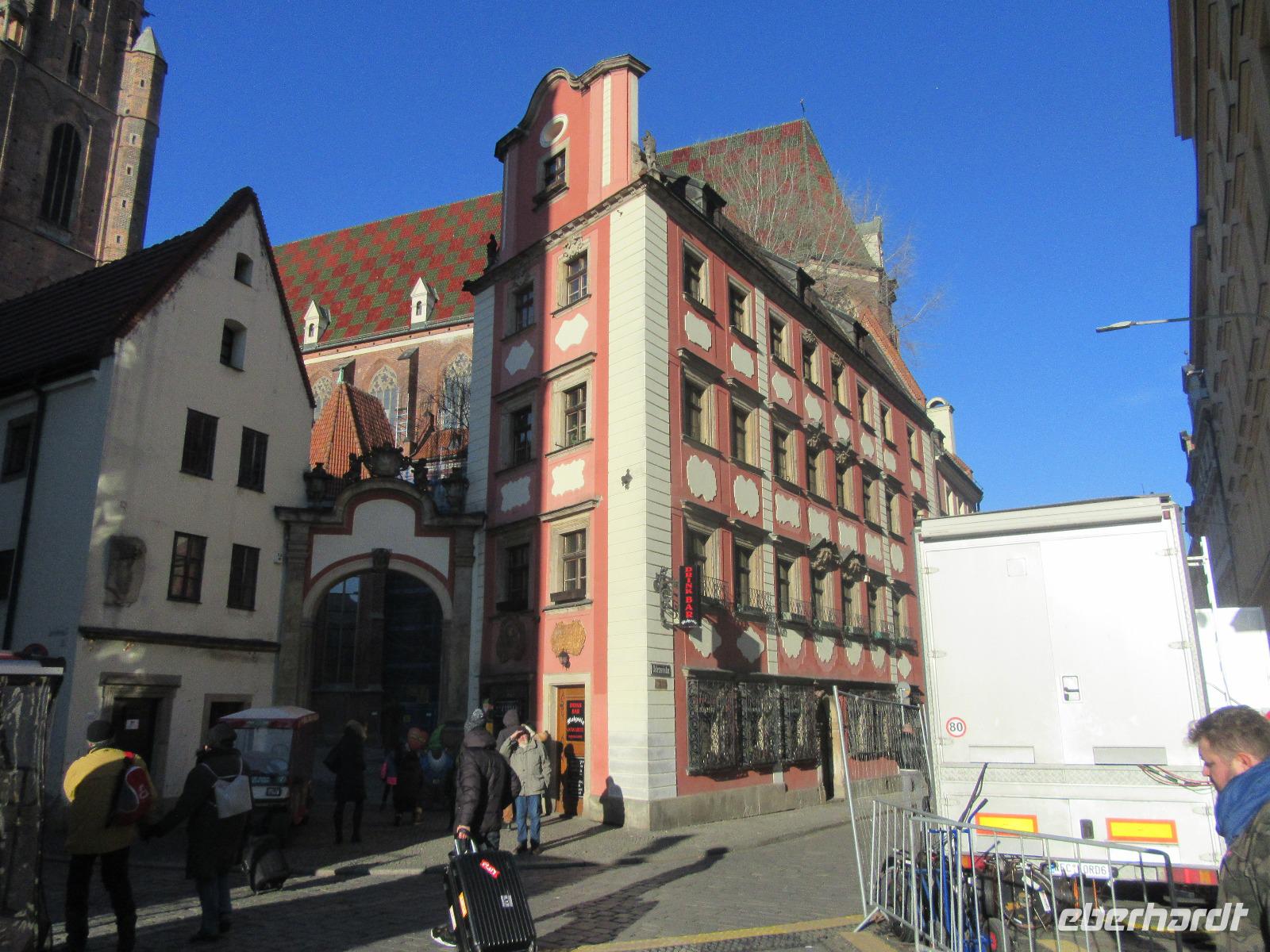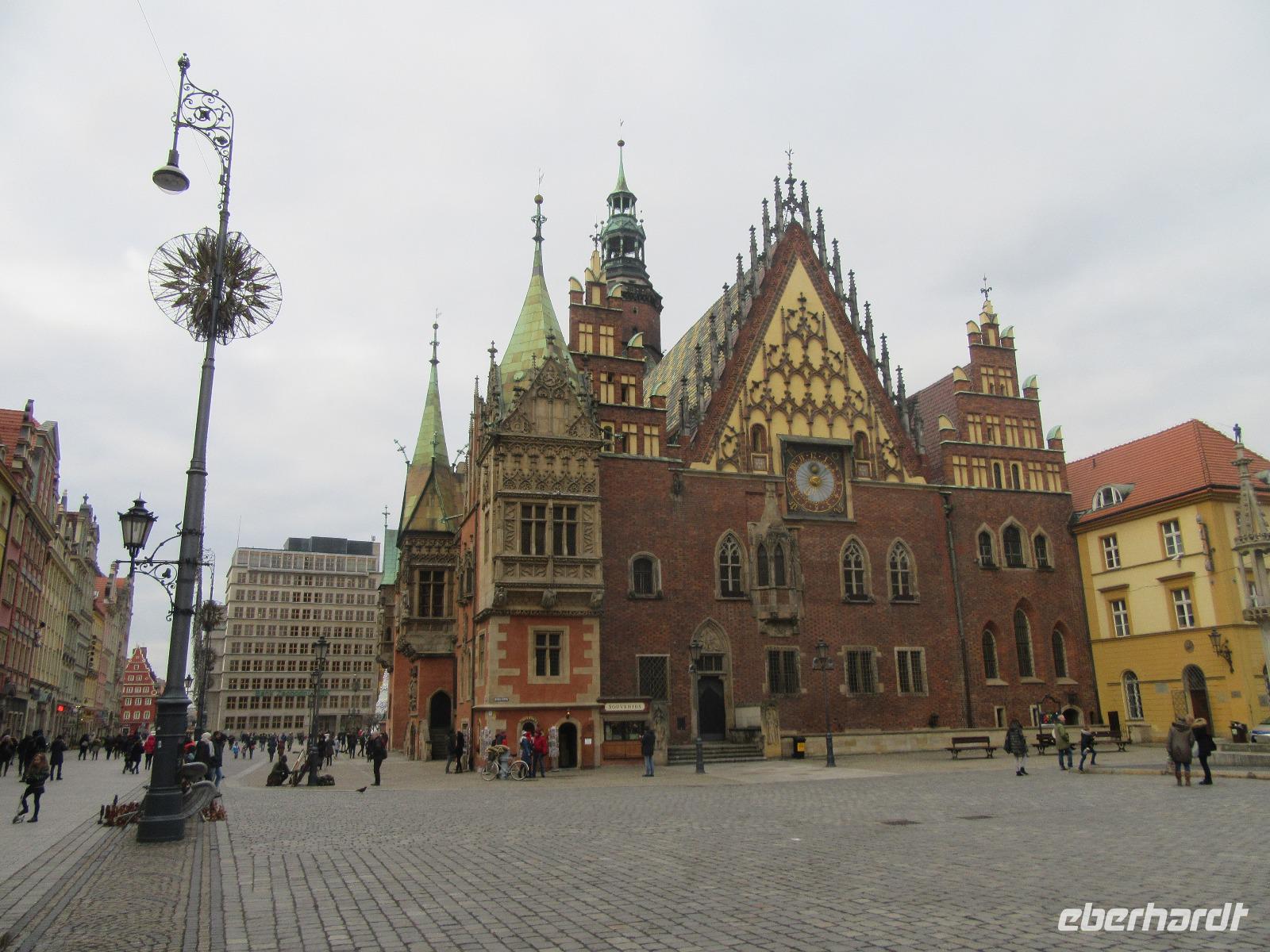 Langsam laufen wir wieder zurück Richtung Rathaus. Dort wo unser Stadtrundgang heute Morgen begonnen hat, endet er auch wieder. Mit einem typisch polnischen Mittagessen direkt am Rynek endet unser Stadtrundgang. Gesättigt und wieder aufgewärmt, von der Kälte während des Stadtrundgangs, können wir den Tag jetzt entspannt ausklingen lassen, bis einige heute Abend noch einmal ein klassisches Konzert im Breslauer Musikforum besuchen, oder optional, ein üppiges Abendessen mit polnischen Spezialitäten in einem urigen Restaurant am Rynek genießen können.