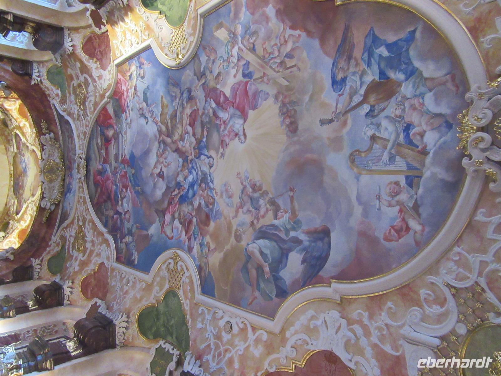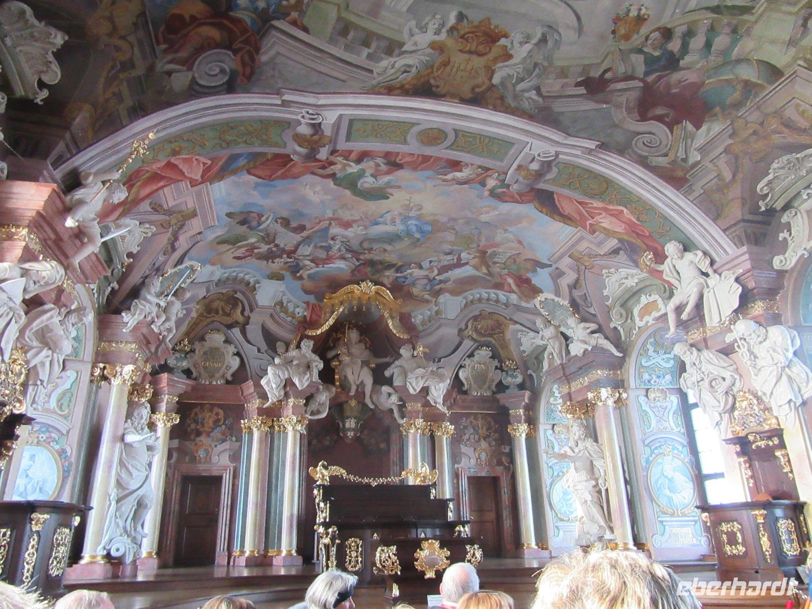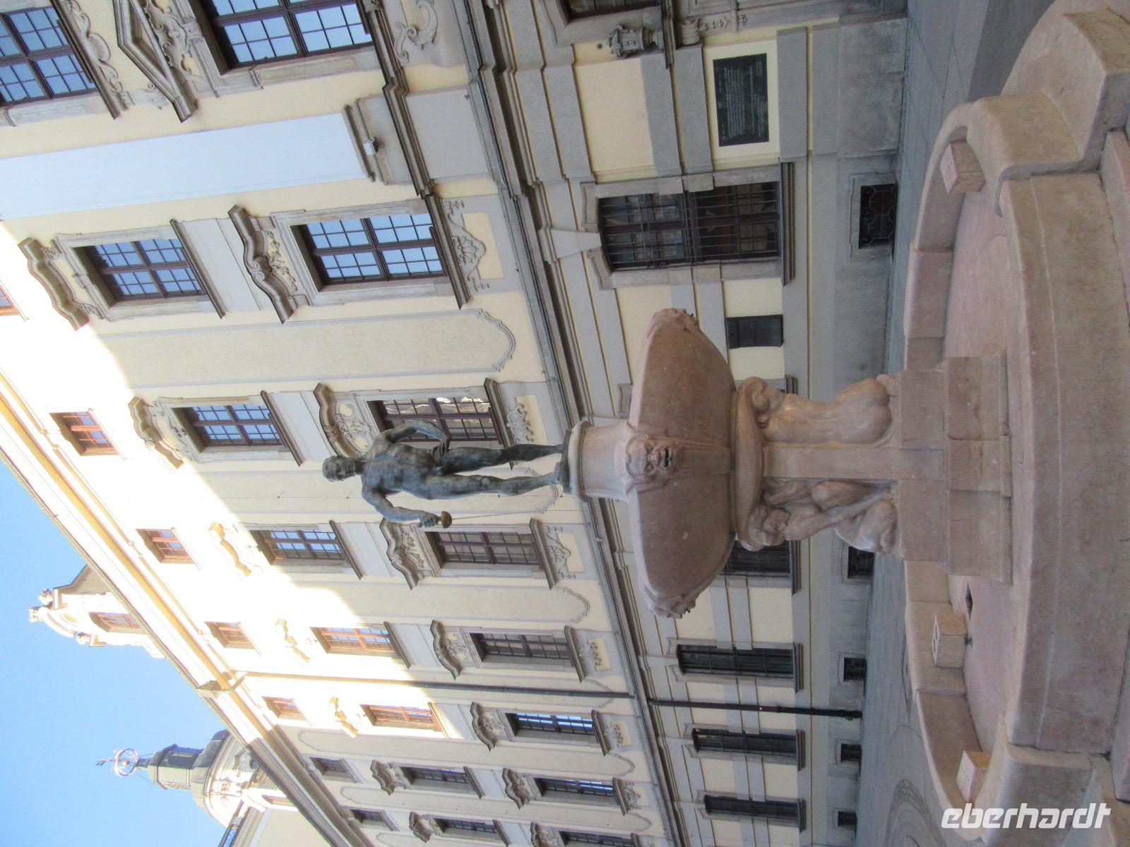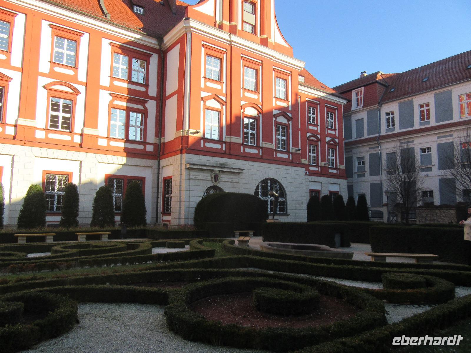 Für die Überraschung begeben wir uns zum Breslauer Oratorium. Hier werden wir eine Aufführung der 14-jährigen Julia Leniart hören, sie ist Preisträgerin mehrerer internationaler Klavierwettbewerbe. Nach der Aufführung zeigt Aldona uns das Oratorium. Wir setzen unseren Stadtrundgang fort und kommen zum Ossolineum, heute eine Bibliothek mit Druckwerken, Handschriften und Druckgrafiken zu polnischen Themen, früher ein Gymnasium für Jungen.
