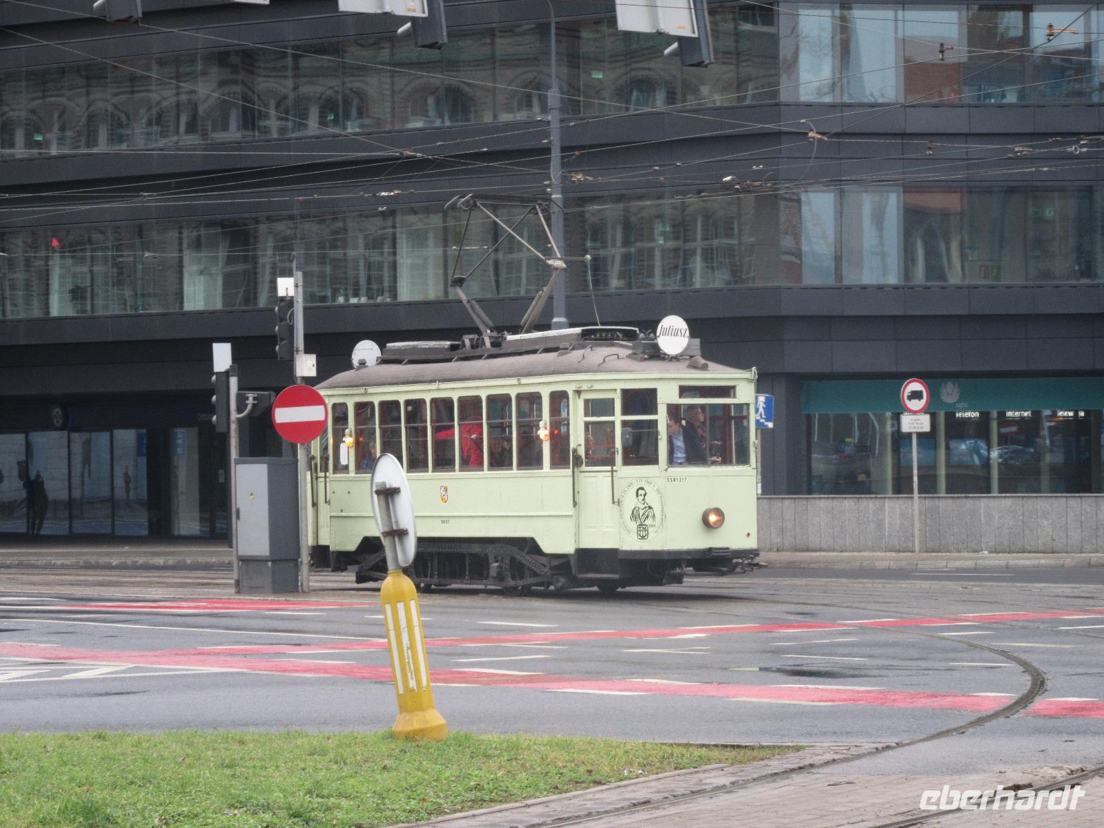 Bevor wir heute Abend gemeinsam ins neue Jahr feiern, haben wir die Möglichkeit am Morgen noch eine kleine Stadtführung mit Aldona und Straßenbahn zu machen. Wir fahren zur Jahrhunderthalle und erfahren u.a., dass sie die größte freischwebende Kuppel der Welt besitzt. Die Wasserspiele können wir leider nicht sehen, da der Brunnen im Winter außer Betrieb ist. Von dort aus fahren wir zum Plac Dominikancki und laufen, am Breslauer Schwimmbad (ein sehr altes historisches Gebäude, das keine Schwimmhalle vermuten lässt) vorbei, zurück zu unserem Hotel. Die kleine Stadtführung wird abgerundet durch einen Besuch im Cafe Bohemia, ein sehr malerisches Café im Jugendstil, dass nicht nur köstliche Kaffeespezialitäten bereit hält sondern auch sehr leckere, reichhaltige Torten ??