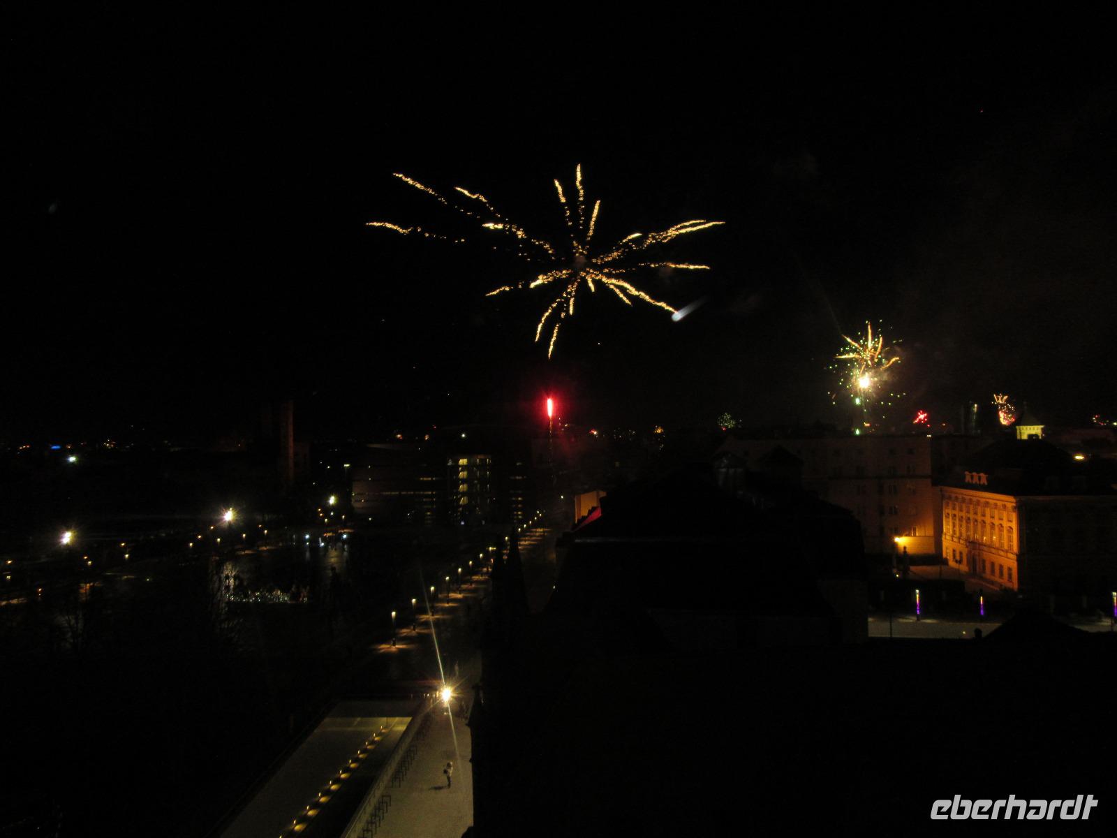 Gegen Mitternacht begaben wir uns auf die Dachterrasse. Dort wurde und ein Glas Sekt zum Jahreswechsel serviert und wir konnten den wunderschönen Blick über die europäische Kulturhauptstadt von 2016 und ihr farbenfrohes Feuerwerk genießen.