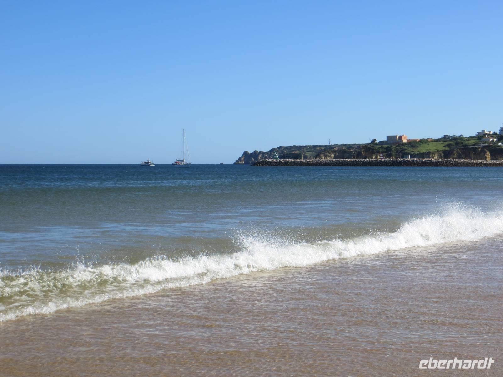 Am Mittag trafen wir uns wieder am Bus und fuhren zurück nach Lagos zu unserem Hotel. Hier verabschiedeten wir uns schon offiziell von der örtlichen Reiseleiterin Fátima und dem Fahrer George, mit denen wir eine tolle Woche verbracht und viel gesehen hatten. Der Nachmittag stand uns nun zur freien Verfügung. Die meisten nutzen das wunderschöne Wetter nochmal, um an den Strand zu gehen, wo uns heute kräfige Wellen erwarteten. Am Abend trafen wir uns ein letztes Mal im Hotelrestaurant, um gemeinsam zu essen, bevor viele den Abend noch bei einem kleinen Spaziergang durch die belebten Gassen ausklingen ließen.
