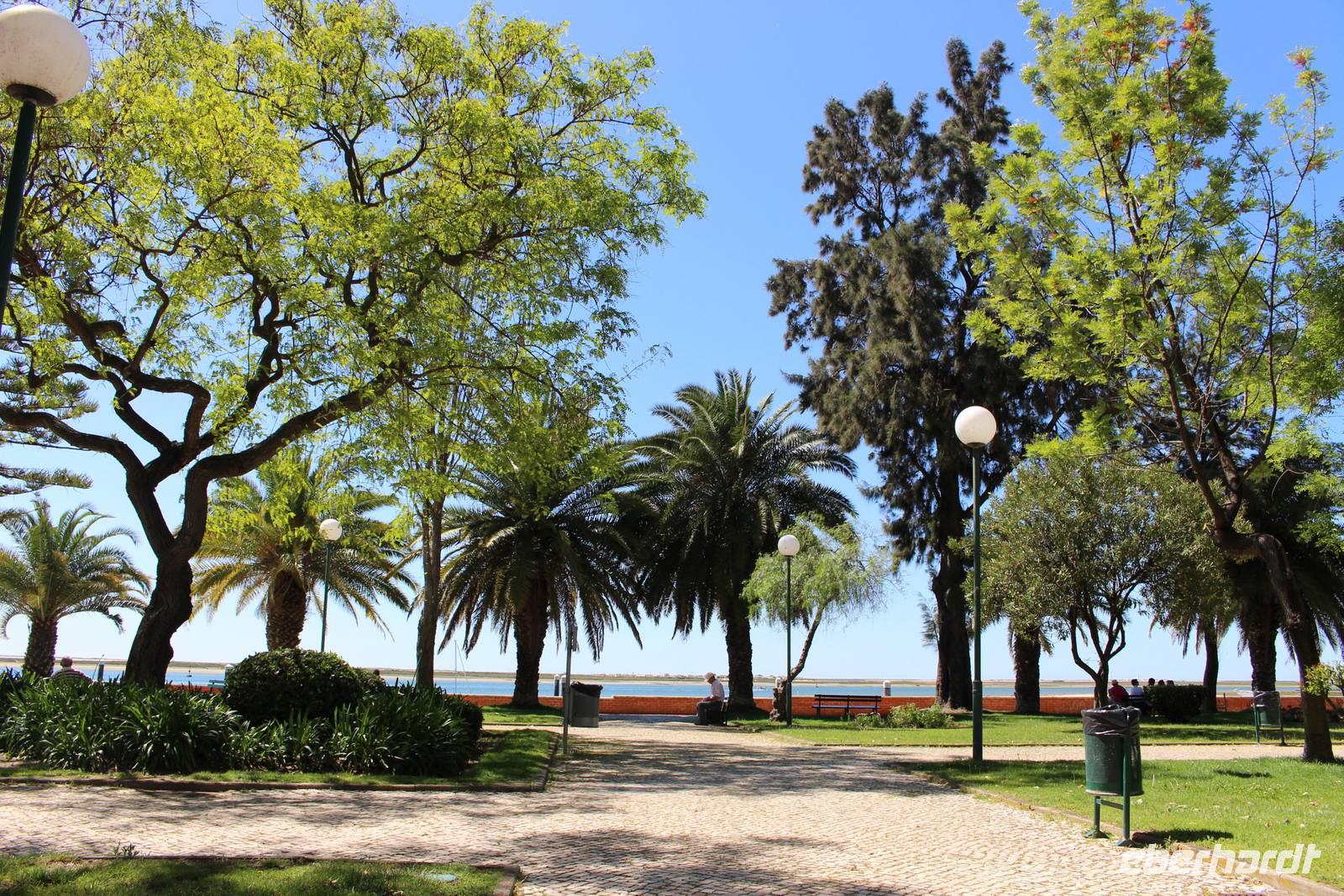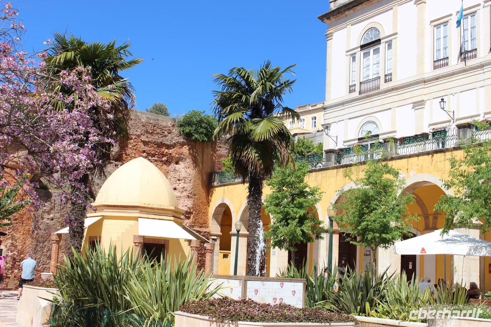 Anschließend fuhren wir weiter nach Tavira, was im Reiseführer oft als „Venedig der Algarve" bezeichnet wird. Hier besuchten wir die Burg, von welcher man einen guten Ausblick auf die Stadt hatte. Allerdings hielten wir uns hier, trotz des wunderschön blühenden Gartens, nicht lange auf, da mittlerweile wieder über 30°C waren. Gemeinsam gingen wir wieder herunter in die Stadt, wo wir unsere Mittagspause verbrachten und das sommerliche Wetter bei einem Eis oder einem Kaffee genießen konnten.