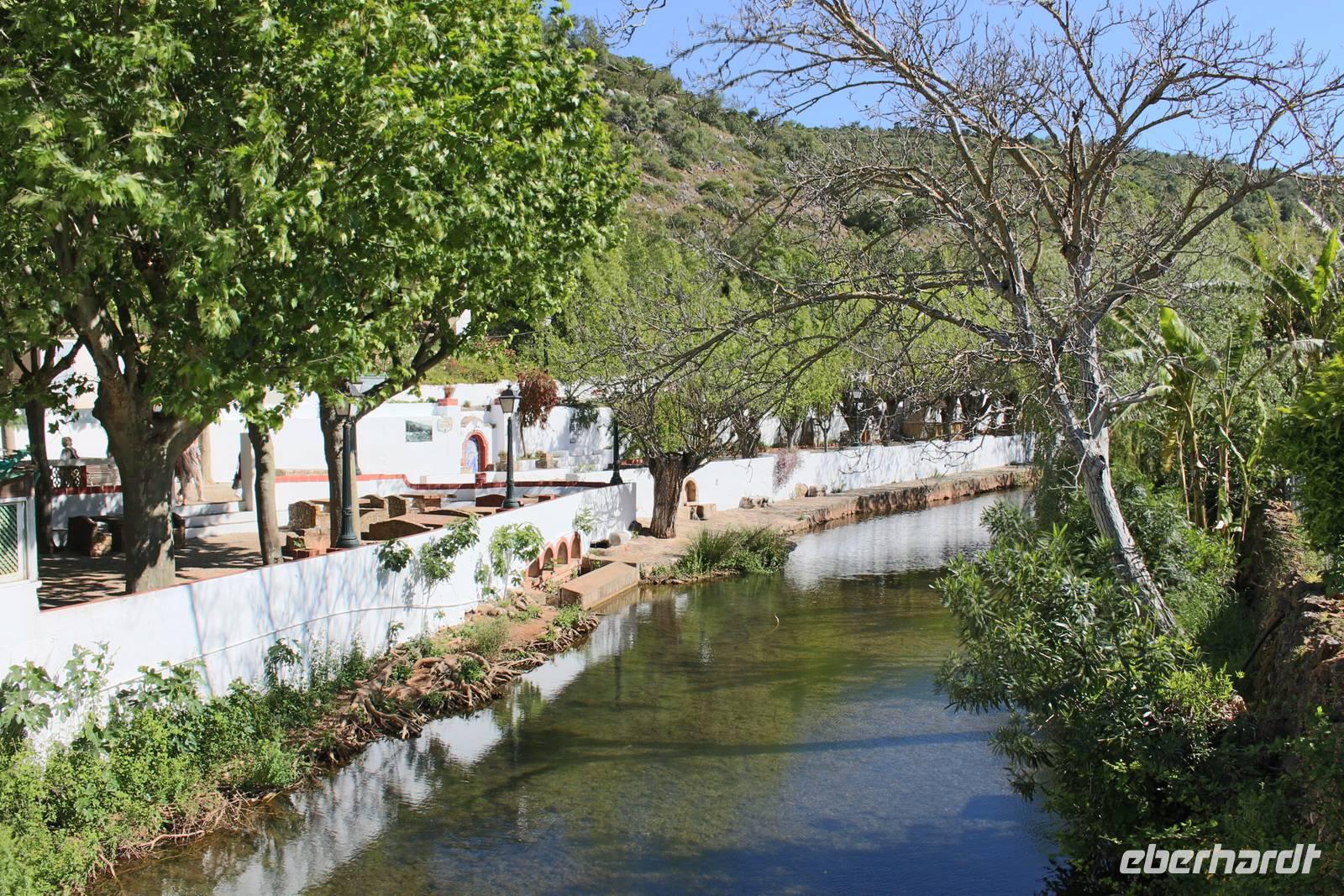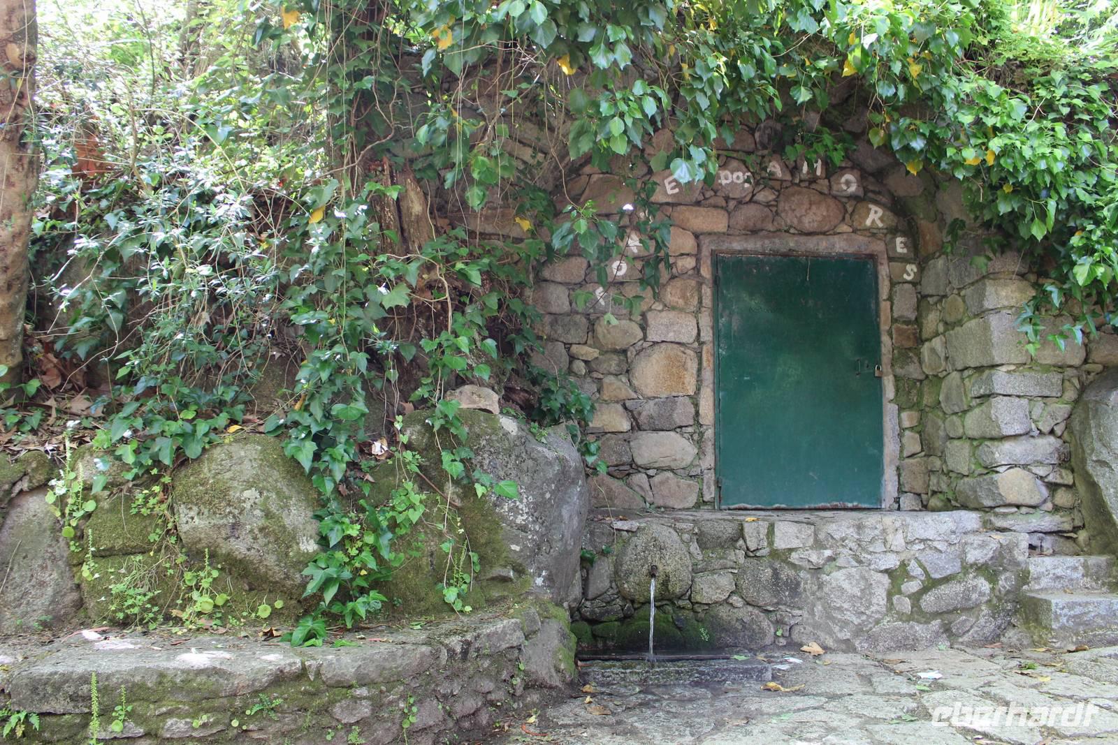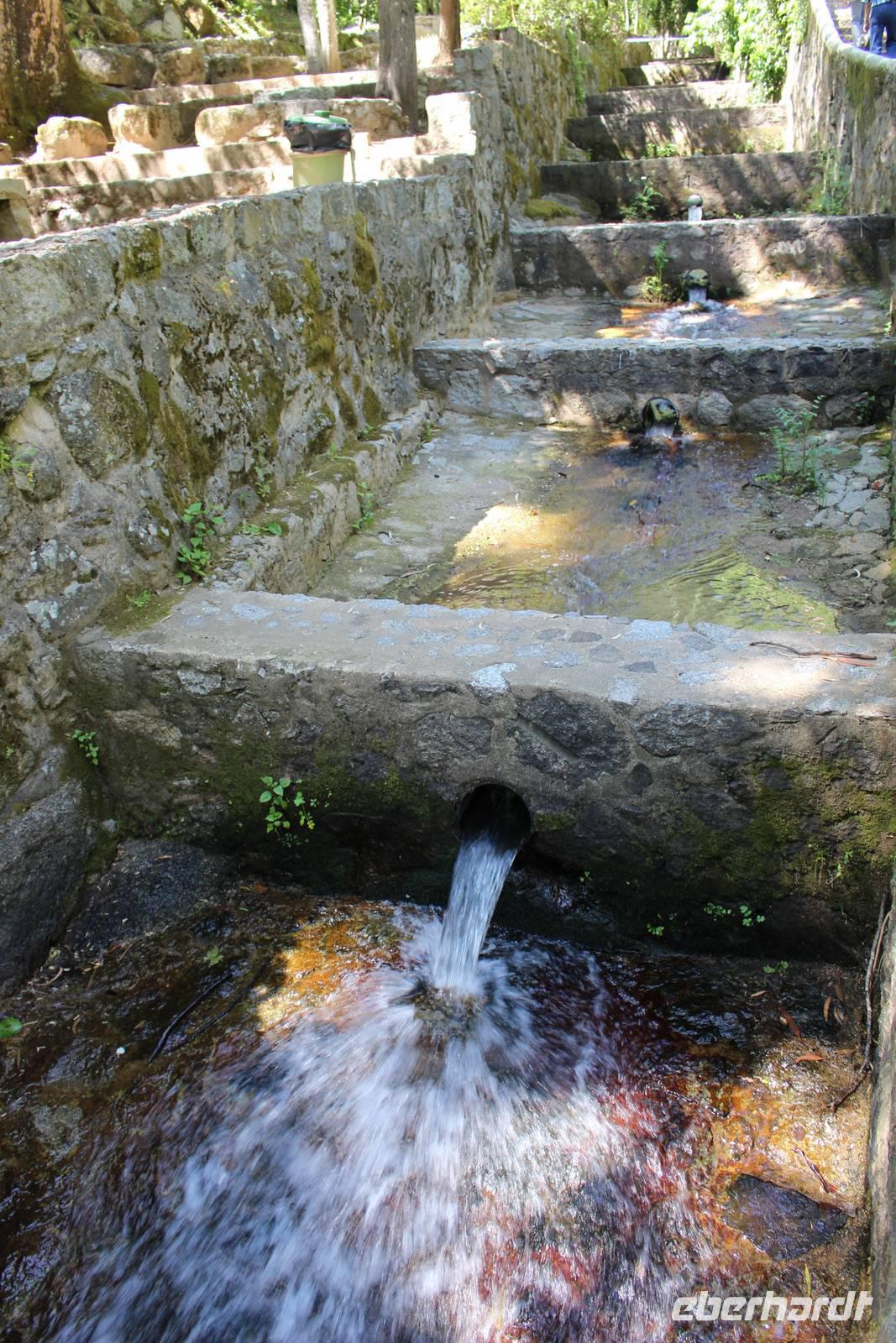 Nun ging es zum Parque da Mina, wo wir zunächst ein Heimatmuseum besuchten. Hier entdeckten wir unter anderem eine alte Schnapsbrennerei, in welcher der bekannte Medronho-Schnaps früher gebrannt wurde. Anschließend spazierten wir bei schönstem Wetter durch die wunderschöne Gartenanlage, wo es alte Gerätschaften sowie Tiere und die bekannte Zistrose zu sehen gab. Nach einer kurzen Busfahrt kamen wir auch schon im Kurort bei Monchique an. Hier gingen wir zu der sogenannten „Liebesquelle". Der Sage nach verliebt man sich, wenn man von diesem Wasser trinkt. Natürlich probierten auch wir das frische Quellwasser, aber von der Wirkung sollte sich jeder selbst überzeugen.