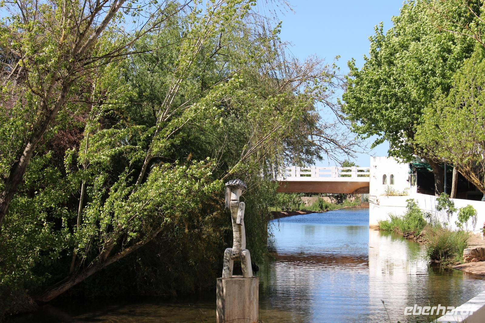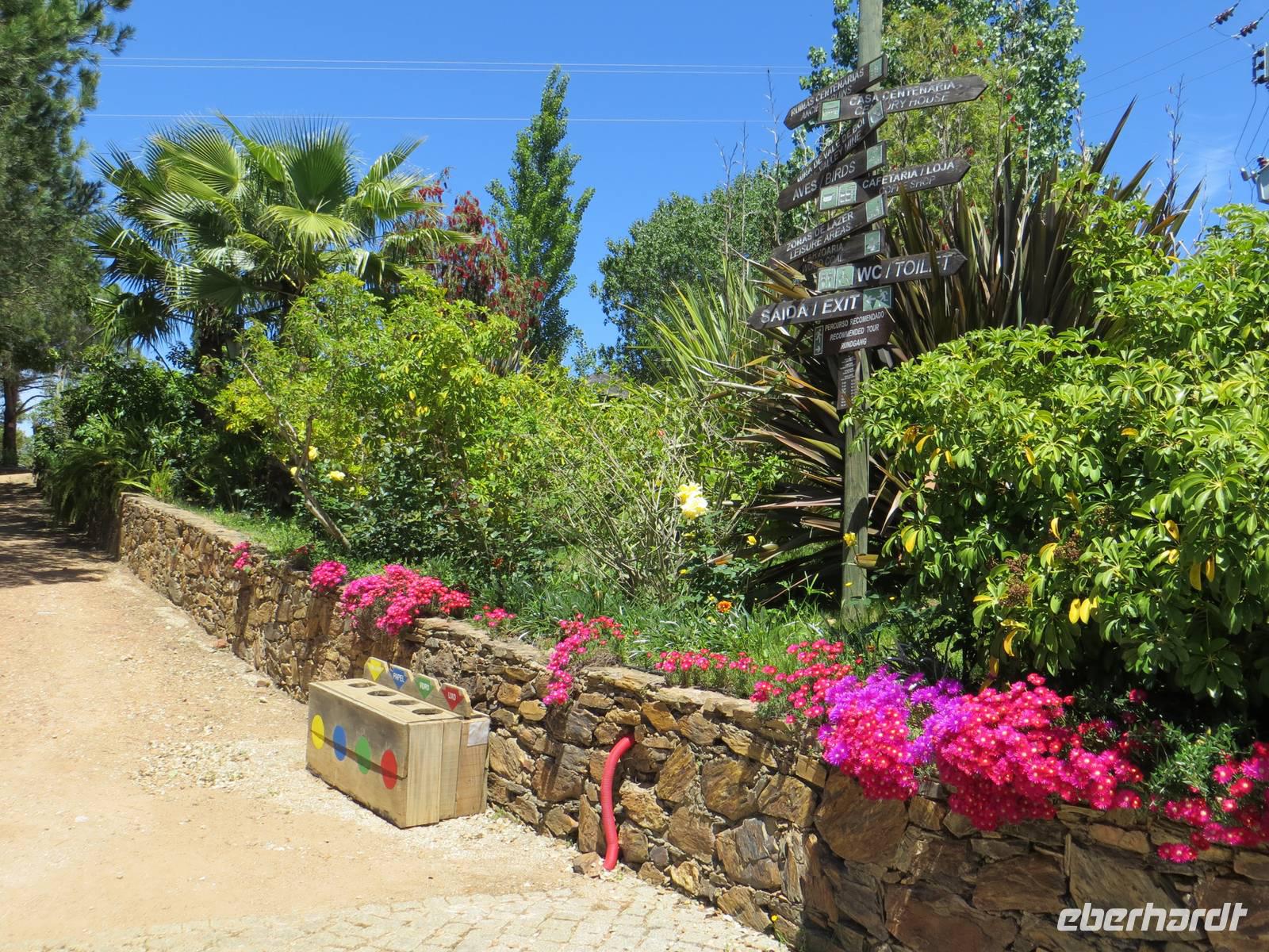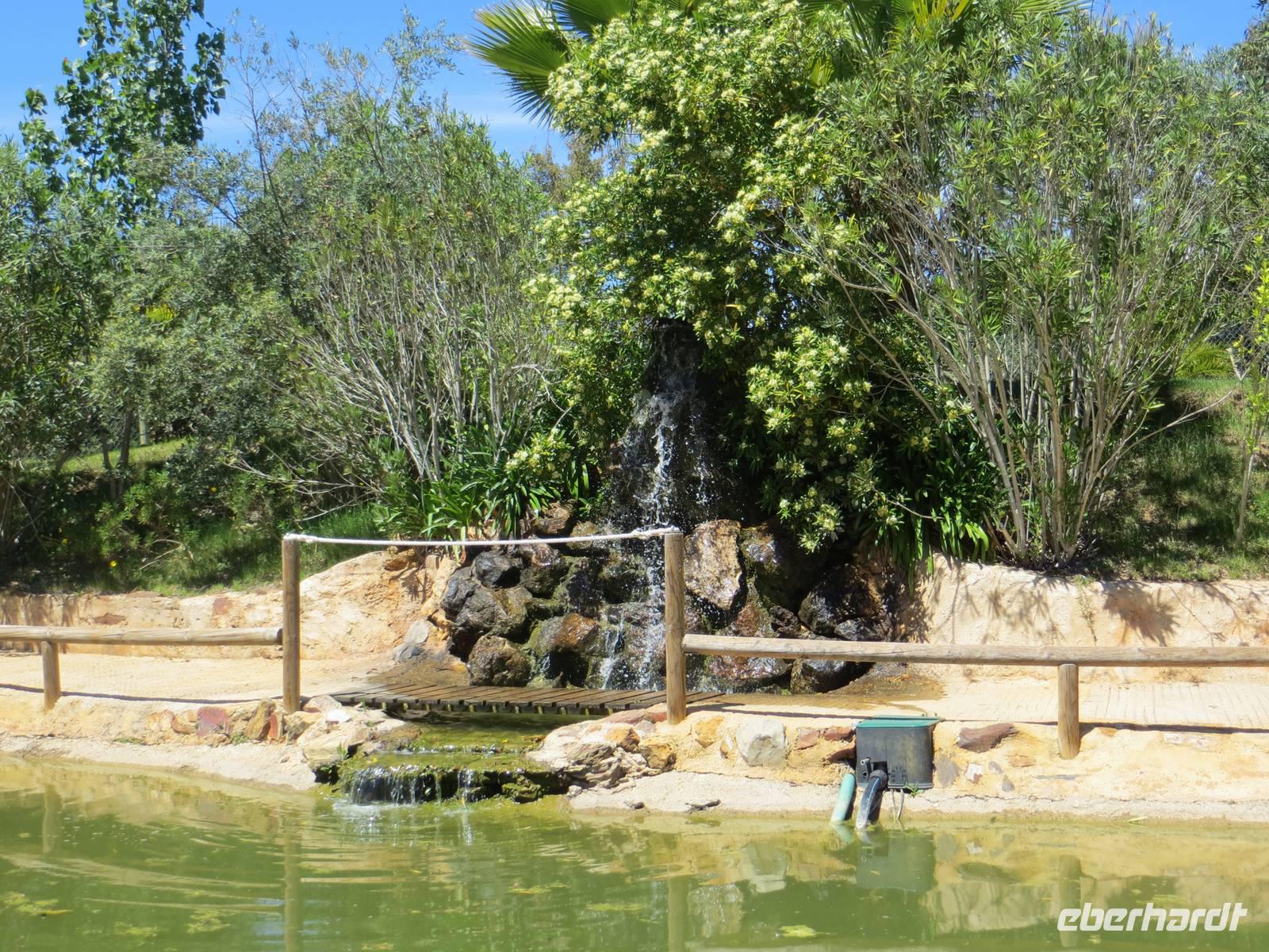 Nun ging es zum Parque da Mina, wo wir zunächst ein Heimatmuseum besuchten. Hier entdeckten wir unter anderem eine alte Schnapsbrennerei, in welcher der bekannte Medronho-Schnaps früher gebrannt wurde. Anschließend spazierten wir bei schönstem Wetter durch die wunderschöne Gartenanlage, wo es alte Gerätschaften sowie Tiere und die bekannte Zistrose zu sehen gab. Nach einer kurzen Busfahrt kamen wir auch schon im Kurort bei Monchique an. Hier gingen wir zu der sogenannten „Liebesquelle". Der Sage nach verliebt man sich, wenn man von diesem Wasser trinkt. Natürlich probierten auch wir das frische Quellwasser, aber von der Wirkung sollte sich jeder selbst überzeugen.