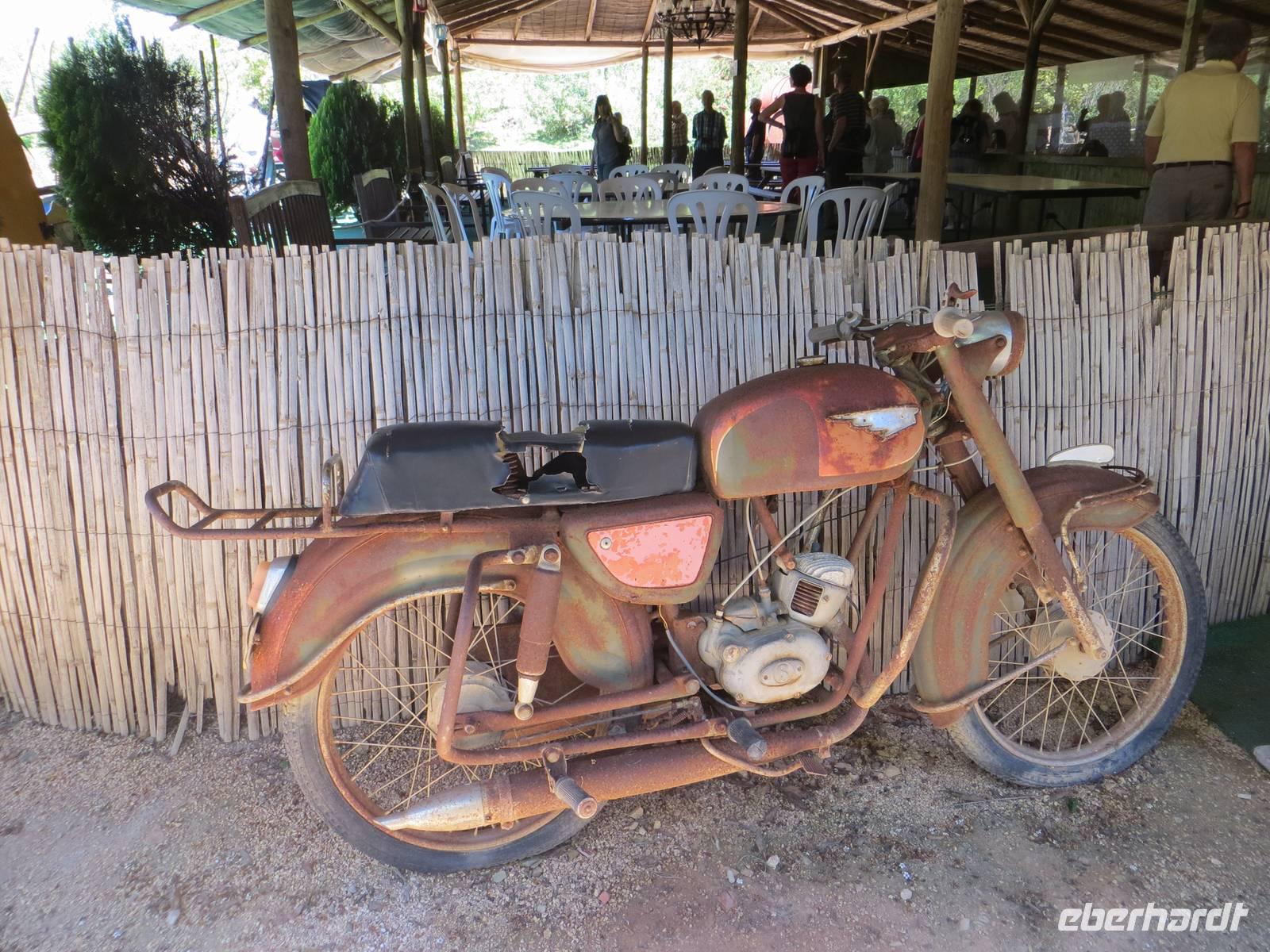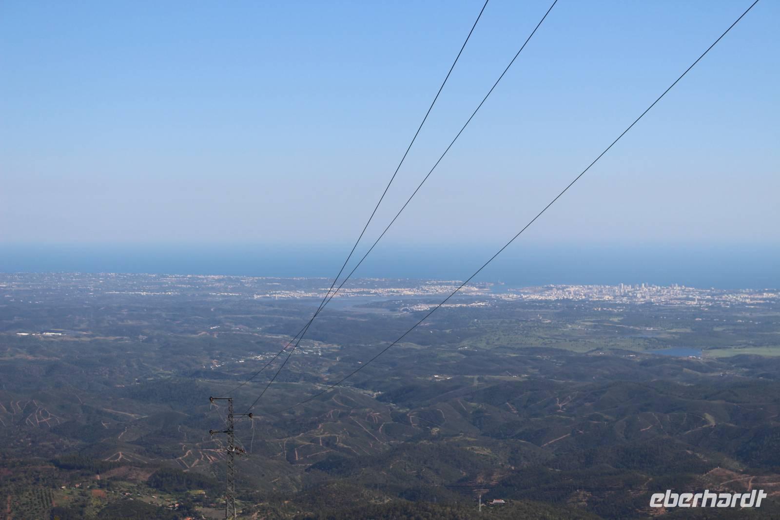 Mit dem Bus fuhren wir nun nach Monchique, wo wieder die Möglichkeit bestand, das tolle Wetter in einem Café zu genießen und man durch kleine Läden bummeln konnte. Im Anschluss ging es nun zum Aussichtspunkt "Feuer", dem höchsten Punkt der Provinz in ca. 900 m Höhe, von wo aus wir bis zum Meer schauen konnten. Leider war es durch die Wärme recht diesig, sodass die Fotos nicht so gelingen konnten, wie wir uns das gewünscht hätten. Auch wehte hier oben ein recht kühler Wind, sodass sich alle recht schnell wieder im Bus eingefunden hatten. Auf einer Straße mit vielen engen Kurven stellte unser Busfahrer George sein ganzes Können unter Beweis und brachte uns sicher zum Ziel. Das Ziel war ein Restaurant im Monchique-Gebirge, das „Jardim das Oliveiras", wo wir heute unser Abendessen genießen wollten. Hier erwartete uns der Wirt schon mit leckeren Spezialitäten der Algarve, z.B. mit Fleisch vom schwarzen Schwein und einer speziellen Piri-Piri-Soße. Nach dem Essen wurde uns noch ein landestypischer Schnaps, der Medrohno, serviert, der aus den Früchten des Erdbeerbaumes hergestellt wird. Gut gelaunt fuhren wir später zurück zum Hotel, wo wir uns von dem langen, aber wunderschönen ersten Ausflug erholen konnten.