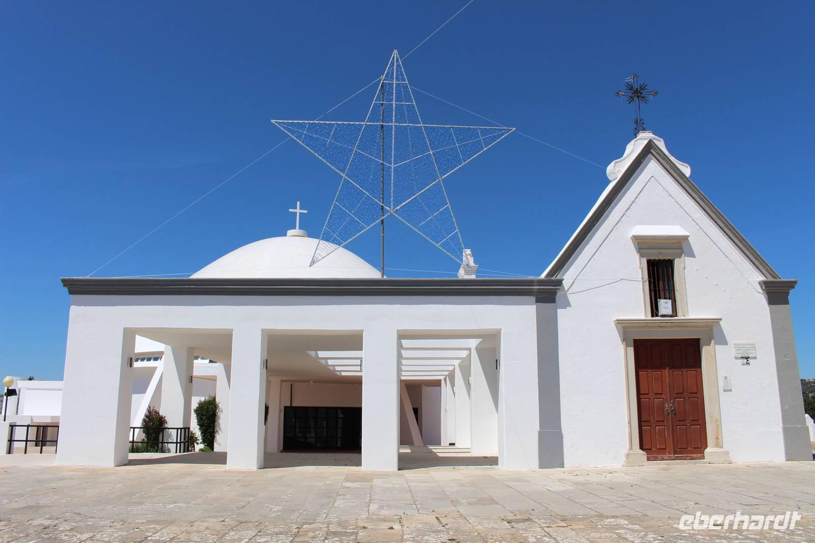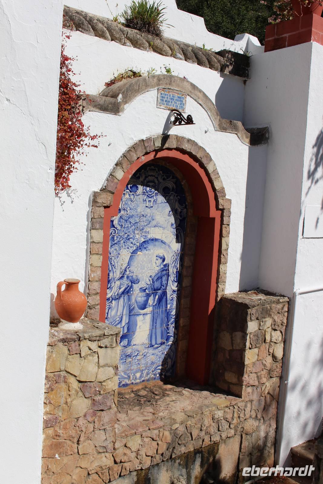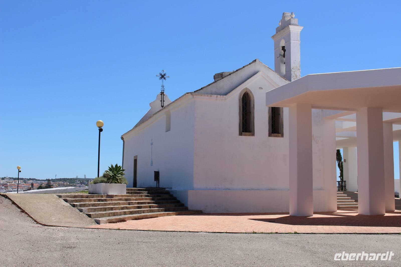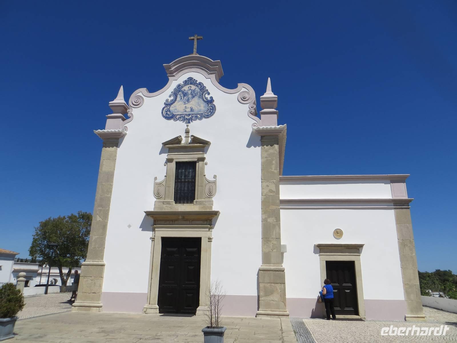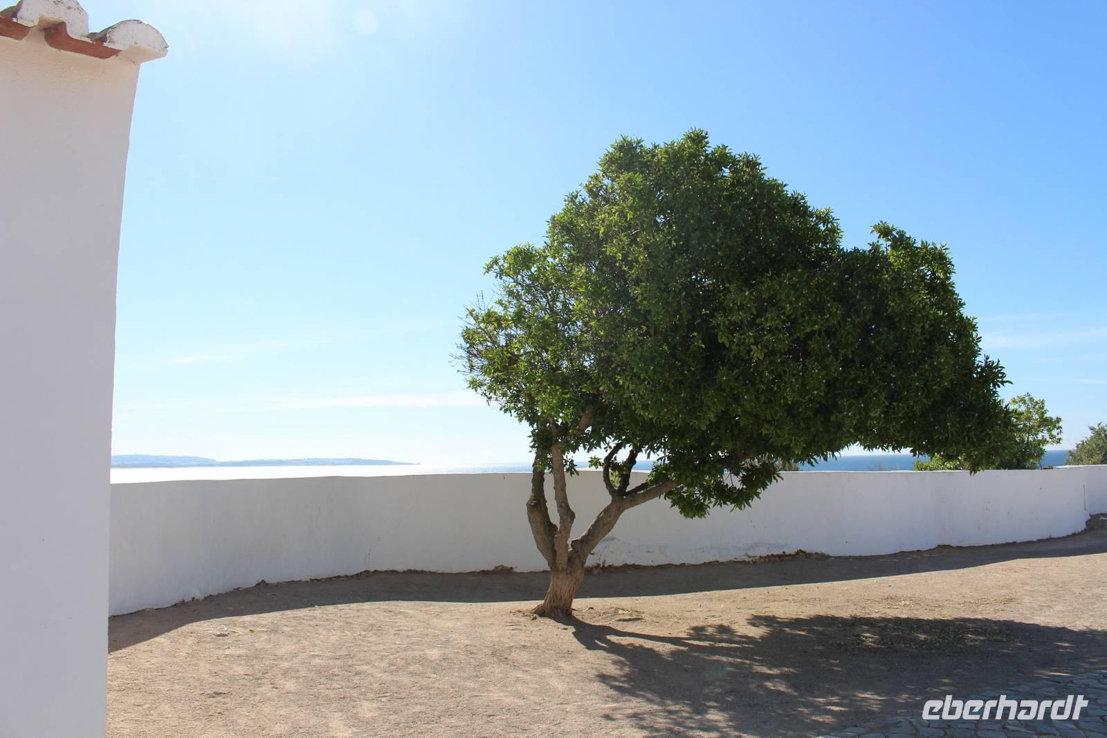Unsere nächste Station sollte ein Aussichtspunkt vor der Stadt Loulé sein. Hier entdeckten wir unter anderem auch wieder einen kleinen Erdbeerbaum, der gerade reife Früchte trug und sofort zum begehrten Fotomotiv wurde. Die Kirche konnten wir nur von außen besichtigen und auch der Opferraum war leider verschlossen, sodass man die vielen großen Kerzen nur durch die Fensterscheibe entdecken konnte. Am schönsten war hier jedoch der Ausblick auf die Stadt Loulé und die gesamte Umgebung bis hin zum Meer.