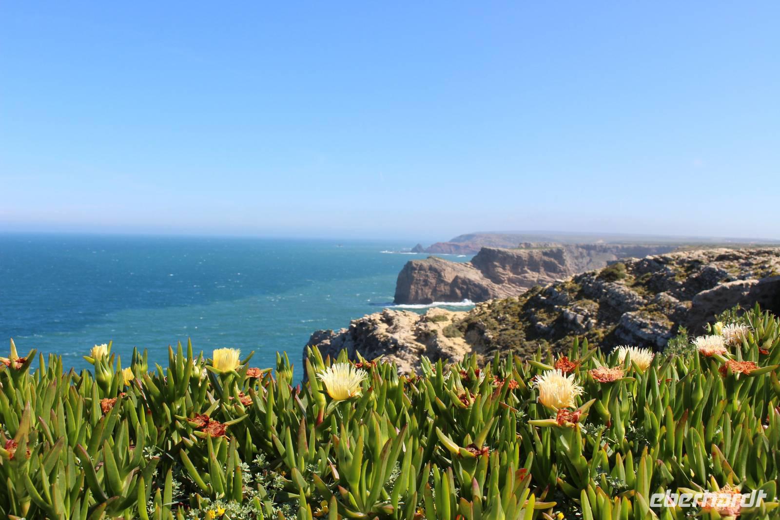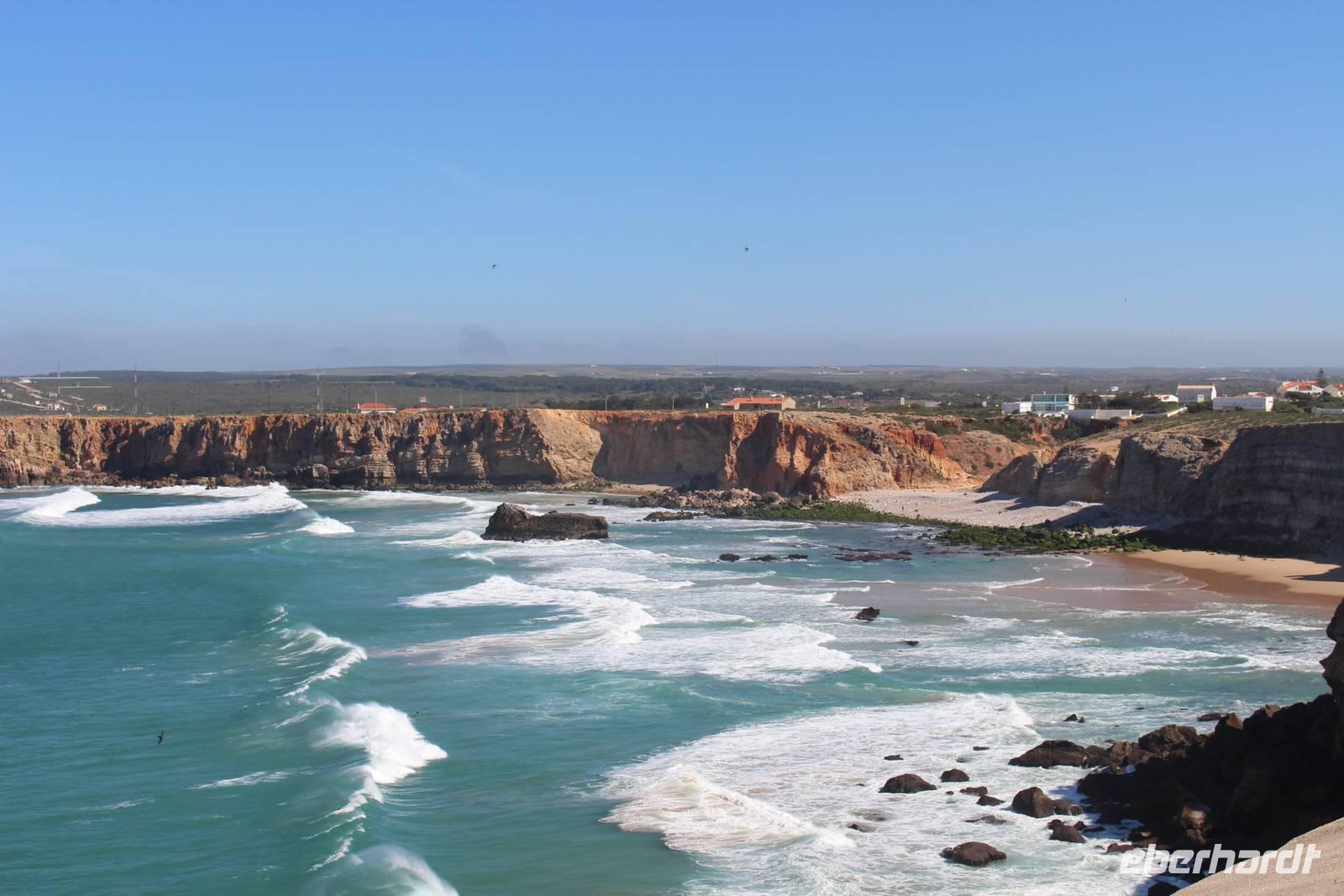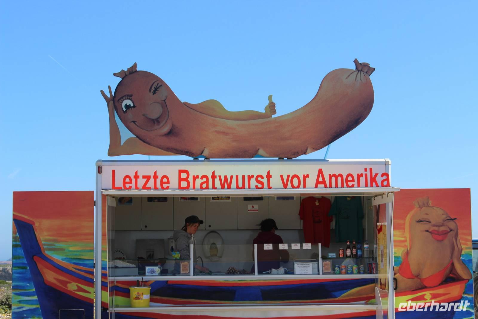 Mit dem Bus ging es weiter zum südwestlichsten Punkt Europas, dem Cabo de São Vincente. Hier treffen die Süd- und Westküste Portugals aufeinander und wir alle spürten den recht kräftigen Wind. Ein ganz besonderes Fotomotiv war hier jedoch ein Bratwurststand mit Thüringer Bratwürsten und mit dem Slogan „Die letzte Bratwurst vor Amerika".