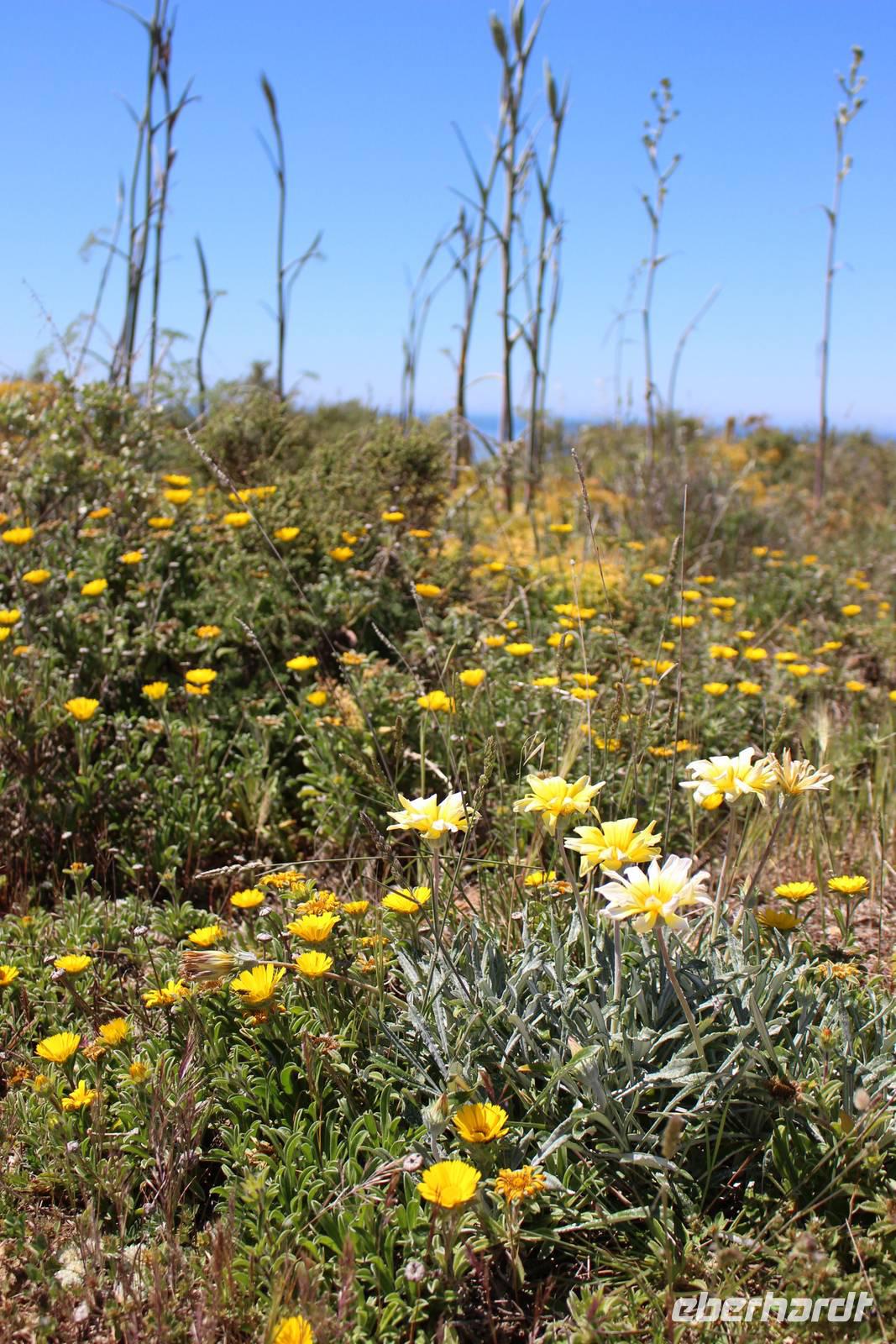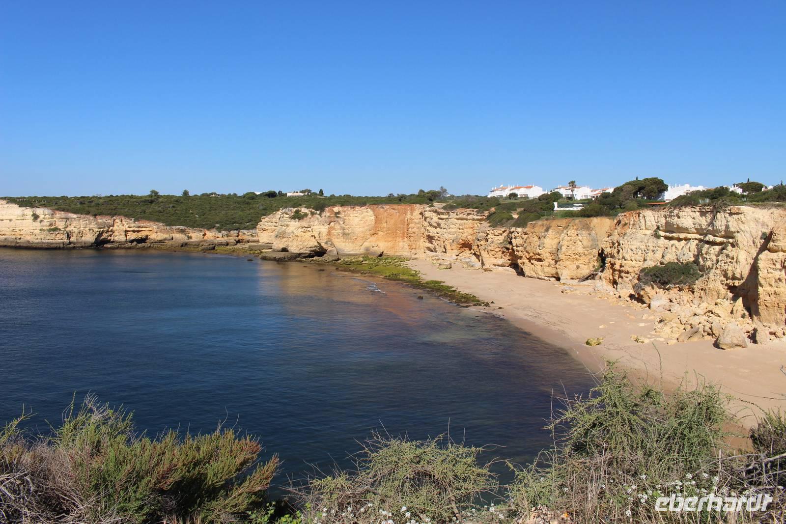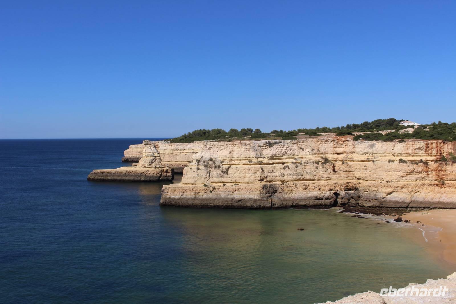 Gut ausgestattet mit Wanderstock und der richtigen Kleidung startete unsere Wanderung. Nachdem wir den ersten etwas steileren Aufstieg gut bewältigt hatten, wurden wir auch schon mit ersten tollen Ausblicken auf die Küste belohnt. Der Wanderweg führte uns direkt an der Küste entlang in bis zu 47 Metern über dem Meeresspiegel. Hinter jeder Ecke erwarteten uns tolle Fotomotive und atemberaubende Aussichten. Wir entdeckten wunderschöne kleine Buchten mit Traumstränden. Oft sah man die Einheimischen, die den Feiertag zum 1. Mai ganz traditionell mit einem Barbecue am Strand feierten. Unsere Reiseleiterin Fátima erklärte uns, dass es hier üblich ist, diesen Feiertag so zu verbringen und dazu alle Freunde und die ganze Familie einzuladen.