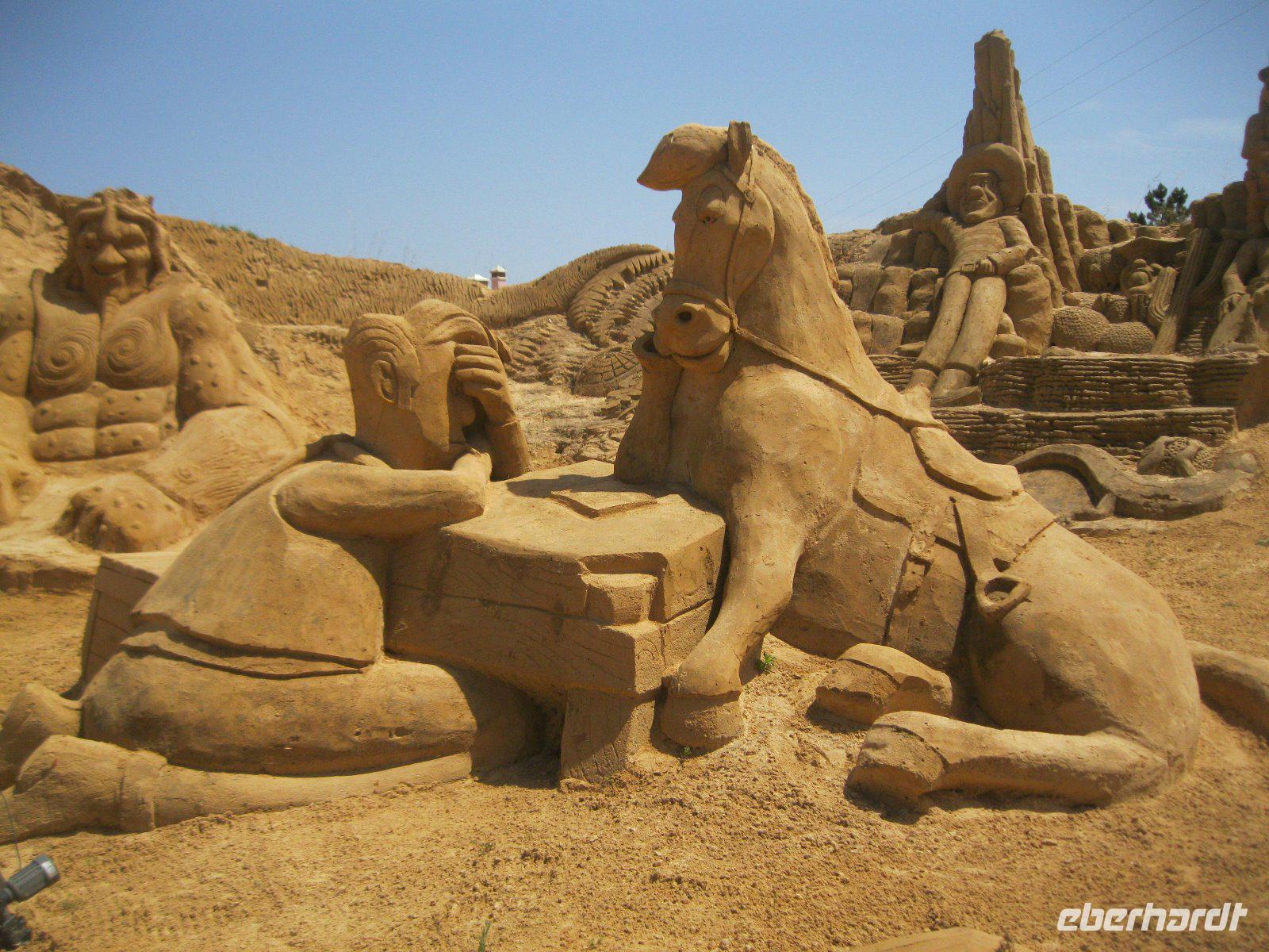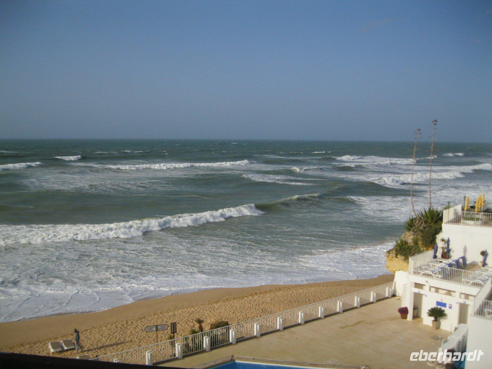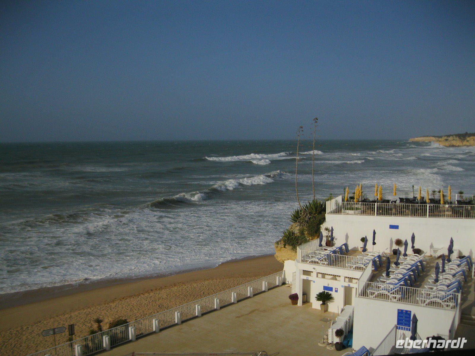 Der heiße Wind aus Nord-Afrika bringt bis zu 5 Meter hohe Wellen an den Stand. Unser fak. Ausflug soll uns in die nahen Fischerdörfer und eine Keramikfabrik führen. Zunächst legen wir einen spontanen Halt an der Kapelle Nossa da Rocha ein. Von den Klippen hatten wir wieder einen tollen Blick übers Meer, mit diesen Riesenwellen. Danach ging es weiter ins Fischerdorf Ferragudo, am linken Ufer des Rio Arade gelegen. Hier spazierten wir hinauf zum Aussichtspunkt an der Kirche und schauten über den Rio hinweg nach Portimao, wo ein Kreuzfahrtschiff ankerte. Über eine Panoramastraße erreichten wir Carvoeiro. Ein bei deutschen Touristen sehr beliebtes Küstendorf mit schöner Badebucht. Doch zuerst zog es uns zu der bizaren Felsformation "Algar Seco"und wir ließen unsere Fotoapparate klicken. Nach einem kleinen Spaziergang, entlang der Klippen erreichten wir wieder diesen kleinen, belebten Ort. Auf der Heimfahrt besuchten wir noch die Keramikstadt Porches. Der Ort ist bekannt für dieses Handwerk und wir konnten den Malerinnen über die Schulter schauen. Natürlich darf das bekannteste Motiv "der Hahn von Barcelos" nicht fehlen. Ein letzter Stop im Sandpark von Pera und wir wandelten in der wunderbaren Welt der Sandkünstler. Unsere Gäste empfanden den heutigen Ausflug als sehr schön.