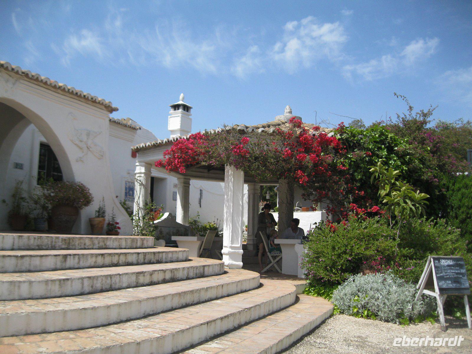Heute geht es zuerst nach Alte, ein kleiner Ort am Fuße der Serra de Caldeirao. Der gesamte Ortskern errinnert an ein Volkshistorisches- Museum. Bekannt ist der Ort auch für seine zwei Süßwasserquellen die zu Pichnickarealen ausgebaut worden. Wanderungen zum Rocha dos Soidos und Ribeira de Alte sind nicht nur bei Touristen sehr beliebt. Weiter ging es durchs Vorgebirge der Algarve nach Loule. Diese hügliche Gartenlandschaft ist geprägt von Feigen, Mandel, Oliven und Obstbäumen. Durch die ausgerägte Landwirtschaft ist Loule der wichtigste Marktort des Umlandes. Wir schlendern durch die Atstadt und die im neomaurischen Stil gebaute Markthalle , wo uns viele einheimische Produkte locken. Die Mittagszeit geniesen wir in einem der vielen Straßencafes, bevor es weiter nach Estoi geht. Dort erwartet uns ein Rundgang durch die Gärten des einzigen an der Algarve erhaltenen Rokoko Lustschlößchens. Das Anwesen , 1793 errichtet , wurde nach langjährigen Renovierungsarbeiten als fünf Sterne Schloßhotel umgebaut und als "Pousada de Faro" wiedereröffnet.Wir durften nicht nur die Gartenanlage sondern auch die Räume des ehemaligen Palastes besichtigen. Zum Abschluß unserer Tour fuhren wir nach Almansil, um die Igreja de Sao Lourenco zu besichtigen. Diese Kirche ist bekannt für ihren außegewöhnlichen Azulejo Kachelschmuck. Das Nationaldenkmal ist mit 22000 dieser blau-weissen Fließenmalerei ausgekleidet. Sie zeichnen das Martyrium des heiligen Laurentius nach. Die Heiligenfigur selbst steht vergoldet im Hochaltar. Dies war unser letzter gemeinsamer Ausflug und wir verabschiedeten uns mit einem Mendronho Likör voneinander.