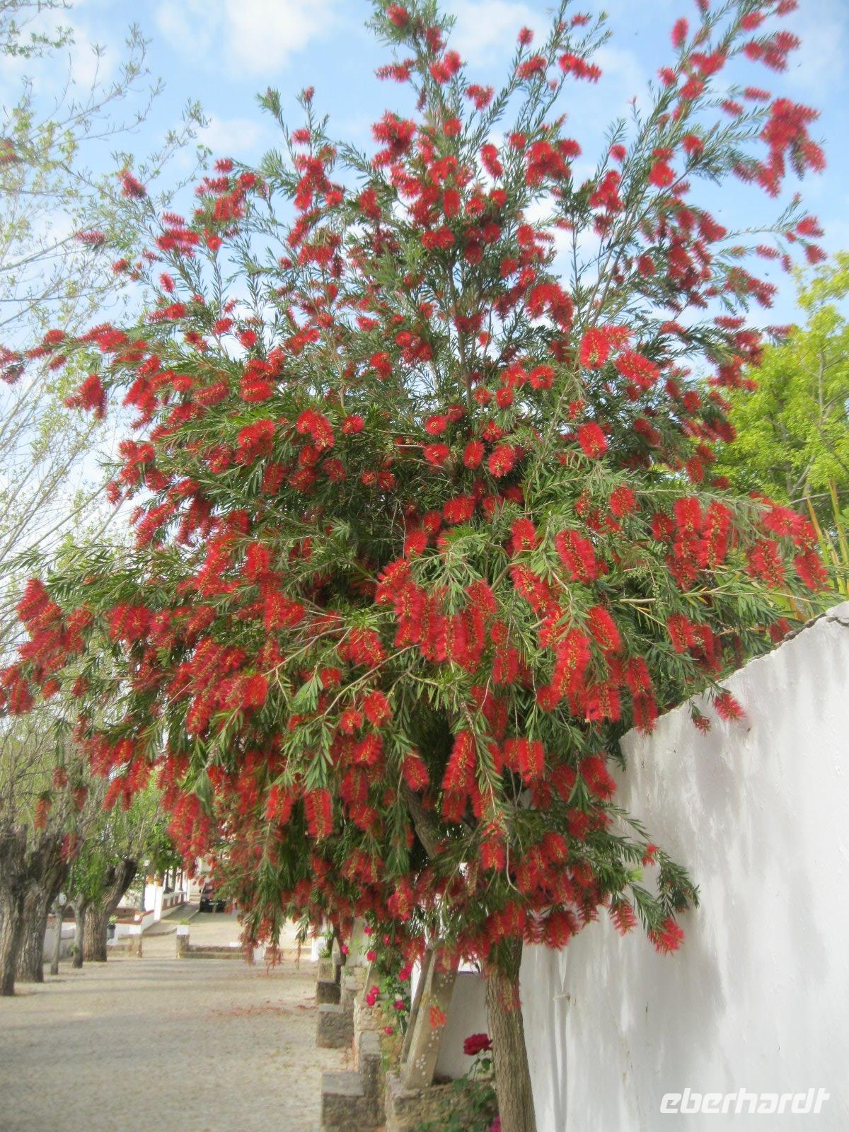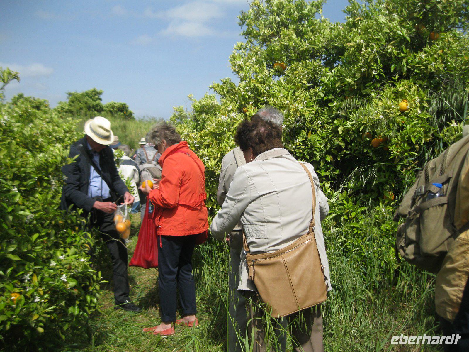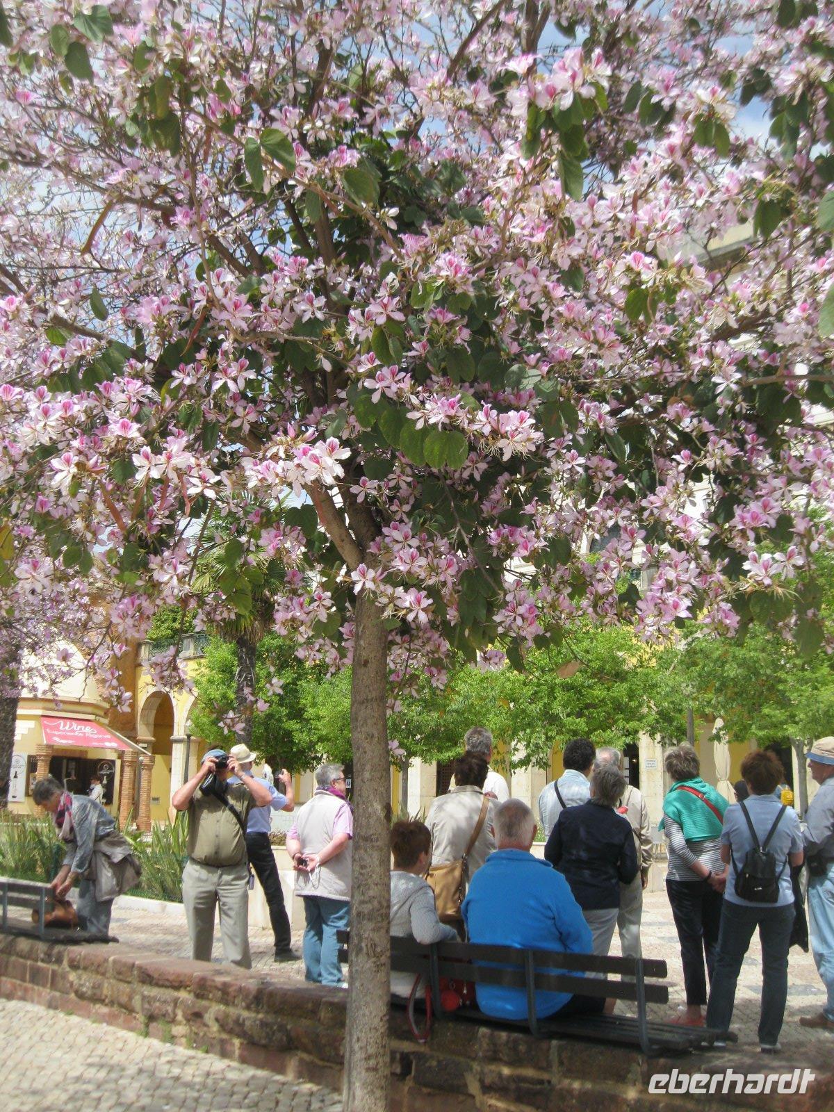 Der heutige Ausflug bringt uns weg von der Küste, ins Landesinnere. Der Weg ist gesäumt von unzähligen Zitrusplantagend. In Poco Barreto besuchen wir einen Orangenhain und erhalten Informationen über den Anbau. Wir durften uns sogar einige Früchte frisch vom Baum pflücken und naschen- hmmm! Nach kurzer Fahrt erreichten wir die ehemalige maurische Hauptstadt, Silves auf der rechten Seite des rio Arade. Wir stiegen hinauf zur besterhaltensten Burganlage der Algarve und wurden von König Sancho in "voller Größe" begrüßt.Das Festungsinnere erinnerte uns an 1001 Nacht. Nach ausgiebigem Rundgang liefen wir, vorbei an der Bischhofskirche und dem von Orchideenbäumen gesäumten Markplatz, hinunter zur Ufersraße. Der Bus wartete schon und es ging in den Parque da Mina. Eine Parkanlage mit altem Herrenhaus, dass zu einem Volkskunstmuseum umgestaltet wurde. Weiter fuhren wir in den "Garten der Algarve" in die Serra de Monchique. Dort probierten wir von der Jungbrunnenquelle und nun warten wir auf die Wirkung? Danch ging es hoch hinaus, zum höchsten Gipfel der Algarve, der Foia mit 902 m. Allerdings "zieren "ihn auch unzählige Antennen von Luftwaffe und Radio. Leider war die Aussicht trübe und der Wind pfiff uns tüchtig um die Ohren. Über die Serpentinen schlängelten wir uns wieder hinunter und steuerten unserer Medronho Verkostung entgegen. Wir waren sehr gespannt wie der Likör oder der Branntwein des Erdbeerbaumes schmecken wird. Es ist eine leckere Angelegenheit! Auch den Honig des Alcacarias durften wir naschen. Zum Abschluß des Tages kehrten wir in ein gemütliche Restaurant "Jardina das Oliveria" in den Bergen ein. Dort wurde uns das typische PiriPiri Hühnchen serviert."Wir wären ja so gern noch geblieben,aber der Wagen(Bus)der rollt". Ja leider,wir hatten noch eine Stunde Fahrt bis ins Hotel.