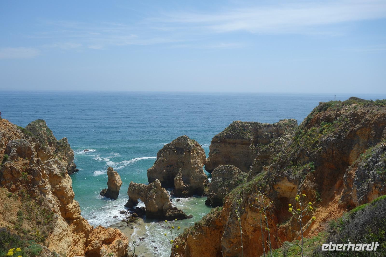 Mit diesen ersten Portugiesischen Fotos im Gepäck ging es dann weiter nach Lagos. Kurz vor dem Touristenort hielten wir aber noch einmal, um einen Blick auf die vom Meer ausgespülte Felsformationen und Grotten zu werfen.