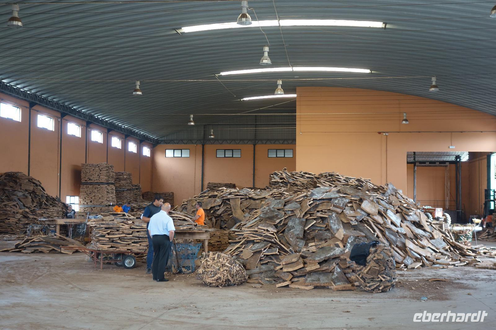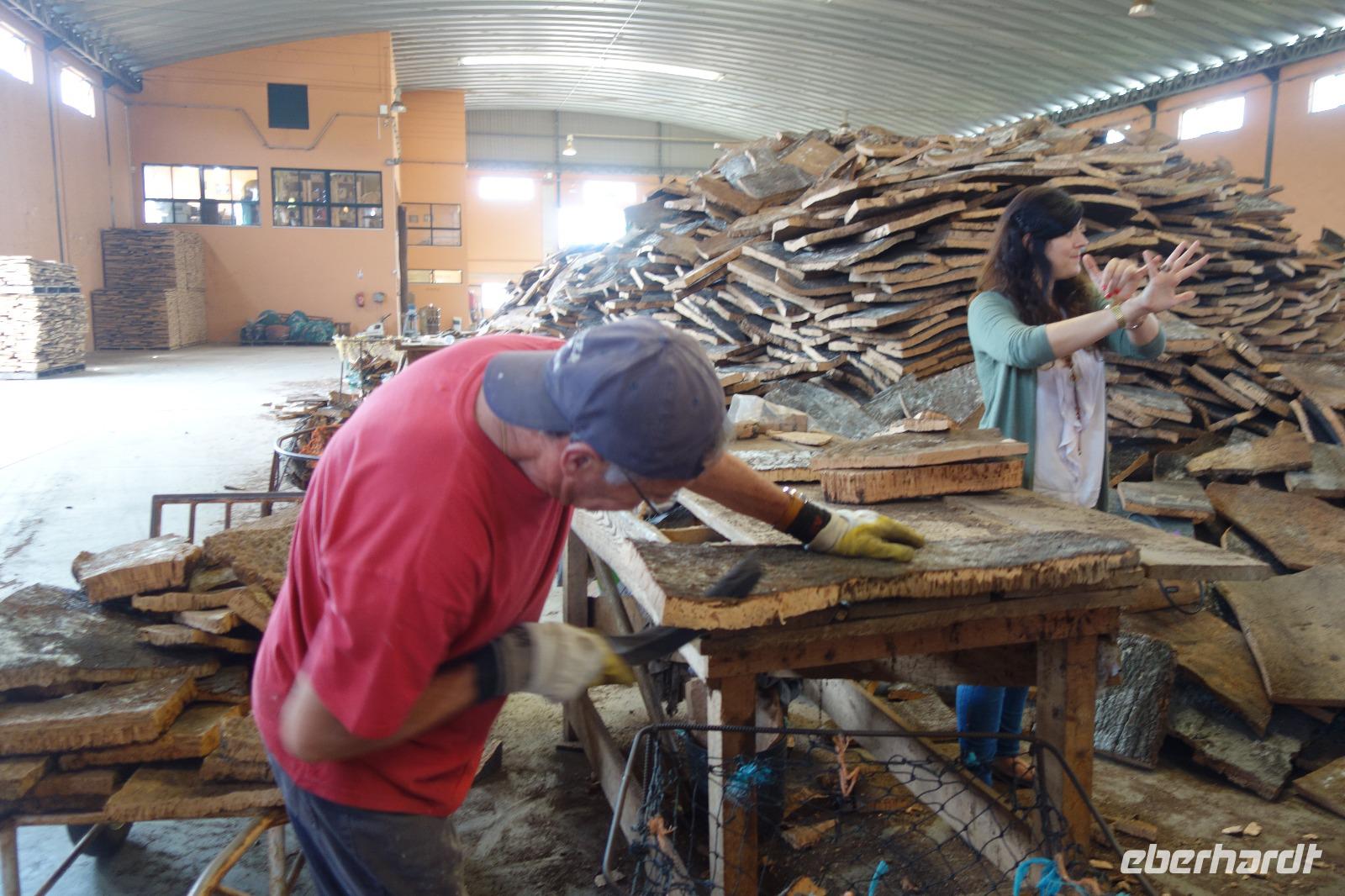 Heute hatten wir uns wieder einmal zwei schöne Dörfer vorgenommen: Alte und Loulé. Die kleine Gemeinde von Alte bestand lediglich aus einem Kiosk, einem Tante-Emma-Laden und einer Kirche. Mehr brauchte es nicht. Die Gassen waren blumengeschmückt, die Sonne war heute etwas schüchtern. Wir schlenderten ein wenig umher und genossen die Ruhe. Hier konnten wir außerdem einen tollen Einblick gewinnen, wie die Menschen vor 50 Jahren gelebt hatten und noch leben. Ein klarer Kontrast zum so ursprünglichen Alte, war die traditionelle Marktstadt Loulé. Hier erwartete uns zum eine große Markthalle, wo Fisch, Fleisch, Obst, Gemüse, Piri-Piri und allerhand andere lokale Waren angeboten wurden. Vorbei an Estoi fuhren wir dann in eine Korkenfabrik. Der Kork war für die Portugiesen ein wichtiges Erzeugnis. Schon in den vielen kleinen Souvenirläden war uns die Taschen- Schmuck- Schuh- Vielfalt aufgefallen, alles aus Kork bestehend. Uns führte hier Sandra, die für ihre Arbeit lebte! Sie erklärte uns alles was wir zur Korkgewinnung und Verarbeitung wissen mussten.