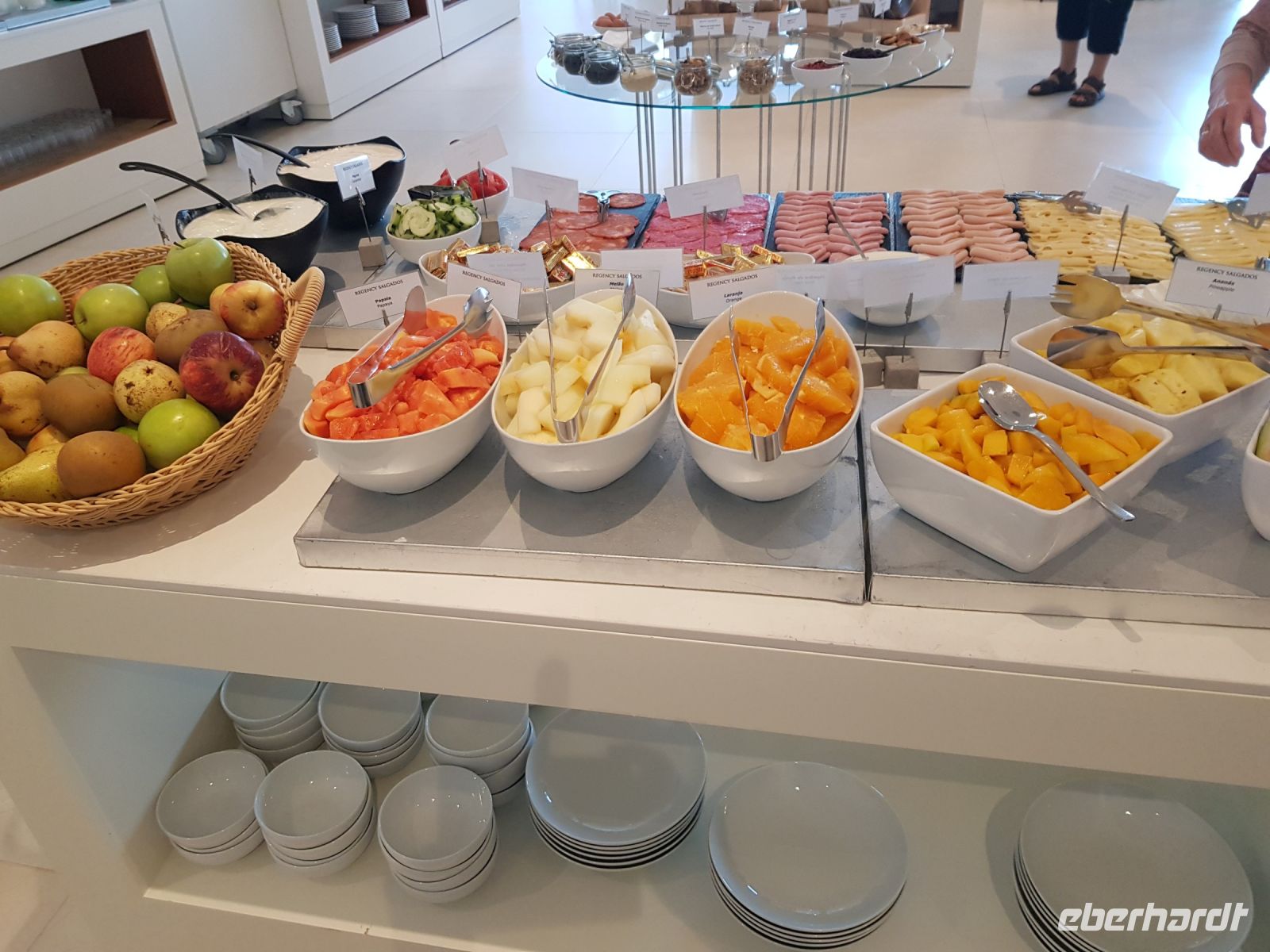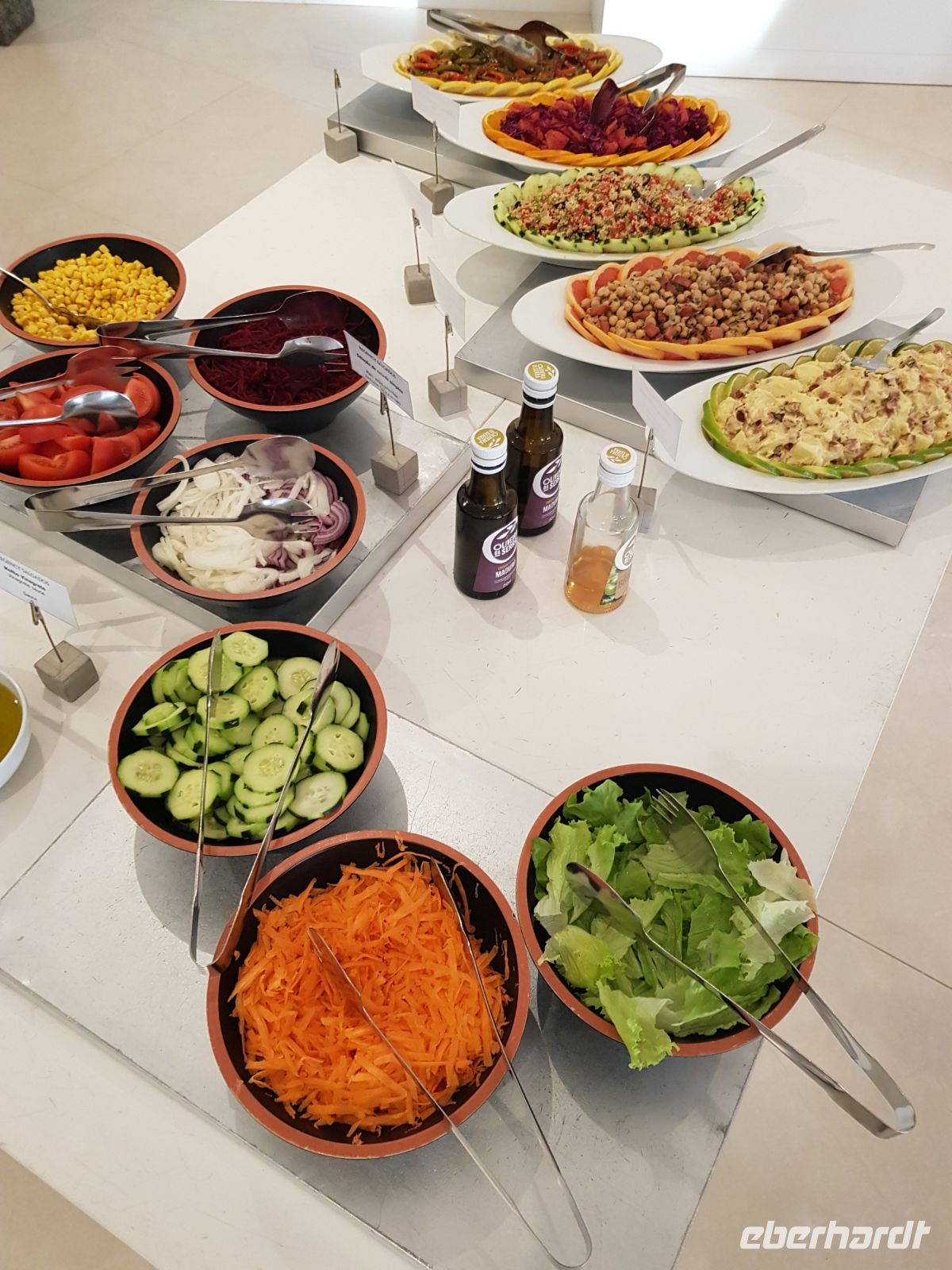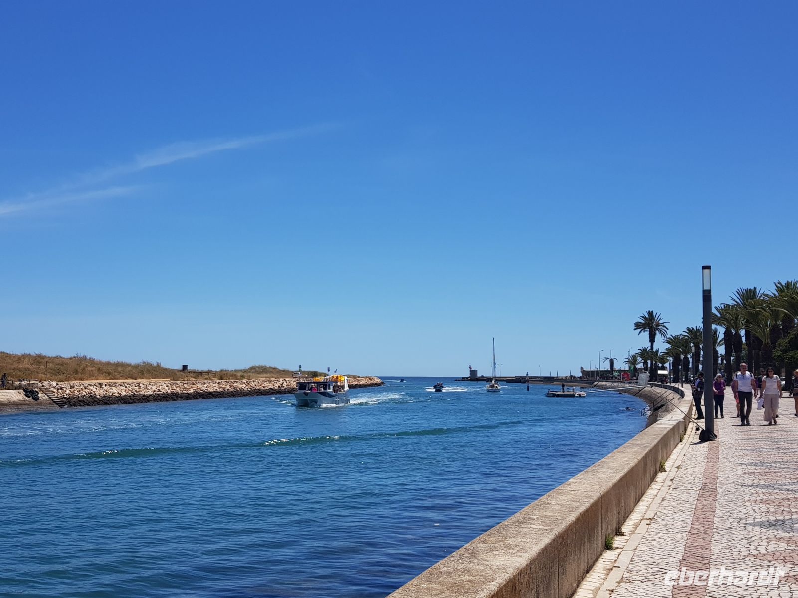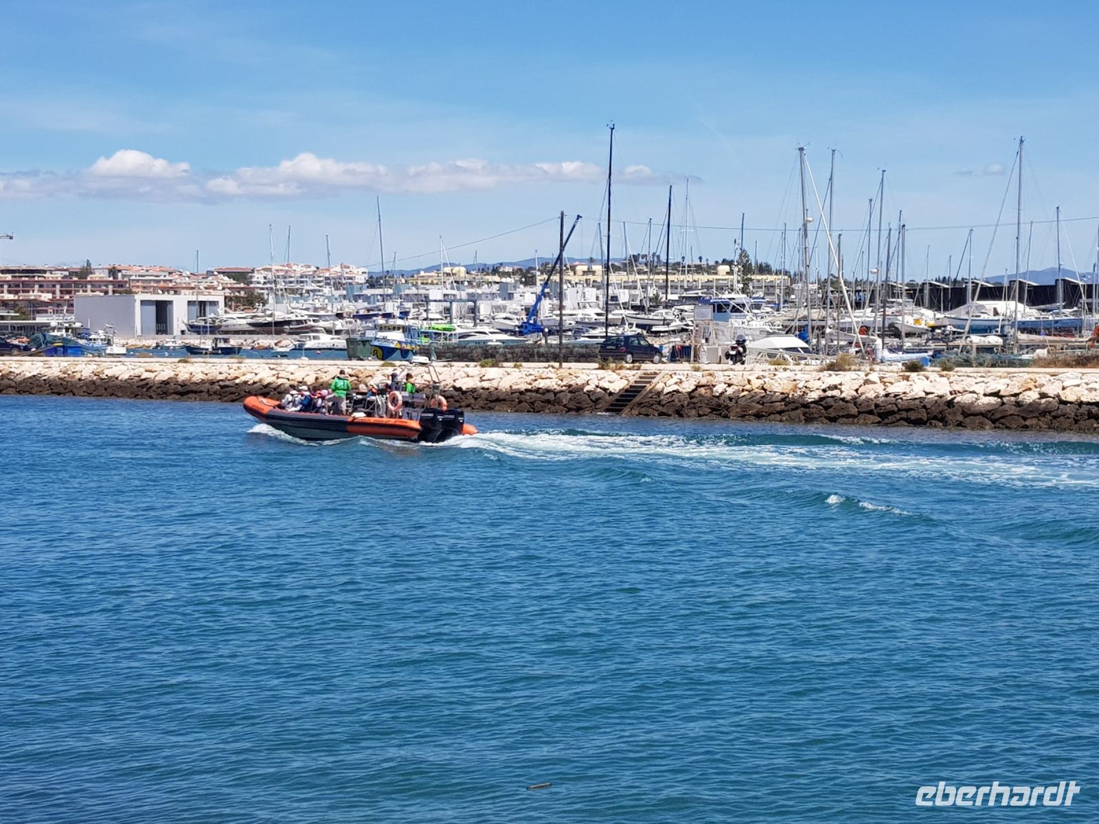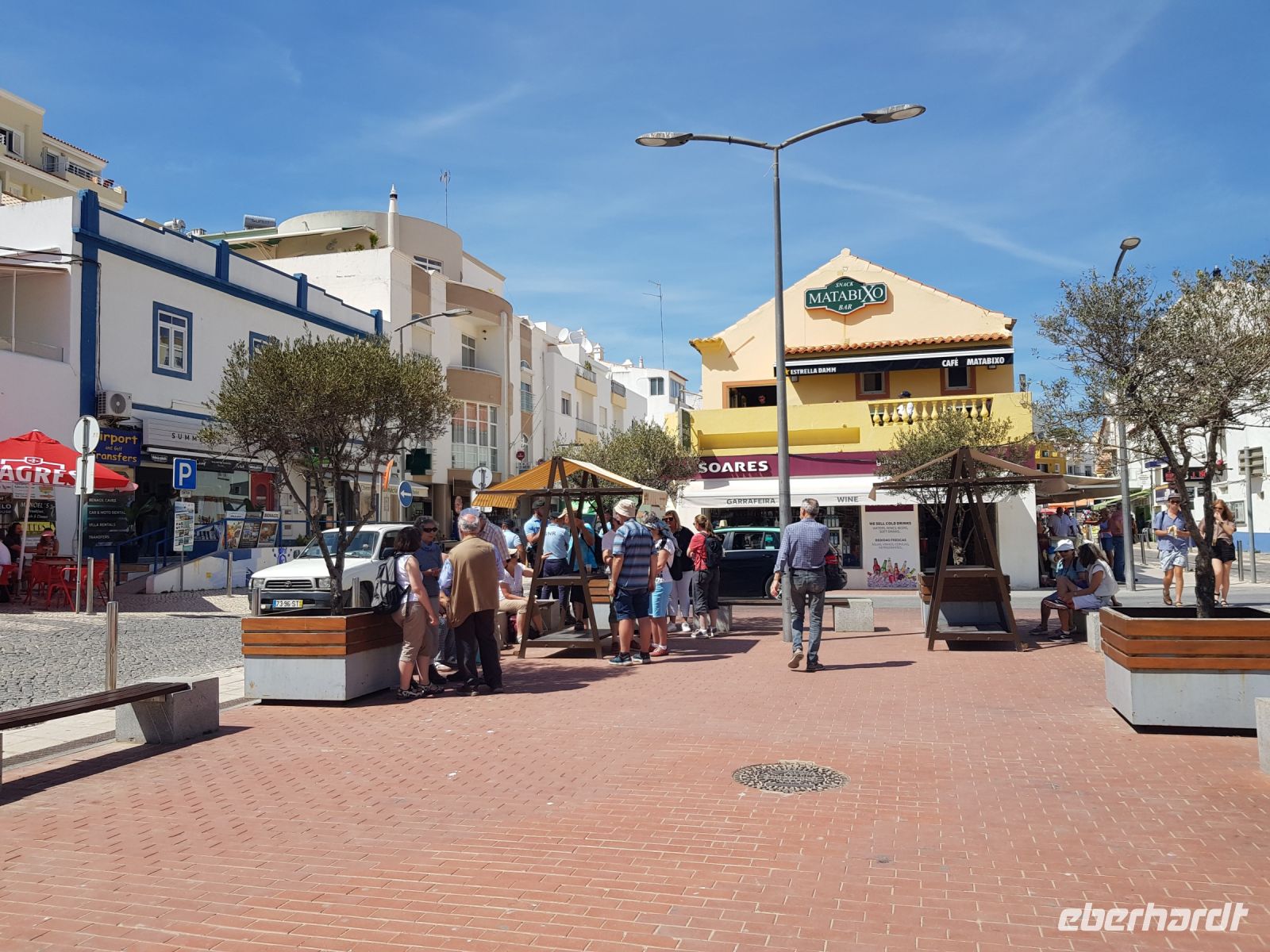 Nach einem wiederum guten Frühstück starten wir in Richtung Osten. Heute erwartet uns ein anspruchsvolles Programm. Da wir in der Nähe von Albufeira wohnen, fahren wir ein wenig durch die Stadt und haben aufgrund eines "Schlenkers", um den Reiseleiterin Elisabeth den Busfahrer Augustus bittet und können auch die schönen Strände sehen. Unser 1.Ziel ist Olhao auch Würfel-oder Kubenstadt genannt, die unmittelbar am Rande des Naturschutzgebietes Ria Formosa liegt.Wir sehen vom Bus aus als auch beim Bummel an der Uferpromenade eine Landschaft aus Lagunen, Salinen, Sandbänken und weiter entfernt kaum noch mit dem Auge erkennbar den Leuchtturm der Düneninsel Farol. Anziehungspunkt ist natürlich die große Markthalle mit ihrem Fischmarkt. Deswegen haben wir das Programm vom Samstag auf den Sonntag getauscht, weil es sonntags keinen Markt gibt.Wir schlendern am Boot-und Yachthafen entlang zur großen Markthalle und können uns an frischem Fisch, Obst und vielen anderen Dingen satt sehen oder auch mal eine Kostprobe nehmen. Weiter geht es nach Tavira, die durch ihre Lage am Fluß umrahmt von Hügeln mit Obstplantagen zu den reizvollsten und architektonisch interessantesten Kleinstädte an der Algave gehört. Den besten Ausblick haben wir von der Festung. Heute klappt es auch mit dem Besuch einer Kirche, die durch einen Altar aus Gold und mit aus blauen Fliessen gestalteten Wandbildern punktet. Hier gibt es nach der Führung durch Elisabeth auch eine Stunde Freizeit für Gäste. Und weil es so schön ist, fahren wir noch zu einem Fotostopp nach Casela Vera, hier hat man den besten Ausblick auf Lagunen, Düneninseln und mehr. So ein niedliches Dörfchen , gerade finden hier in der Kirche einige Hochzeiten statt, ein Geheimtipp, bitte nicht weitersagen ( indessen weiß es aber wirklich fast Jeder). Danach fahren wir in Richtung Spanien nach Villa Real de Santo Antonio, die durch das Erdbeben 1755 völlig zerstört und in nur 6 Monaten unter Leitung von Marques de Pompal geplant und wieder aufgebaut wurde. Eine kleine Stadt, die wiederum wie auch Olhao, durch eine bestimmte Anordung der Strassen und Häuser, als Kubenstadt bekannt ist. Am rechten Ufer des Flusses Rio Guadiana gelegen, ist es nur noch ein Katzensprung bis zum nächsten Ort, dem spanischen Ayamonto. Nach einem kurzen Aufenthalt fahren wir noch eine Weile am Ufer entlang nach CASTRO MARIN. Von hier aus hat man einen wahrhaftig guten Ausblick auf die Salinen. Auf dem Weg zurück nach Westen machen wir noch einen Stopp in FARO, gehen mit Elisabeth am Hafen vorbei in die Altstadt. Als wir 17:30 Uhr wieder im Hotel sind, können wir sagen: wieder ein schöner Tag, mit bestem Wetter und tollen Sehenswürdigkeiten. Und der Tag ist noch nicht zu Ende. Der Hotelpool ist zwar noch ein bißchen kalt, aber nach der ersten Runde ist das vergessen. Und das Abendessen lockt wieder mit landestypischen Spezialitäten.