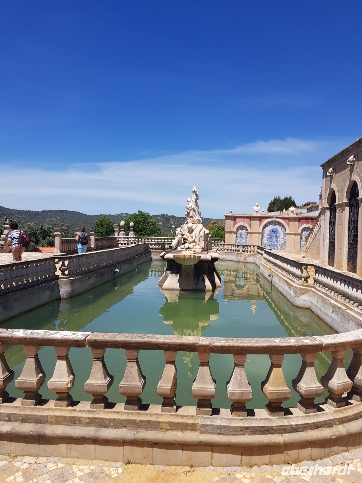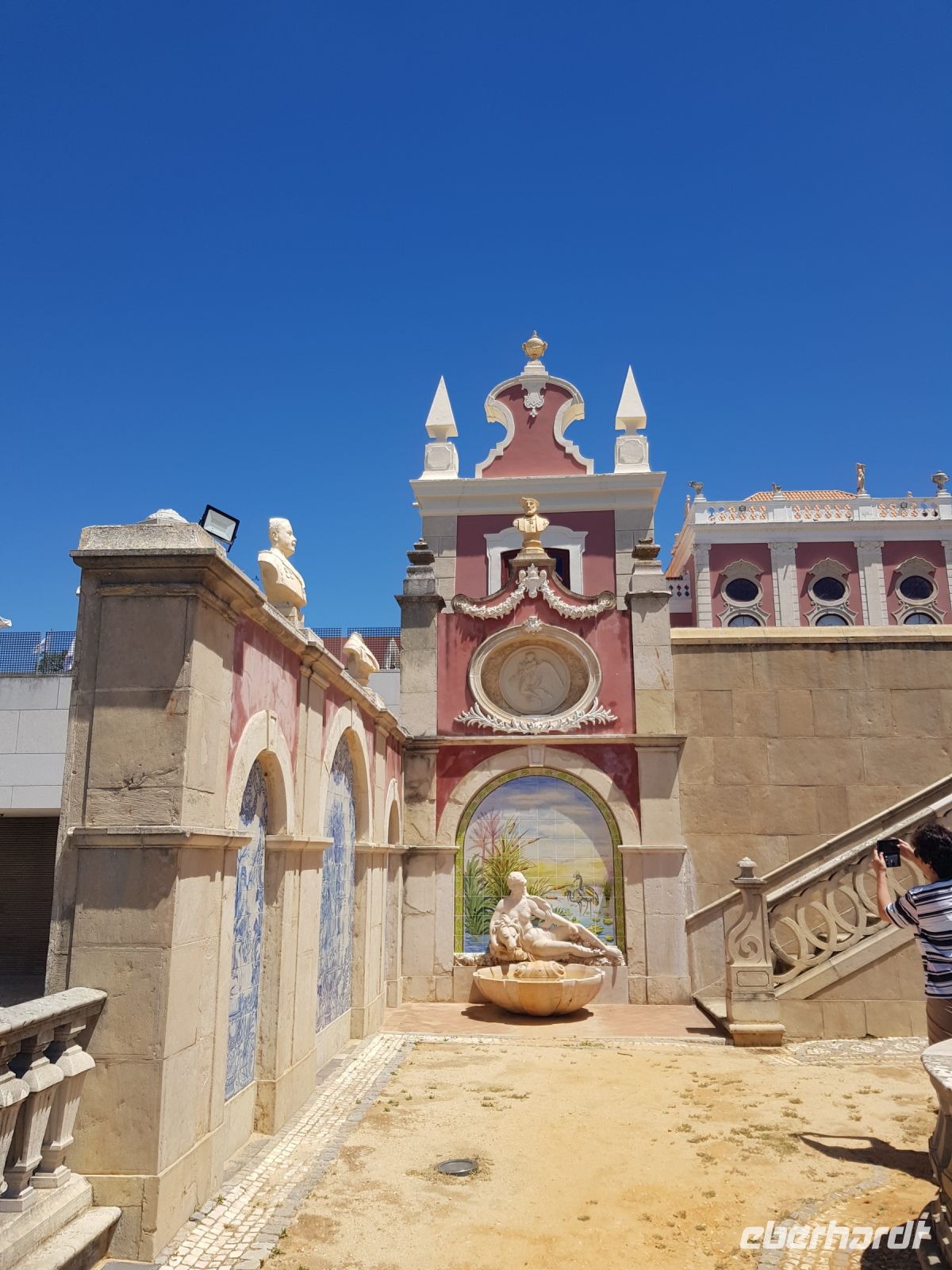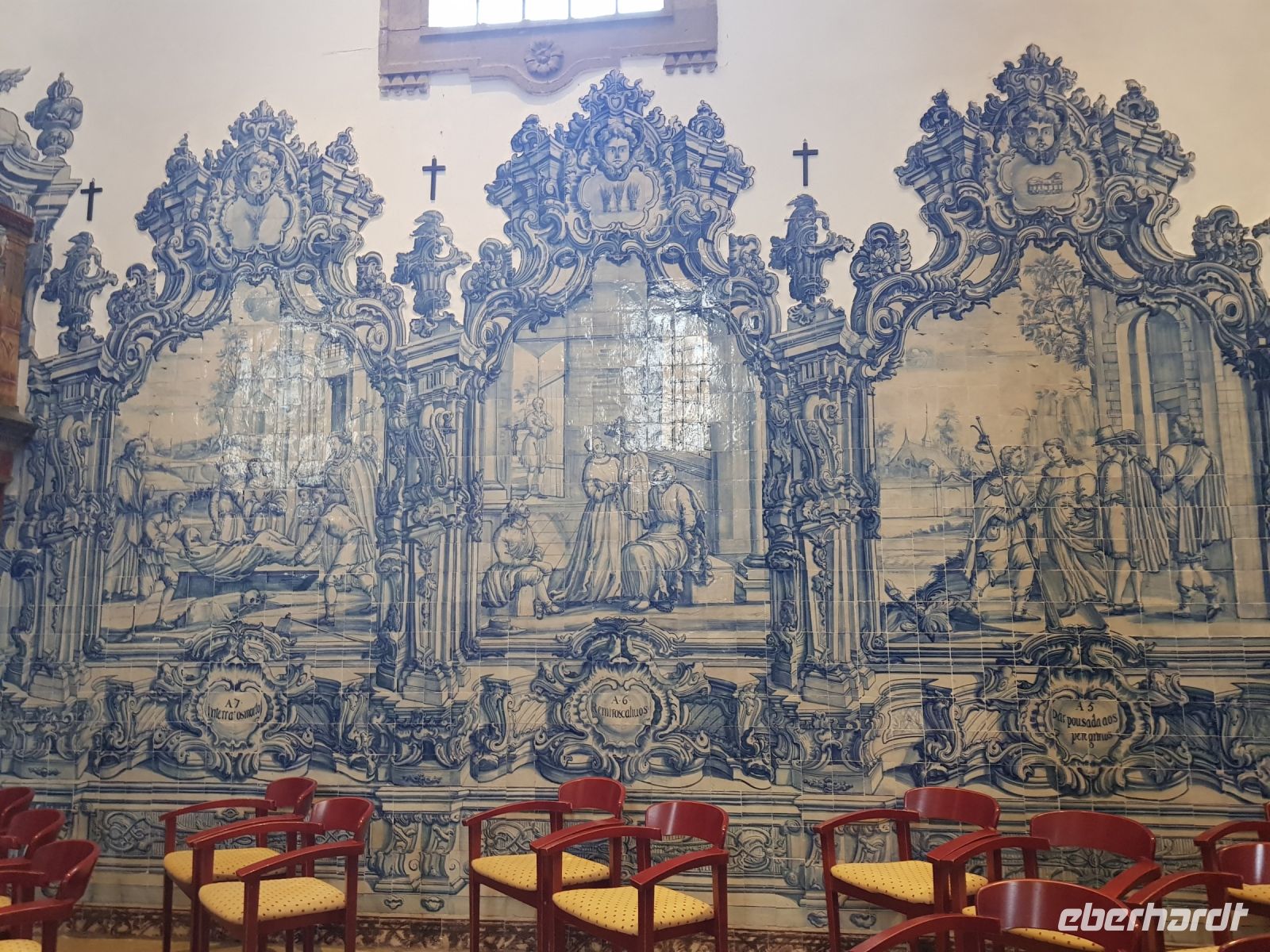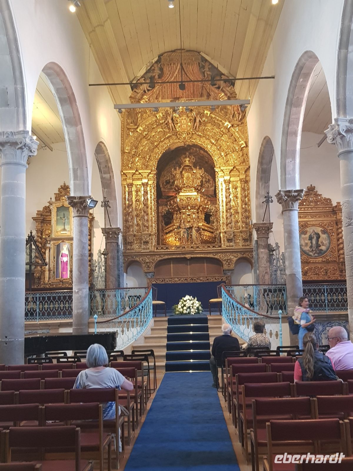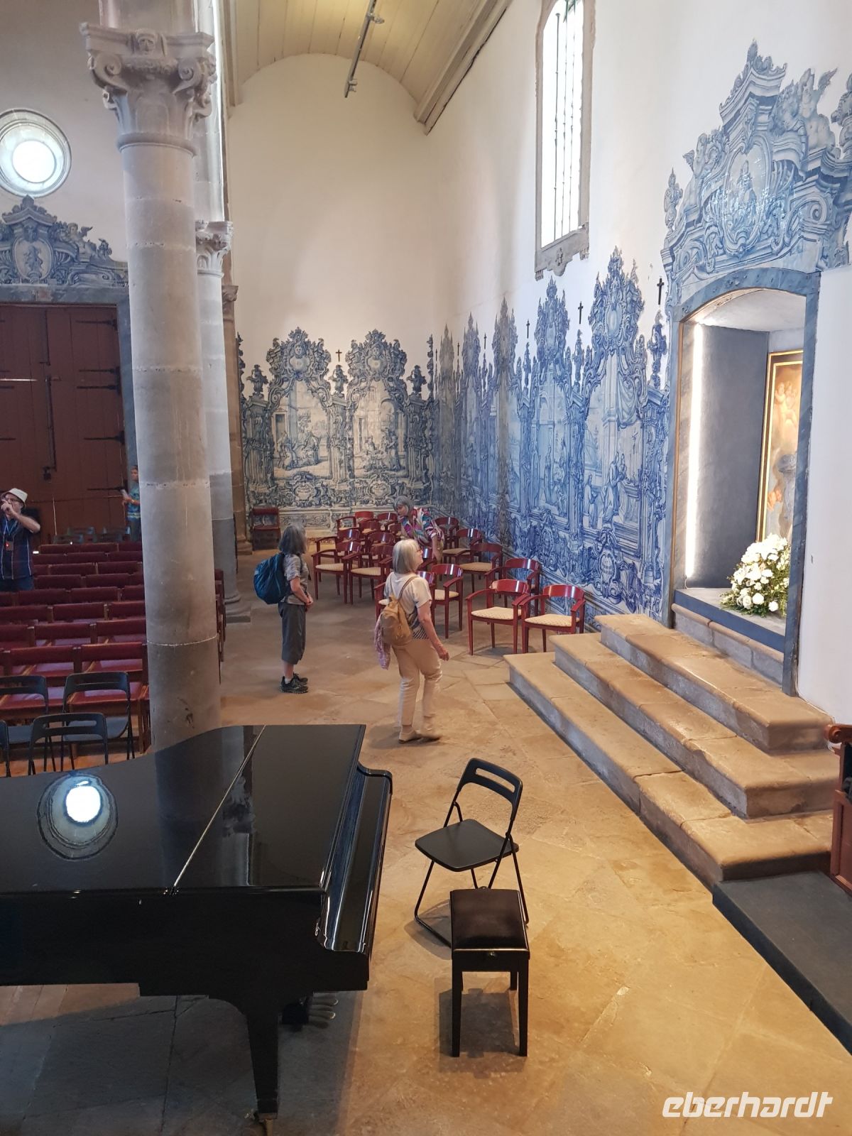 Das Gegenteil sehen wir zum Teil im Rokoko Palast des Grafen von ESTOI ( PALACIO DO VISCONDE DE ESTOI), aufwändig restauriert und heute ein 5 Sterne Hotel. Wir werfen einen Blick in einen kleinen Teil des Gartens bevor zum letzten Highlight des Tages und der Woche kommen - der Kirche von SAO LOURENCO. Wieder eine Kirche, wie es für Portugal typisch ist, mit goldenem Altar und blauen Fliessen ausgekleidet. Dieses Mal aber ist fotografieren nicht erlaubt.