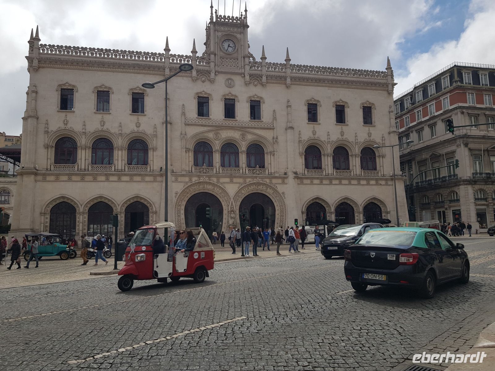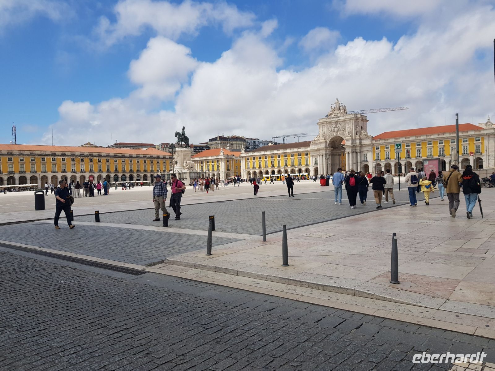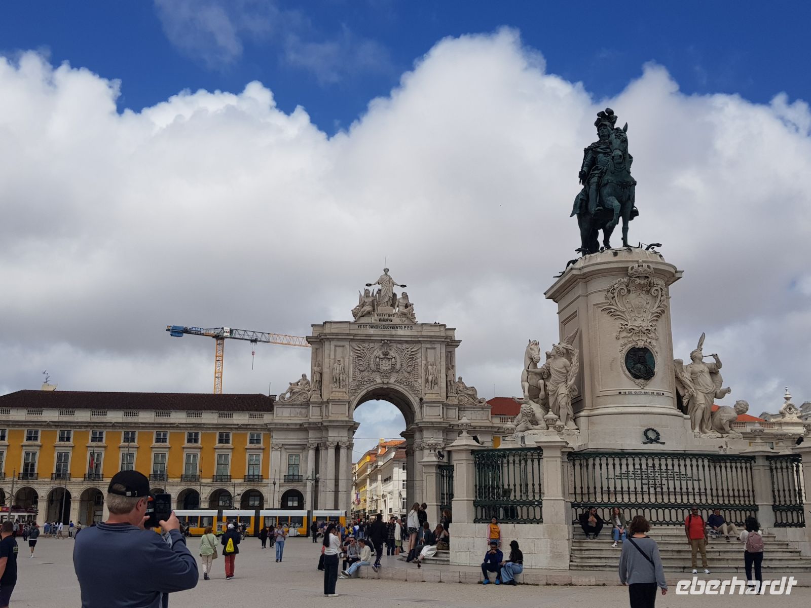 Die Entscheidung ist längst gefallen: auch wenn die Fahrzeit nach Lissabon jeweils hin und zurück 3 Stunden dauert, wir fahren auf jeden Fall! Nach einem vorzeitigen Frühstück geht es los. Unterwegs erzählt Elisabeth viel über den Alentejo, der 1/3 der Fläche Portugals einnimmt und früher das Armenhaus des Landes war. Auch heute noch muss man schwer auf den Obstfeldern arbeiten und wenn nicht genug Regen fällt ist gleich mal die ganze Ernte weg. Hier wachsen neben Zitrusfrüchten auch Wein, Tomaten, Oliven, Avocados, es gibt Mais-und Reisfelder und viel Weidefläche für Schafe, Ziegen und Rinder. Weil es aber im März/April ausnahmsweise viel geregnet hat, fahren wir durch grüne Landschaften, Flächen, auf denen Rinder weiden, Obstplantagen, Eukalyptus- und Korkwälder, dann wieder sanfte Hügel, die man hier als Berge bezeichnet, was aber einer Österreicherin wie Elisabeth ein Lächeln abringt. Gegen frühen Mittag fahren wir dann über die bekannte Brücke "Ponte 25 de Abril", eines der ersten Wahrzeichen der Stadt und der Golden Gate Bridge in San Fransisco sehr ähnlich. Eine kleine Stadtrundfahrt führt am UNESCO-Weltkulturerbe Hieronymus-kloster ( hier Mosteiro dos Jeronimos genannt ) vorbei. Auf der Fahrt erhaschen wir noch einen Blick auf die Jesusstatue, auf das Denkmal der Entdeckungen - Padrao dos Descobrimentos. Schliesslich werden wir in der Innenstadt abgesetzt und nun beginnt die Stadtführung mit Elisabeth. Wir staunen über wunderschöne Plätze mit Statuen, die Kopie des Eiffelturms ( Elevator de Santa Just), ein Touristenmagnet, an uns fahren die alten und bekannten Strassenbahnen vorbei, werfen einen Blick in eine der vielen Kirchen... Lissabon ist eine Stadt zum Verlaufen und das passiert dann auch...Einige von uns setzen sich mit und Einige ohne Ortskenntnis ab, Elisabeth hat eine Sonderaufgabe und Reisebegleitung Steffi schnappt sich Interessenten, um den Berg mit dem CASTELLO SAO JORGE zu erklimmen. Wir machen einen kleinen Umweg : vom Stadtzentrum gehen wir durch den Triumphbogen ARCO DA RUA AUGUSTA zum Handelsplatz ( PRACA DO COMERCIO ) . Er ist einer der prächtigsten Plätze in Lissabon, an drei Seiten umgeben von großen gelben Gebäuden im Pombalin-Stil. ( MARQUES DE POMBAL leitete nach der Zerstörung der Stadt durch ein Erdbeben den Aufbau der unteren Stadt ebenso wie in VILLA REAL SAN ANTONIO. Die südliche Seite blickt auf die TEJO-Mündung. Eine Stadt an einem Fluss übt immer eine besondere Anziehungskraft aus. Danach besteige ich mit 4 Gästen ein Tuk-Tuk, der Fahrer versteht seine Gäste zu unterhalten es ist echt lustig. Aufgrund hohen Besucheraufkommens ist es nicht allen vergönnt, Tickets für die Burg zu bekommen. Wir erkunden das Viertel ALFAMA mit seinen engen Gassen, finden einen Turm mit herrlicher Aussicht auf die Stadt ( statt Eintrittskarten für 5 Euro gibt es einen Becher Rot-oder Weißwein oder eine Flasche Wasser oder frisch gepressten Orangensaft). Bevor es zum vereinbarten Treffpunkt geht, probieren wir noch frisch zubereitete PASTEIS DE NATA. Unser Bus kann pünktlich 16 Uhr starten und gegen 19:30 Uhr sind wir wieder im Hotel. Beim Abendessen tauschen wir uns aus, wer welche Sehenswürdigkeiten erkundet hat.