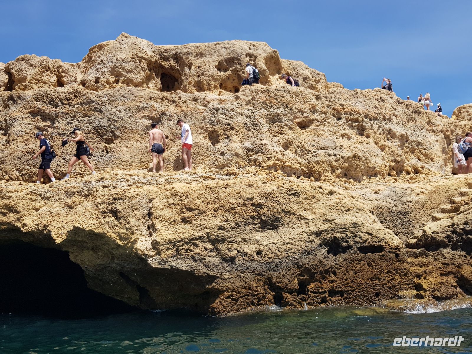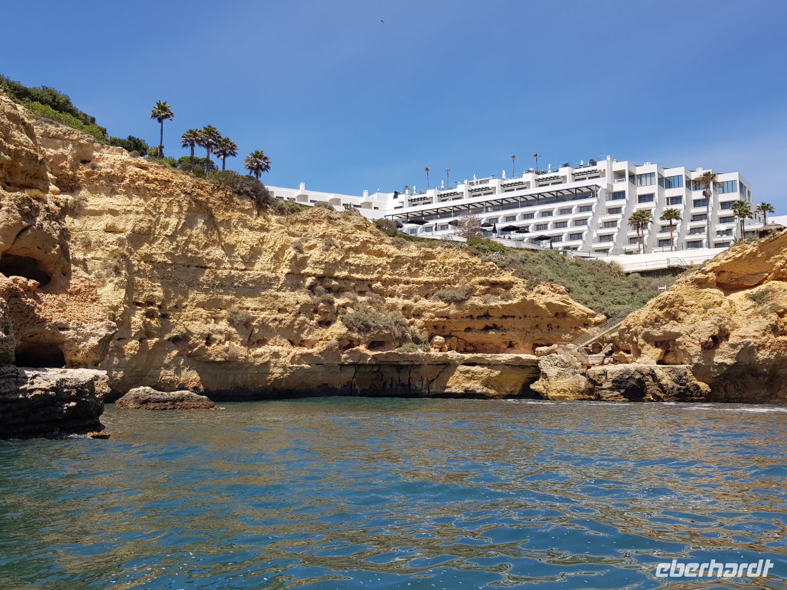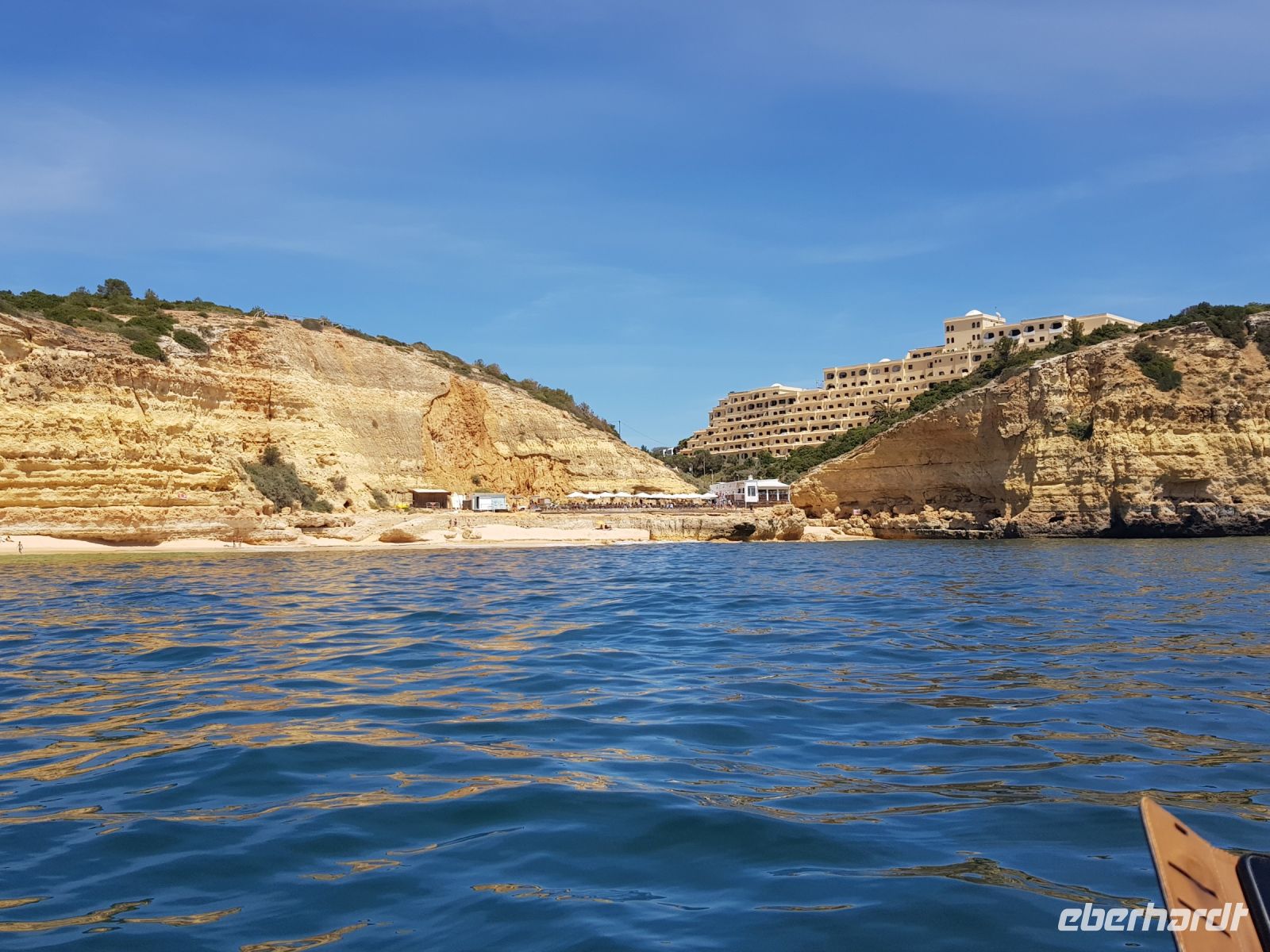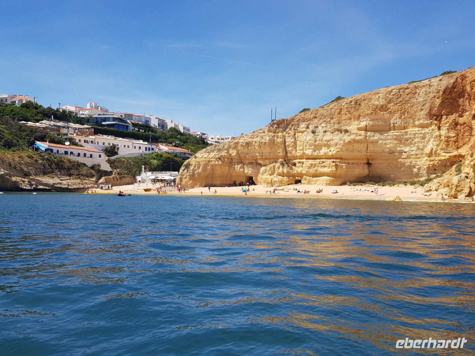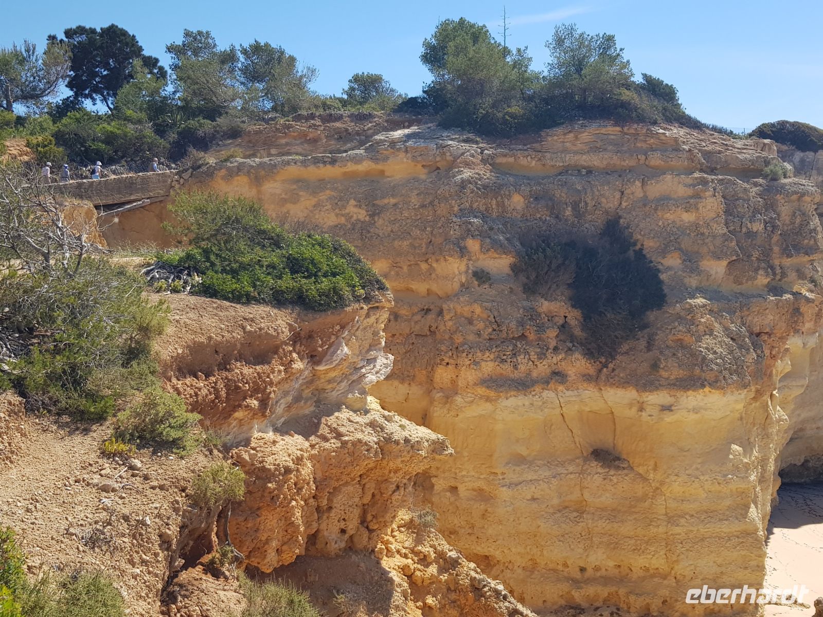 Geduld und Nerven bei der Vorbereitung, diesen Tag optimal zu gestalten. Statt des bestellten Kleinbusses kam ein großer, noch mal 300 g Geduld vom Konto abgehoben! ( wie soll dieser lange Bus an die geplanten Praias fahren können?). Es geht zunächst besser als gedacht. und ein bißchen laufen wollen wir ja auch. Als erste "Perle" ist die Felsenkapelle NOSSA SENHORA DA ROCHA geplant. Die Aussicht auf die Bucht mit ihrem schroffen Felsen ist großartig. Aber es soll noch besser werden, weil als nächste "Perle" eine Wanderung an der "PRAIA DA MARINHA" geplant ist. Aber erst einmal muss man unbedingt fotografieren. Dabei weiter zu laufen ist gar nicht so einfach. SENSATIONELL diese Ausblicke auf die Felsformationen! Das sind genau einige dieser Postkartenmotive! Wir wandern gemütlich in die eine Richtung nach rechts und dann geht es einige Meter den Weg zur Badebucht hinunter bevor es noch in die andere Richtung geht. Man kann sich gar nicht satt sehen an diesen herrlichen Motiven, es ist wie in einem Film. Danach fährt uns der Bus nach CARVOVEIRO - das schönste Fischerdorf an der Algarve. Aber mit so einem großen Bus gibt es Schwierigkeiten durch die engen Gassen zu fahren, die auch schon mal fast zugeparkt sind. Am geplanten Parkplatz vor der ALGAR SECO ( dem Küstenwanderweg aus Holzbohlen) können wir auch nicht parken, die Einbahnstrasse führt uns wieder ins Zentrum. Also machen wir die Wanderung andersherum, ist auch nicht so schlimm, wir müssen den Weg nur hin (vom Zentrum des Dorfes den Berg hinauf zur Algar Seco) und dann wieder zurückgehen. Aber diese 3."Perle" ALGAR SECO mit ihren Buchten, die man teilweise hinabsteigen kann, ist es wert!