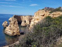 Nach einem sehr guten Frühstück starten wir 09:00 Uhr zu unserem Halbtagesausflug. Auf der Fahrt zu unserem ersten Ausflugsziel erhalten wir von Elisabeth viele Informationen zur Geschichte der ehemaligen Seefahrernation Portugal, geprägt durch solche berühmten Seefahrer wie Heinrich, der Seefahrer, der eigentlich wegen Seekrankheit keiner war, aber er war der Initiator und Auftraggeber der portugiesischen Entdeckungsreisen. Weiter berühmte Seefahrer waren Vasco de Gama, Ferdinand Magellan...Als erstes besuchen wir die Festungsanlage FORTALEZA DE SAGRES, durch Erdbeben zerstört, als Betonklotz von Salazar wieder teilweise aufgebaut, ABER sehenswert! Zumal es sich um die ehemalige Seefahrerschule von Heinrich, dem Seefahrer handelt. Die Ausblicke ringsherum auf den Atlantik und die schroffen Felsen sowie auf das gegenüber liegende Cabo de Sao Vincente sind atemberaubend. Der Wind weht heute schwach um die Ecke und wir können den Surfern aus der Ferne zusehen. Hier im Surferparadies an der westlichsten Stadt Portugals - SAGRES - gibt es natürlich einen schönen Strand auch nur zum Baden und einen kleinen Hafen, den wir dank eines "Schlenkers" unseres Busfahrers Augustus durch das Städtchen sehen können. Das nächste Ausflugsziel - der südwestlichste Punkt Europas - Cabo de Vincente - mit seiner Leuchtturmanlage ist leider seit einem reichlichen Jahr geschlossen. Aber die letzte Thüringer Bratwurst vor Amerika eifert mit dem wiederum herrlichen Ausblick um die Wette. Von hier aus geht es nach Sagres. Die geplante Besichtigung der sog. goldenen Kirche St. Antonio fällt wegen schlechter Laune eines Mannes am Eingang aus, er will zur Mittagspause, da sind ihm auch unsere Eintrittsgelder egal. Nun ja, wer hat , der hat. Und wir haben uns auf Anraten von unserer örtlichen Reiseleiterin Elisabeth ein Kilogramm Geduld gekauft, von dem wir jetzt mal schätzungsweise 200 g abziehen. Also geht es weiter durch die Stadt mit dem Gebäude und auch Platz, wo 1444 der 1. Sklavenmarkt stattfand. Lagos hat viel mehr zu bieten, nicht nur die Festung gleich an der Einfahrt in den Hafen, dort steht auch noch gut erhalten die Stadtmauer. Es ist wie immer, die Zeit reicht nie aus. Aber unser Bus steht uns nur bis 14 Uhr zur Verfügung. Am Nachmittag gibt es Freizeit, der Strand ist nur 10 Minuten entfernt und absolut sehenswert. Spätesten beim gemeinsamen Abendessen kennen wir uns mit Vor- oder Nachnamen.