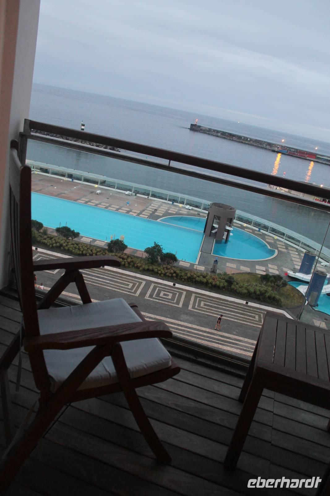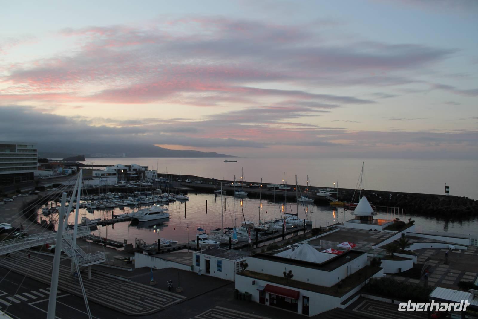 Den ersten Morgen auf den Azoren begrüßten viele von uns von ihrem Balkon mit Blick auf den Hafen - wunderbar. Danach ging es ans reichhaltige Frühstücksbuffet mit leckeren einheimischen Käsesorten, einheimischem Honig und sogar Sekt - für den Kreislauf .