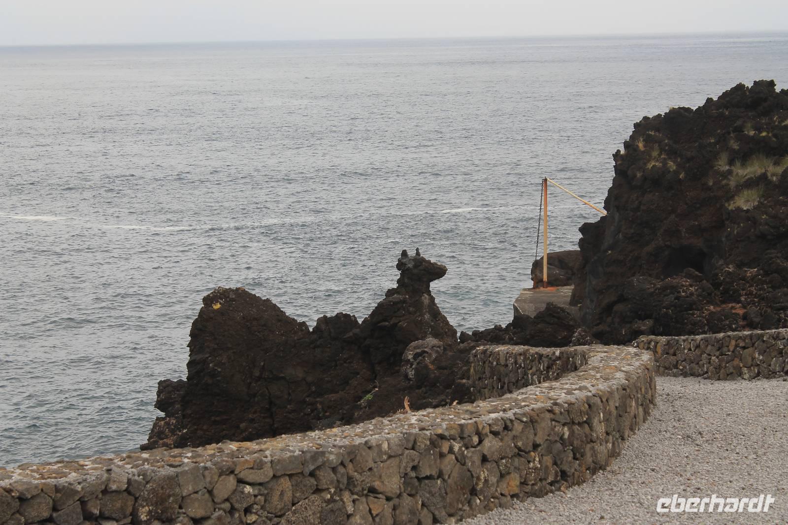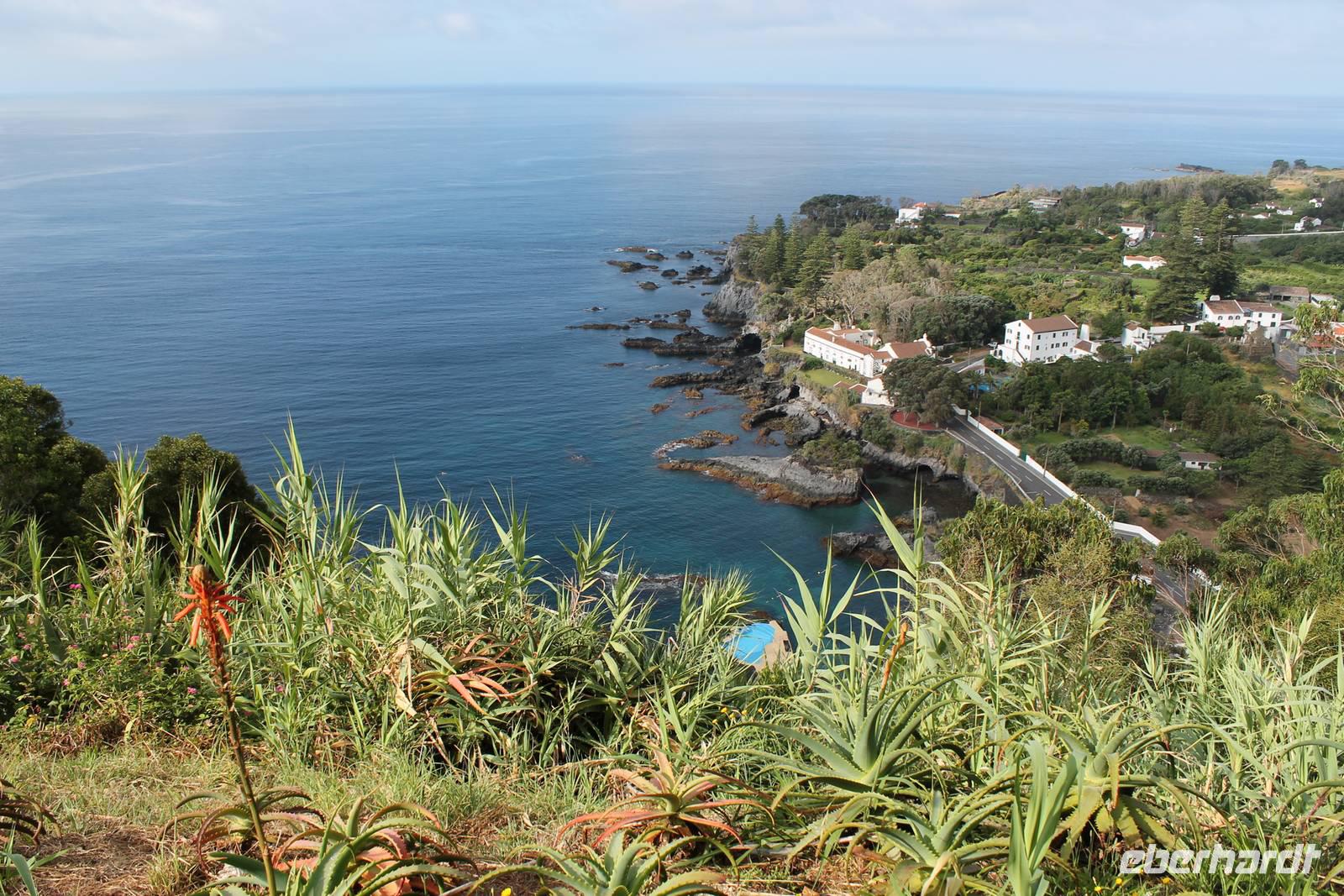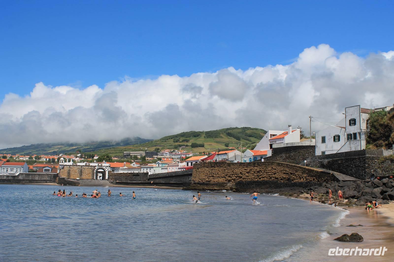Nach diesem tollen Erlebnis ging es weiter Richtung Biscoitos, wo wir am Weinmuseum stoppten. Zuerst erzählte Paula viel über die Geschichte des Weinanbaus und wir warfen einen Blick in das kleine Museum. Dann konnten 3 Weine verkostet werden: Verdelho als Tafelwein, Chico Maria und Angelica - natürlich mit steigendem Alkoholgehalt . Im Anschluss daran fuhren wir zu den Meeresschwimmbecken. Dort legten wir auf Einladung von Eberhardt TRAVEL eine Kaffeepause mit Dona Amelia-Kuchen ein, der wohl berühmteste Kuchen der Azoren. Nach der Rückfahrt entlang der Westküste waren wir