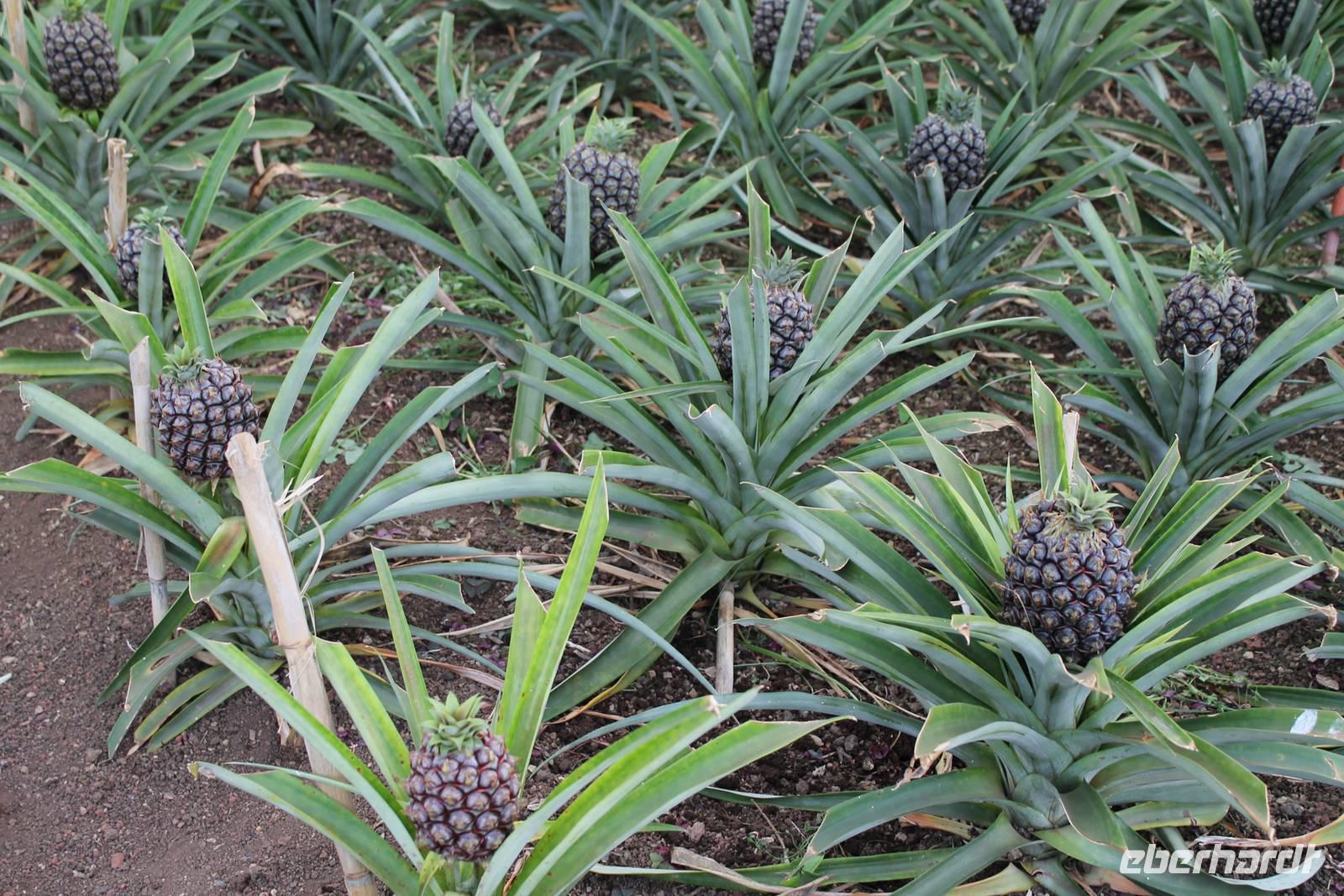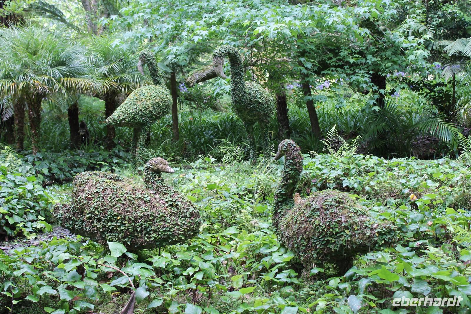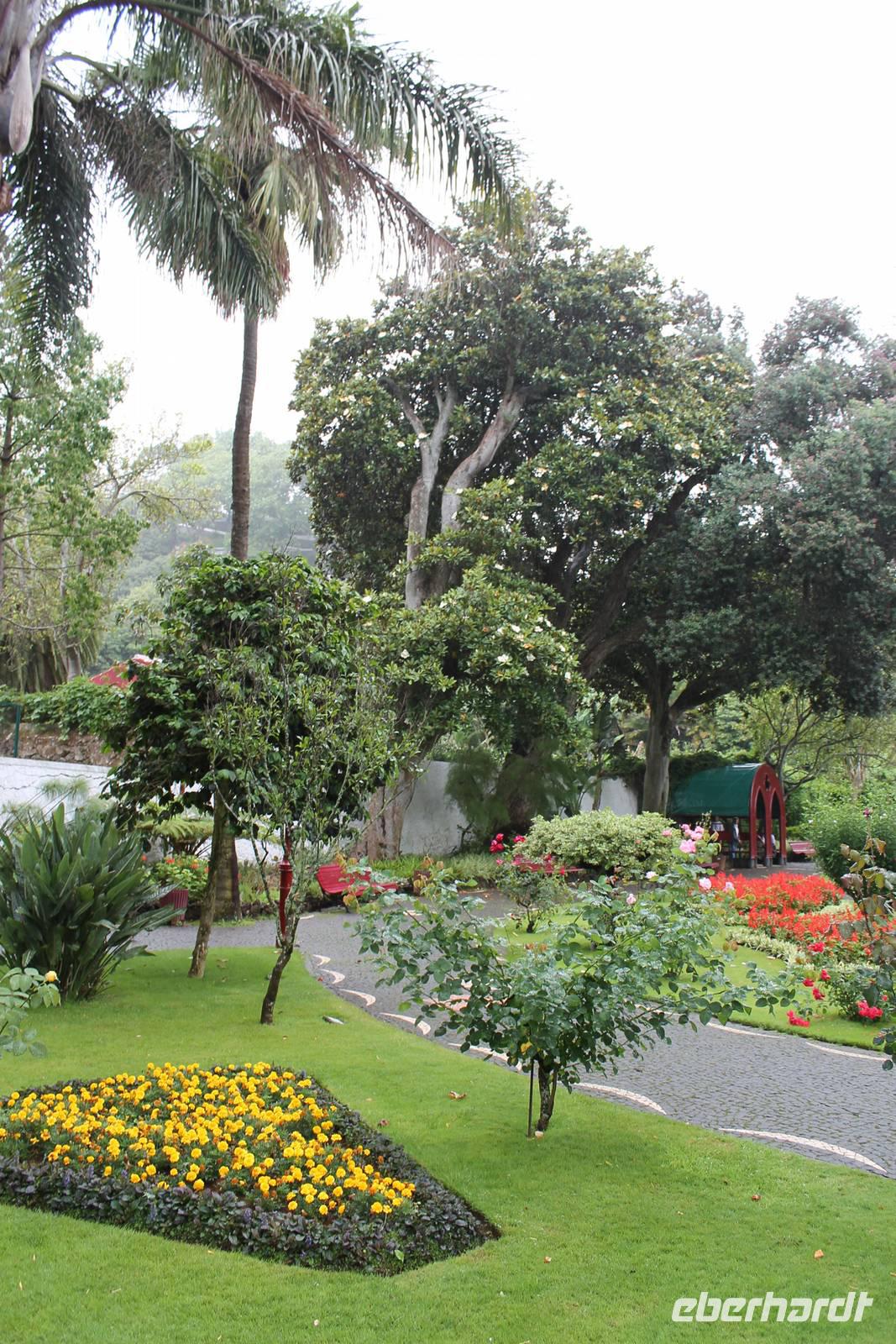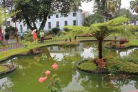 Nach diesem interessanten Besuch fuhren wir zum See von Furnas, wo die Töpfe aus den warmen Erdlöchern geholt werden, die das spätere Mittagessen beinhalten: "Cozido das Furnas" - ein Topf aus verschiedenen Fleischsorten, Würstchen, Yams, Kartoffeln, Kohl, Möhren. Nachdem auch unser Topf gehoben wurde, begaben wir uns zum angeschlossenen Restaurant des Hotels Terra Nostra, dem „Casino". Dort erwartete uns zuerst die Caldo Verde - Grüne Suppe, dann der "Cozido das Furnas" und zum Abschluss herrlich frische zuckersüße Ananas. Natürlich waren auch Brötchen, diverse Getränke und Kaffee inkludiert. Frisch gestärkt besuchten wir den Park Terra Nostra, in dem man nicht nur im 38 Grad Celsius warmen Wasser baden, sondern auch Pflanzen aus aller Welt sowie Kois und schwarze Schwäne bewundern kann. Begeistert fuhren wir weiter und legten noch einen Stopp am Miradoro do Pico do Ferra (Eisenberg) mit Blick hinunter zum Lagoa das Furnas-Gebiet ein. Auch der Besuch der Teefabrik „Plantacoes de Cha Gorreana", 1883 gegründet, stand heute noch auf dem Programm. Nachdem uns Serafina einiges dazu erklärt hatte, konnten wir die Fabrik besichtigen und auch Tee verkosten. Noch ein kurzer Fotostopp an der Steilküste des Inselnordens und schon ging es zurück nach Ponta Delgada. 19.15 Uhr trafen wir uns für ein gemeinsames Abendessen, wer wollte. Wir aßen am Hafen im Restaurant "La Cantina" - es gab für jeden Geschmack etwas und stellte uns alle zufrieden, allerdings dauerte die Abrechnung ziemlich lang... Wir spazierten im herrlichen Mondlicht zurück zu unserem gegenüberliegenden Hotel.