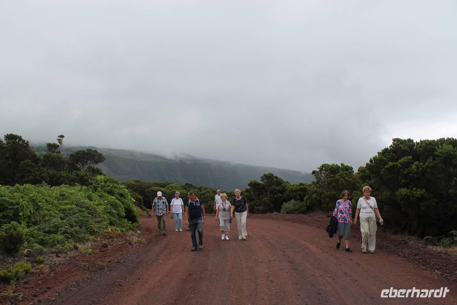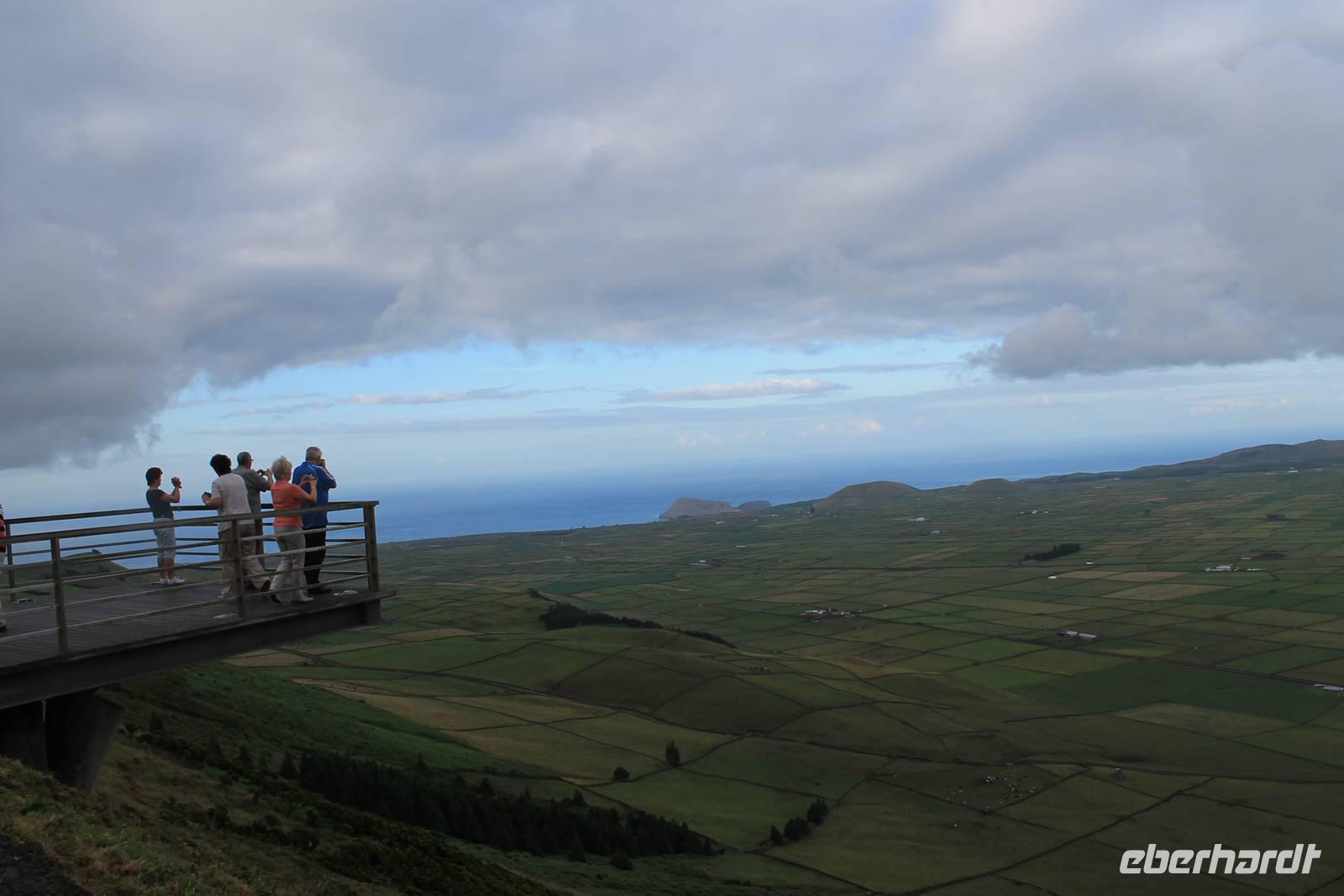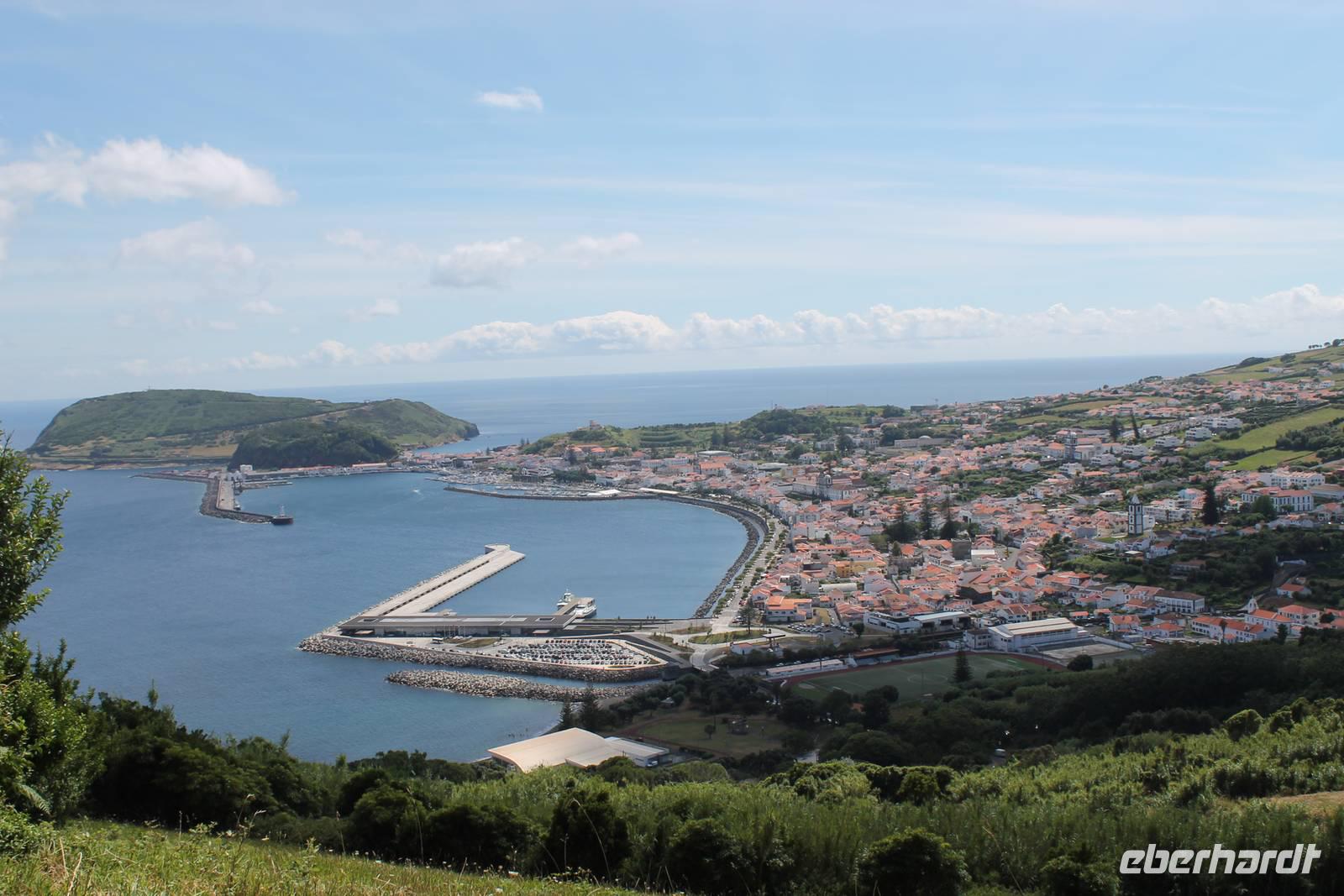 Heute mussten wir schon 7.50 Uhr Richtung Flughafen starten. Doch Paula hatte noch eine kleine Überraschung für uns. Da gestern die Wolken ziemlich tief hingen, hatten wir einen Aussichtspunkt ausgelassen: Serra do Cume. Die Fahrt dorthin war doch sehr abenteuerlich, aber oben angekommen, hatte man einen tollen Blick auf die sogenannte „Patchworkdecke" von Terceira. Am Flughafen checkten wir unser Gepäck ein und verabschiedeten uns von Paula. Während des Fluges nach Faial hatte man teilweise einen tollen Blick auf die Inseln Terceira, Sao Jorge und Pico. Nach der Landung in Faial wurden wir von der ehemaligen Hamburgerin Manuela empfangen, die seit 18 Jahren auf Pico lebt. Nach zwei Azoreanerinnen musste man sich erst einmal wieder umgewöhnen, aber an dieser Stelle spreche ich meiner Meinung nach im Namen aller, dass alle Drei auf ihre Weise einen tollen Beitrag zu unserer Azoren-Reise geleistet haben.