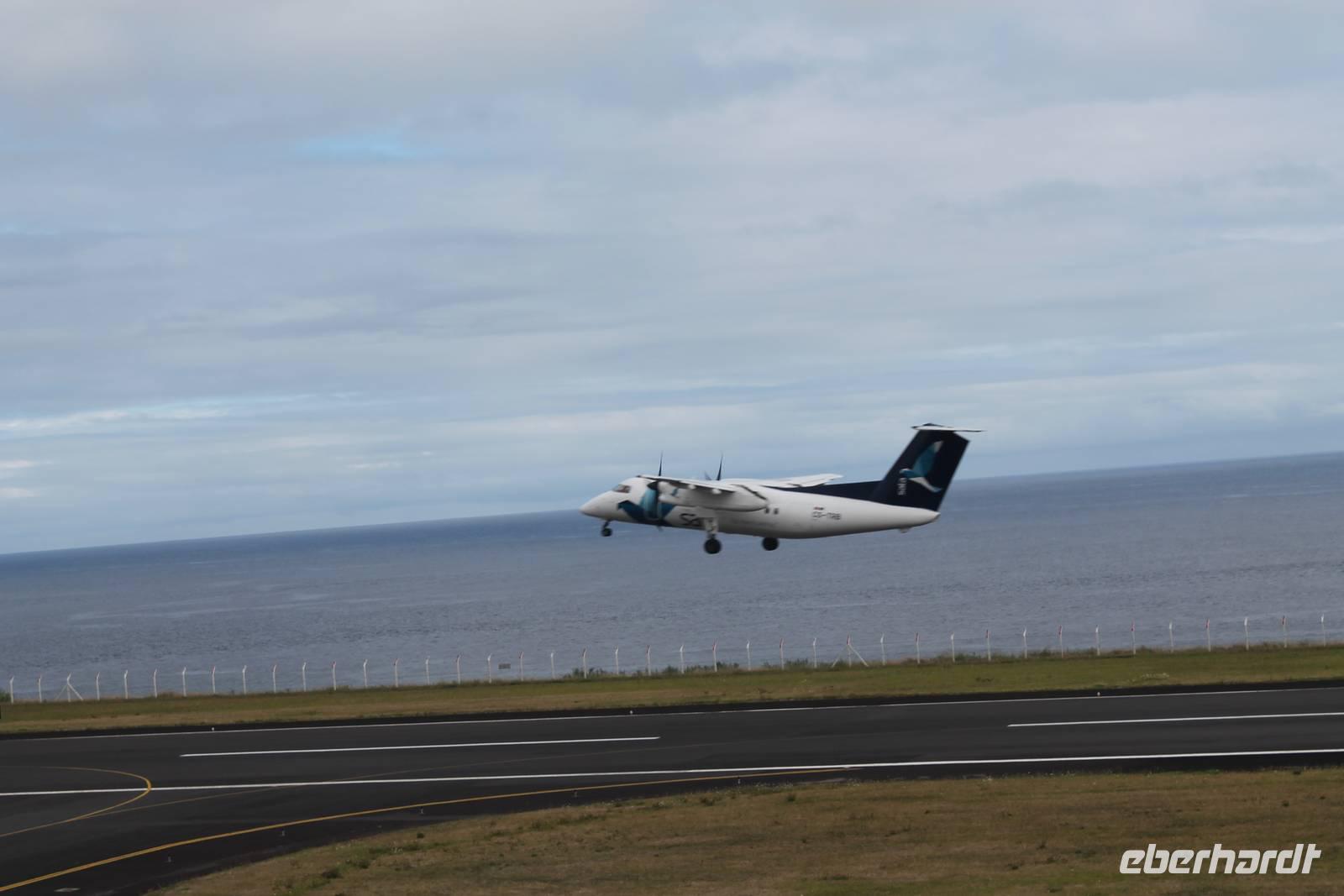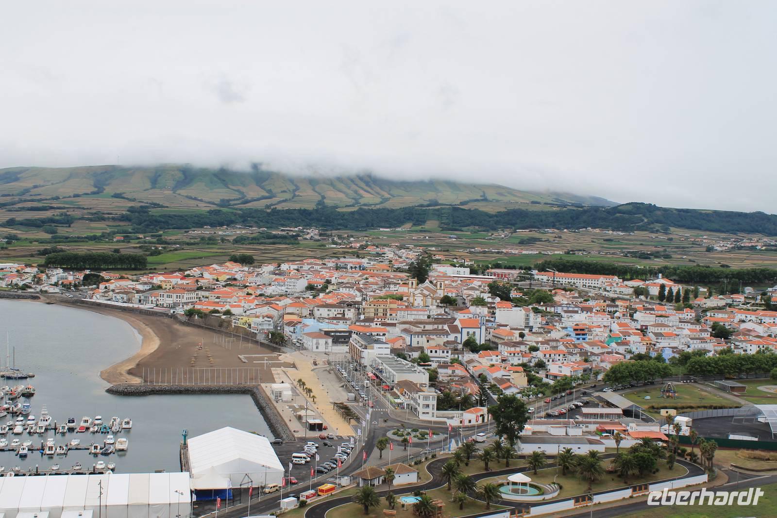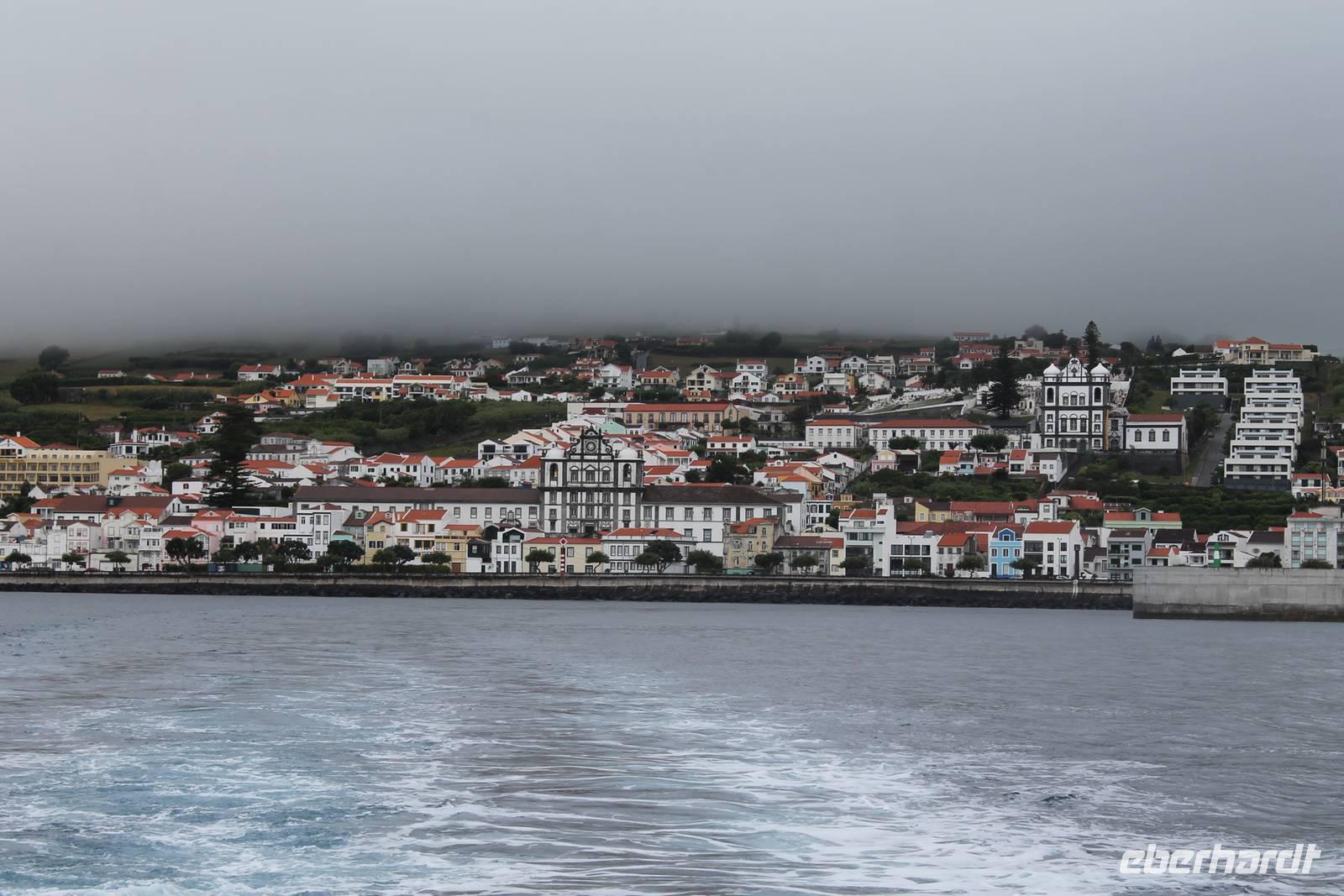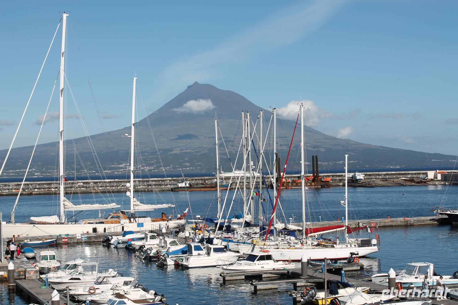 Heute mussten wir schon 7.50 Uhr Richtung Flughafen starten. Doch Paula hatte noch eine kleine Überraschung für uns. Da gestern die Wolken ziemlich tief hingen, hatten wir einen Aussichtspunkt ausgelassen: Serra do Cume. Die Fahrt dorthin war doch sehr abenteuerlich, aber oben angekommen, hatte man einen tollen Blick auf die sogenannte „Patchworkdecke" von Terceira. Am Flughafen checkten wir unser Gepäck ein und verabschiedeten uns von Paula. Während des Fluges nach Faial hatte man teilweise einen tollen Blick auf die Inseln Terceira, Sao Jorge und Pico. Nach der Landung in Faial wurden wir von der ehemaligen Hamburgerin Manuela empfangen, die seit 18 Jahren auf Pico lebt. Nach zwei Azoreanerinnen musste man sich erst einmal wieder umgewöhnen, aber an dieser Stelle spreche ich meiner Meinung nach im Namen aller, dass alle Drei auf ihre Weise einen tollen Beitrag zu unserer Azoren-Reise geleistet haben.