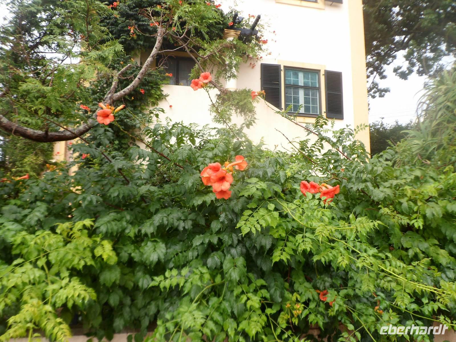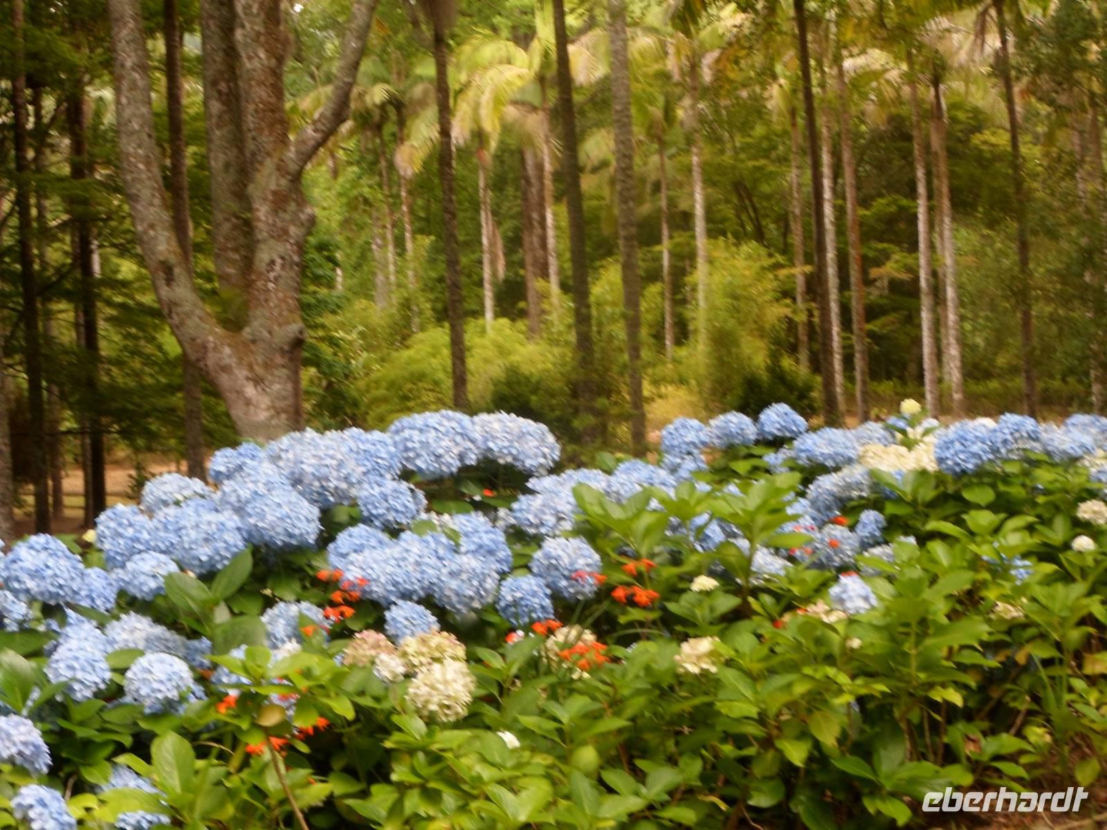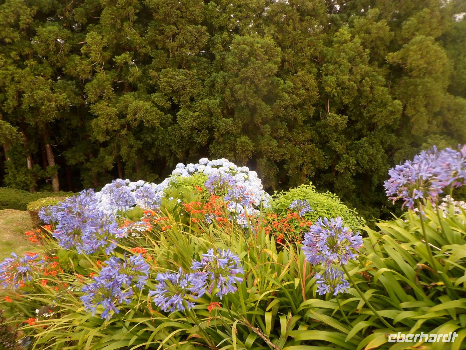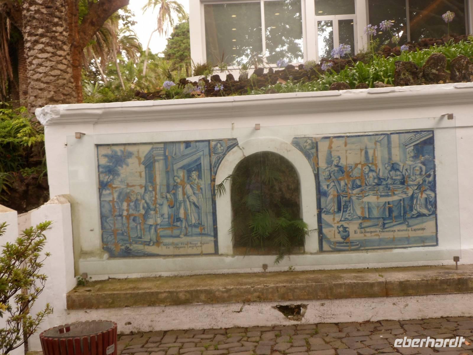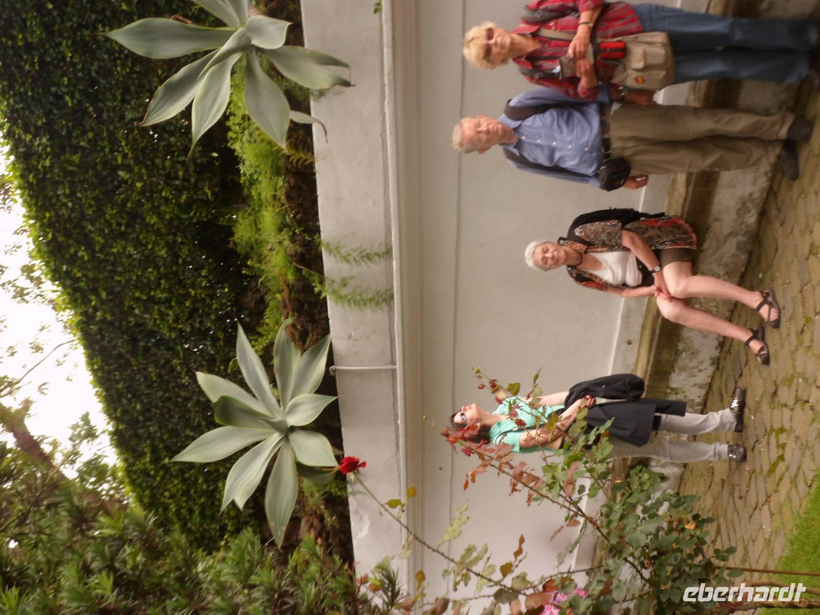Einige badeten in der schönen Bucht von Horta, andere ruhten sich aus und ließen die Seele baumeln. 12.00 Uhr brachten wir unsere Koffer in den Gepäckraum des Hotels und wir starteten zum Stadtrundgang verbunden mit einer etwa 50 Minütigen Wanderung zum Botanischen Garten. Es ging steil bergauf und war bei den Temperaturen von 26°C und hoher Luftfeuchtigkeit sehr anstrengend. Belohnt wurden wir durch die tollen Aussichten auf die Stadt, die Insel Pico und die Insel Sao Jorge. Auch der Garten hatte einiges zu bieten.