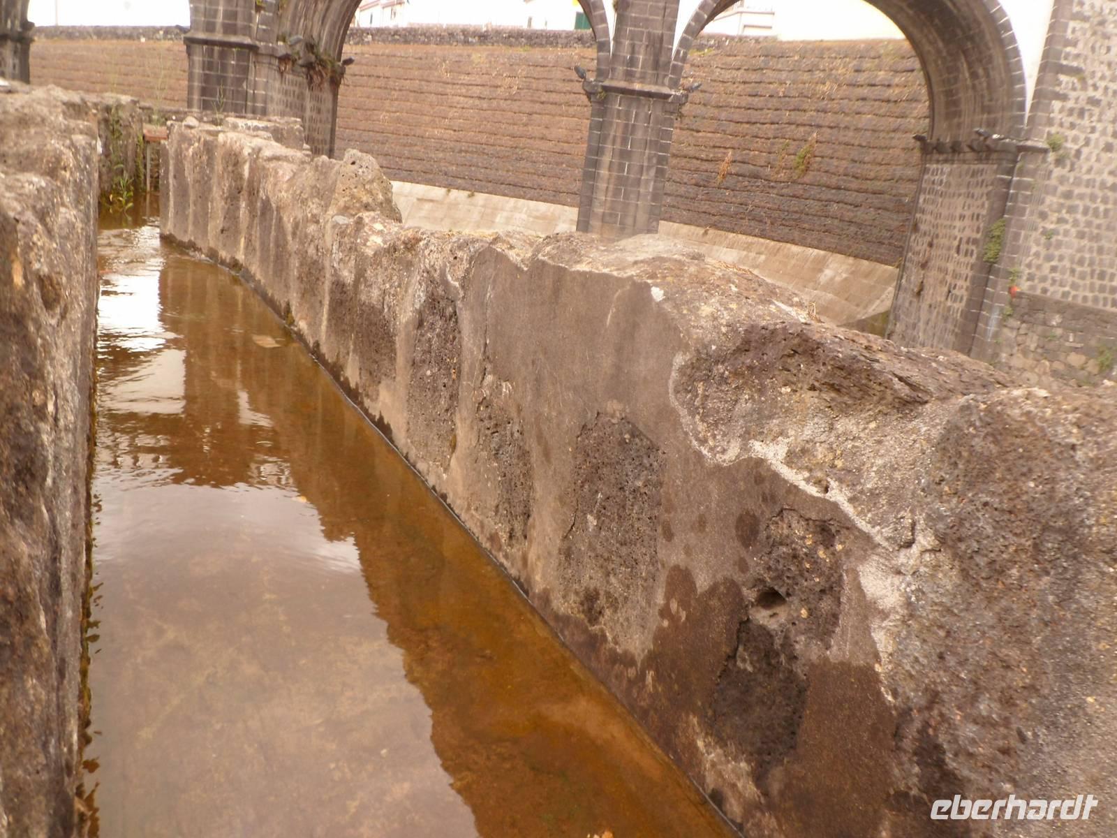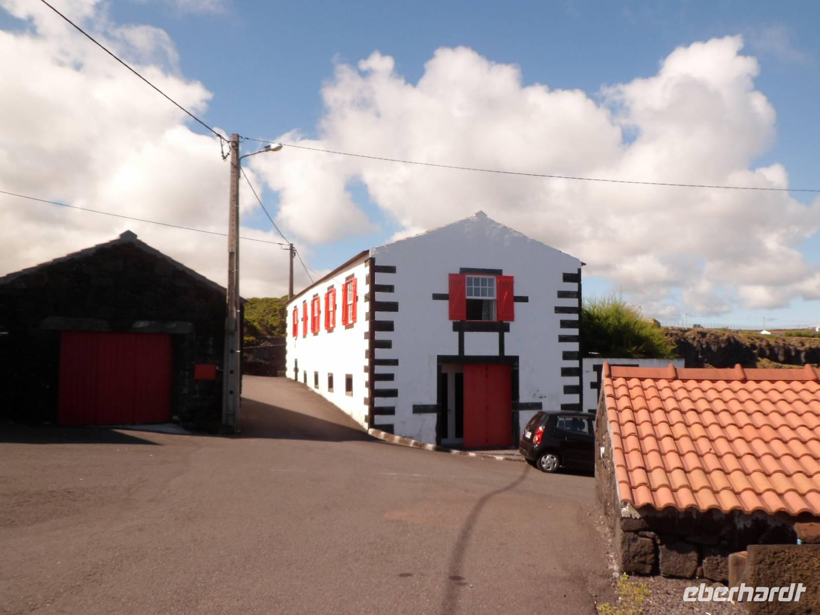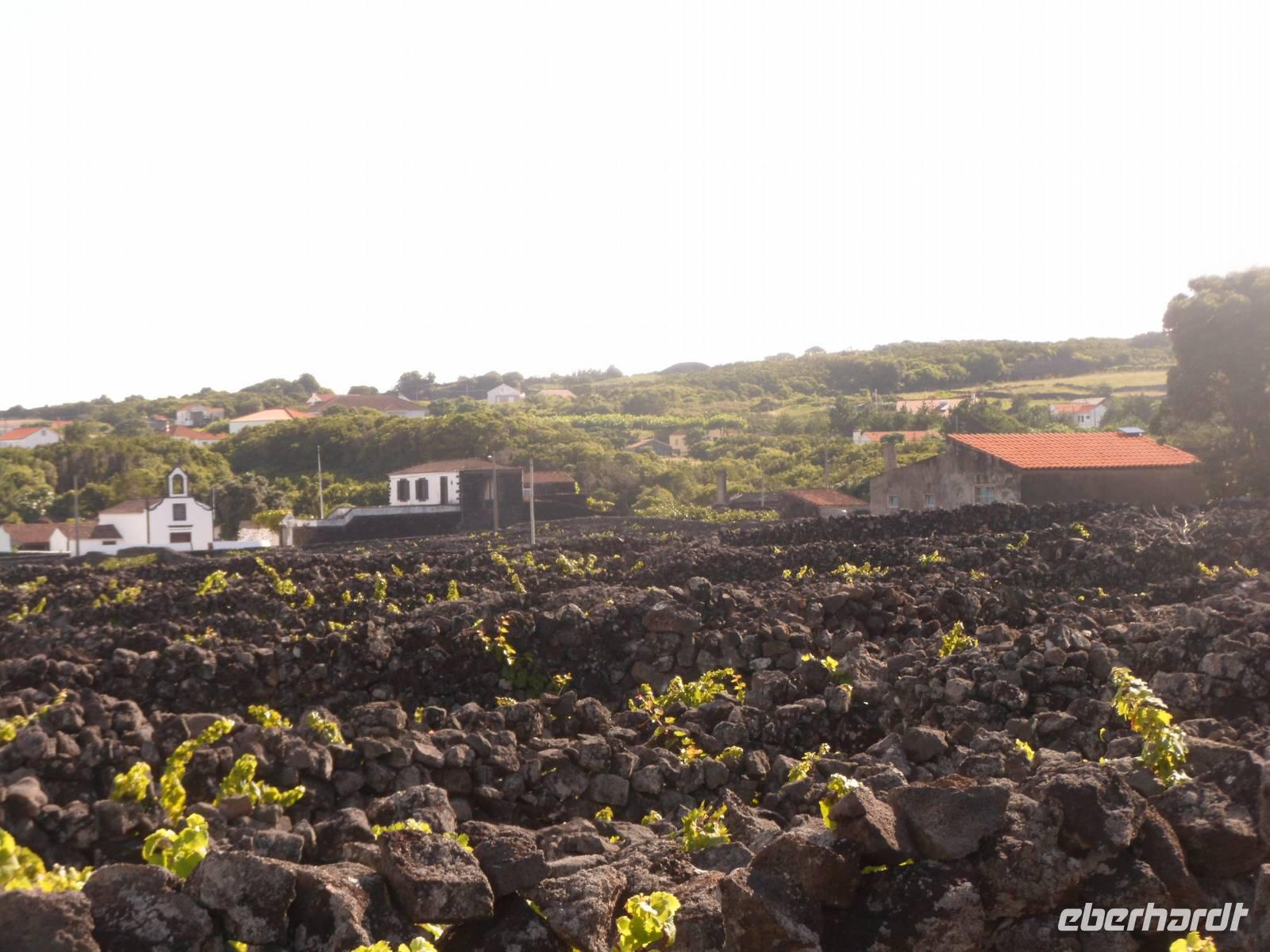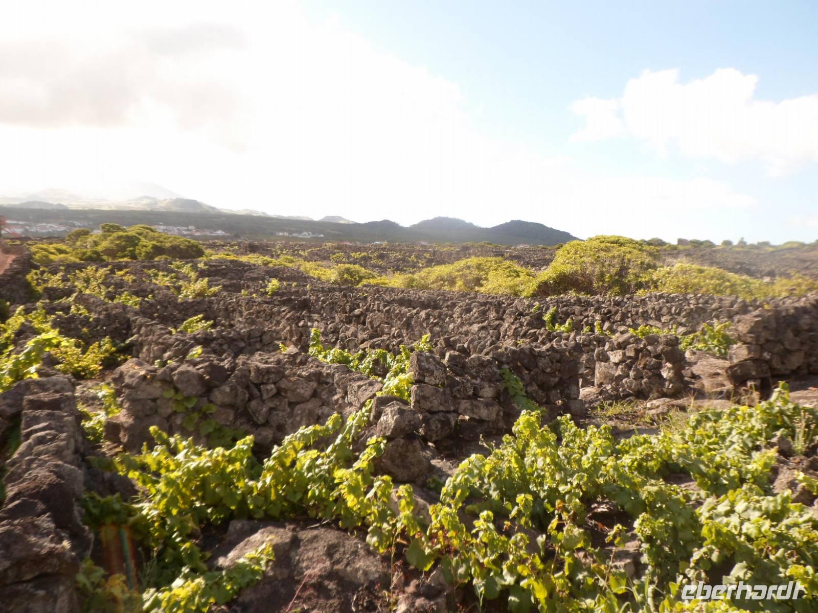 Angekommen in Madalena, wartete ein Bus auf uns. Wir begannen unsere Rundfahrt. Zuerst besuchten wir eine flämische Windmühle mitten im Weinanbaugebiet. Eine einzigartige Kulturlandschaft die zum Weltkulturerbe erklärt wurde. Wer sie besichtigt, betritt ein Labyrinth aus schwarzen Mauern aus denen die grünen Weinreben hervorlugen. Besondere Trauben wachsen auf diesen fruchtbaren Boden.