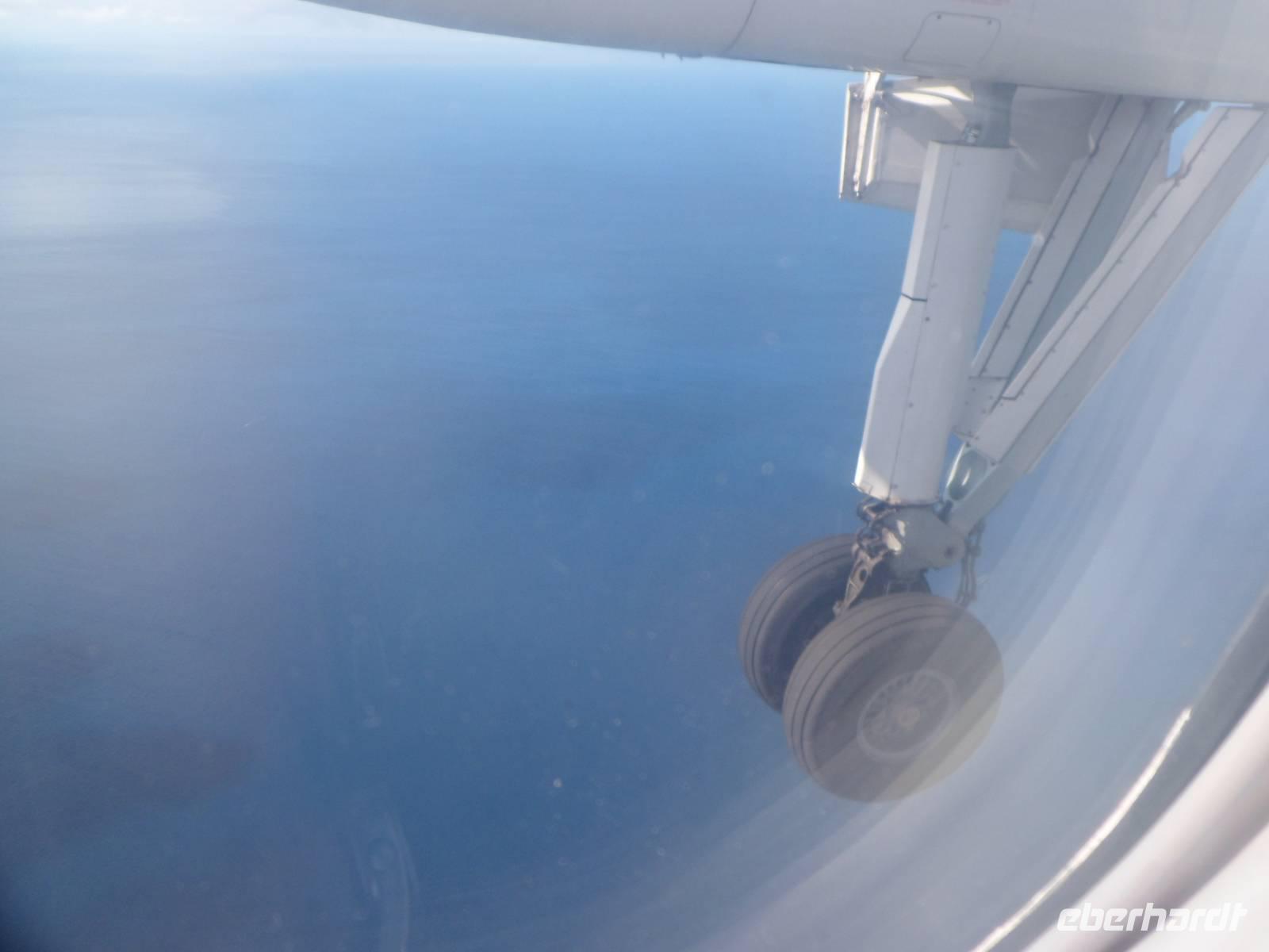 Noch ein Gin-Tonic in Peters Sportcafe, dann holte uns der Bus 18.00 Uhr ab zum Flughafen. Leider mußten wir auf das Flugzeug warten und flogen mit Verspätung ab.