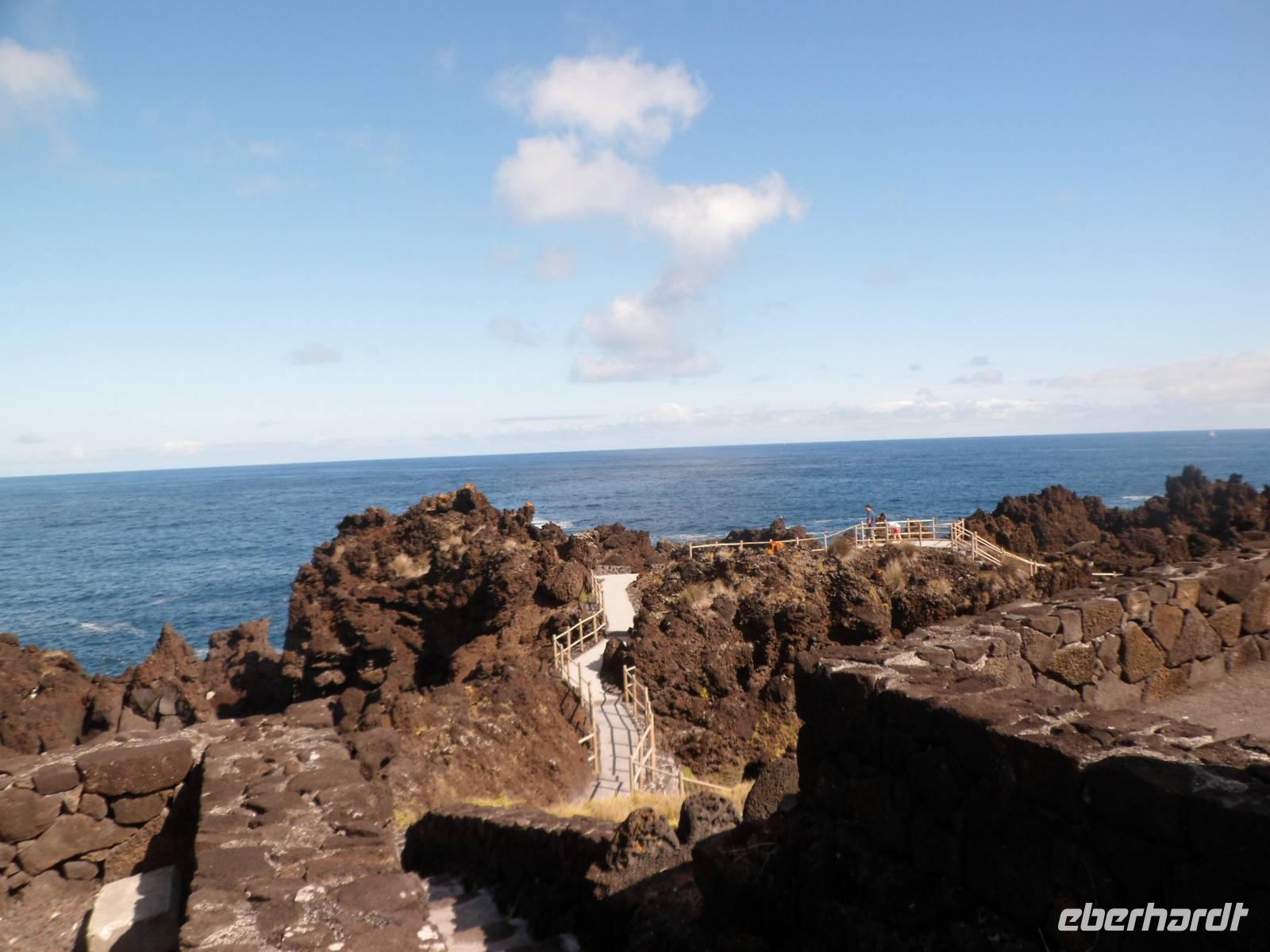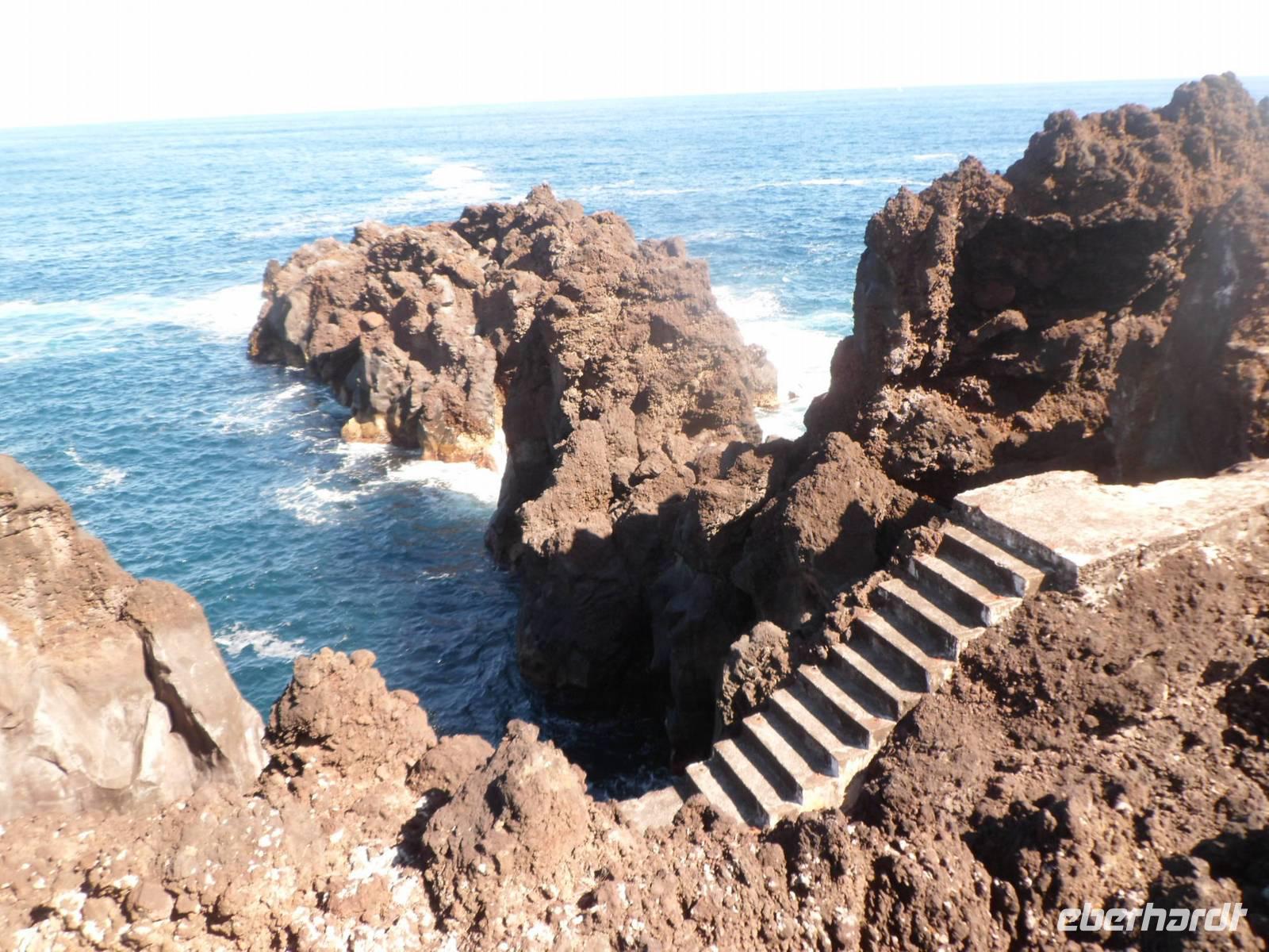 Nun fahren wir an der Nordküste entlang und stoppen in den kleinen Ort Carrocho. Bei einem Spaziergang bestaunen wir die angelegten Meerwasserschwimmbecken und hätten gerne ein Bad genommen. Auch die kleinen Anwesen mit den Häusern aus dunklen Lavaquadern, bunten Haustüren und Fensterläden erweckte unsere Aufmerksamkeit. So lieblich , doch können wir uns vorstellen wie schwer das Leben der Bewohner war. Heute sind es zumeist Feriendomizile.