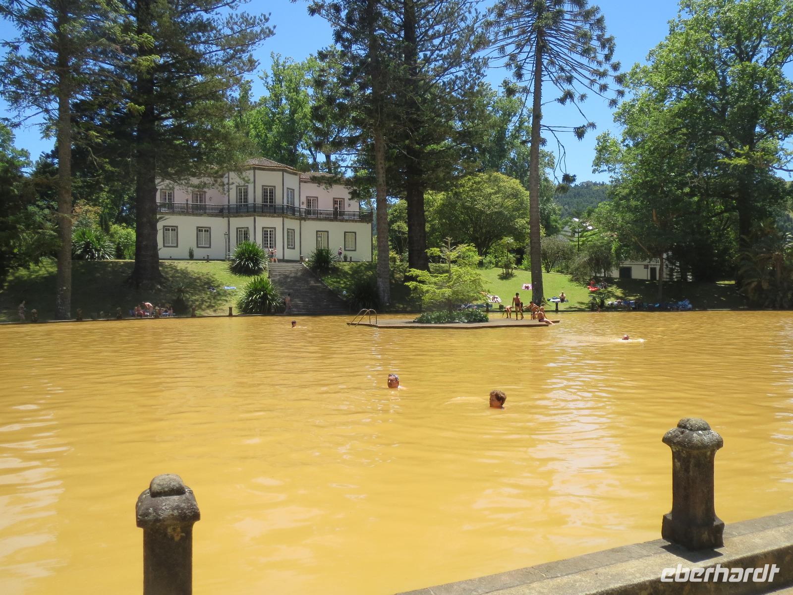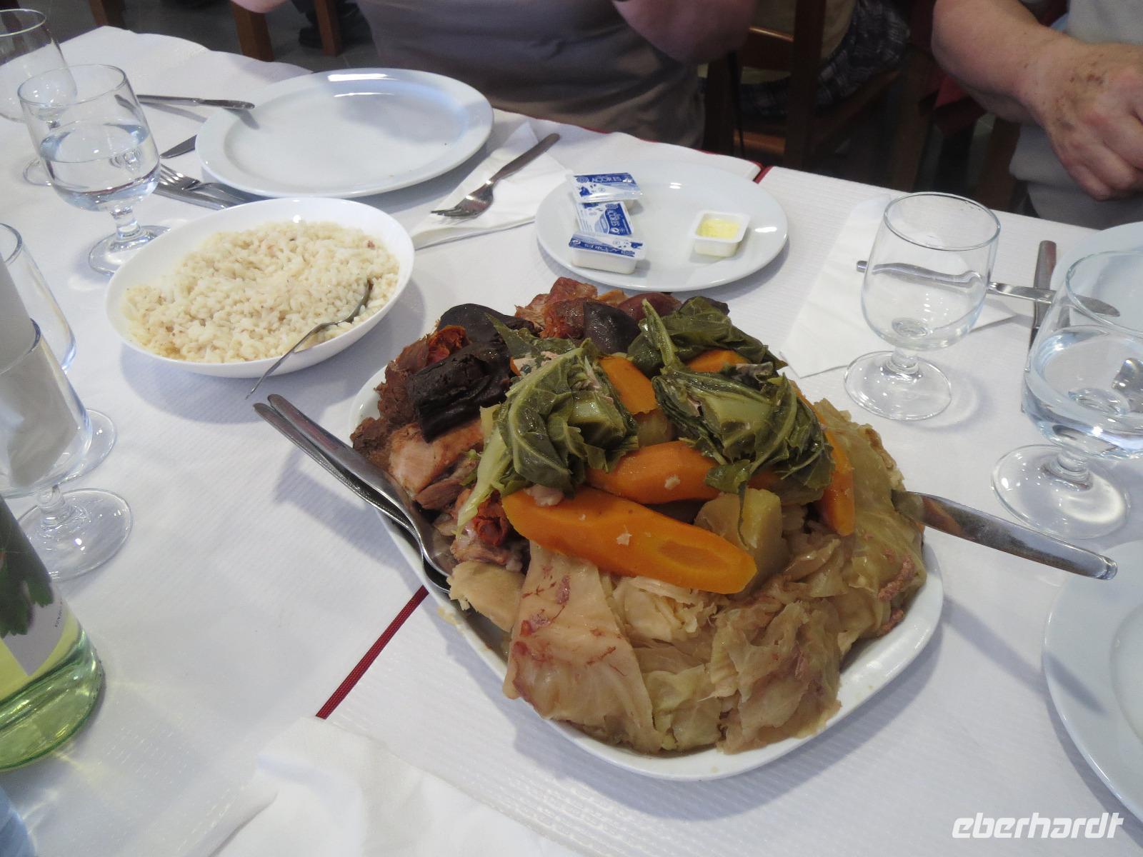 Heute waren wir im Paradies auf Erden. Wir starteten unseren ersten gemeinsamen Ausflugstag auf der Teeplantage von Gorreana - im einzigsten Teeanbaugebiet Europas im Norden der Insel Sao Miguel. Wir konnten bei der Weiterverarbeitung nach der Ernte zusehen. Alles wird mit transmissionsgesteuerten Maschinen, wie vor hundert Jahren, verarbeitet. Selbst bei der Sortierung der Teeblätter von Hand durften wir zusehen. Nach der Besichtigung konnten wir den Tee probieren. Zahlreiche Tees wurden gekauft. Weiter ging es zum Pico do Ferro (Eisenberg), wo man einen wunderschönen Ausblick auf den See Lagoa das Furnas hatte. Im Anschluss besuchten wir die heißen Quellen von Furnas - viele probierten die unterschiedlichen Heilquellen. Es ging wieder zurück zum Ufer des Sees Lagoa das Furnas. An dessen Ufer war bereits seit 6 Stunden unser Mittagessen "Cozido das Furnas" vergraben. Dieses Essen ist ein Topf mit geschichtetem Fleisch, Kohl, Karotten und Süßkartoffeln, welches im eigenen Sud unter der Erde gart. Bei der Ausgrabung unseres Topfes waren wir live dabei. Bei einem Glas Wein genossen wir in Tony's Restaurant die Köstlichkeiten aus der Erde. Als Nachtisch aßen wir eine Scheibe reifen Ananas von der Insel - die war wirklich sehr lecker. Den Nachmittag verbachten wir im Park Terra Nostra. Im Eingangsbereich des Parks befindet sich ein großes Thermalbecken, in dem man bei Bedarf ein wohltuendes Bad genießen kann. Die meisten Gäste begleiteten unsere Reiseleiterin auf dem Rundgang durch den Park. An jeder Ecke sahen wir andere Blumen, u. a. Kamelien, Magnolien, Azaleen, Strelitzien und Hibiskus. Und wie überall auf der Insel blühten die Hortensien in den unterschiedlichsten Farben. Zum Abschluss des Tages besichtigten wir die Kirche St. Michael in der alten Hauptstadt Vila Franco do Campo. Den Abend beschlossen wir gemeinsam beim Willkommensabendessen im Restaurante Anfiteatro.