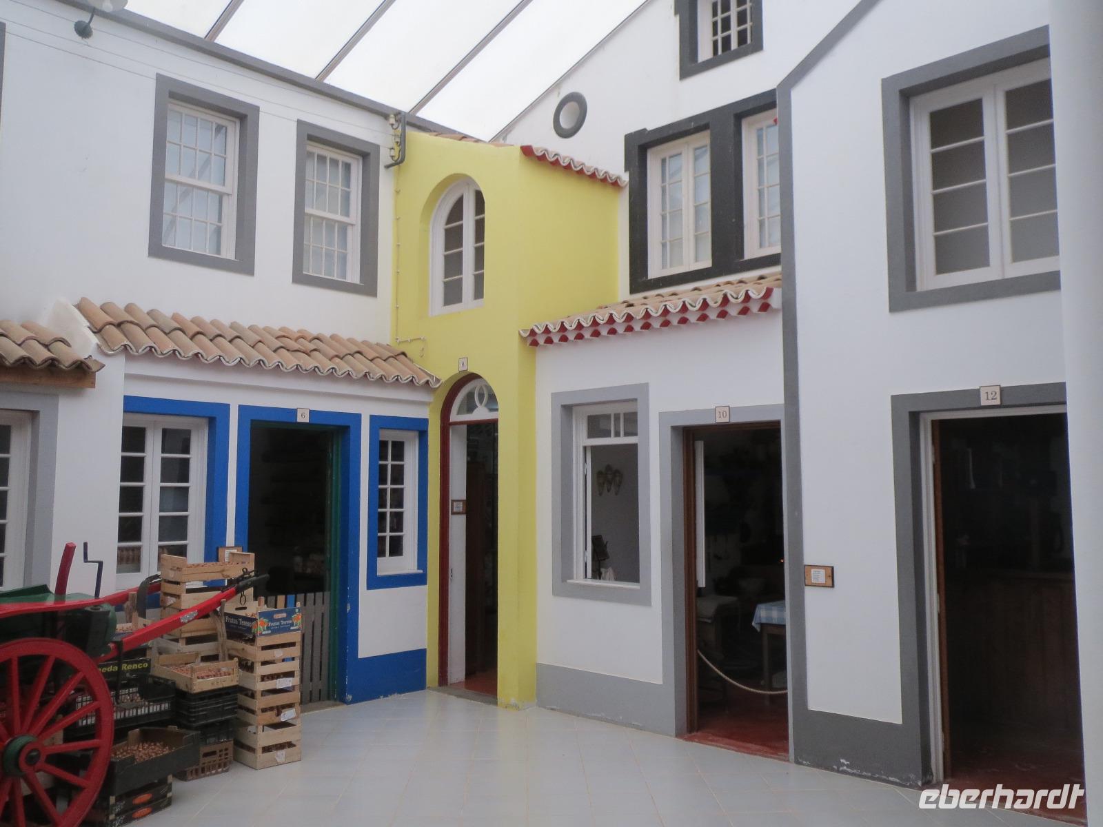 Leider starteten wir heute mit leichtem Regen und Nebel in den Tag. Zunächst besuchten wir eine Ananasplantage und konnten uns dort die unterschiedlichen Stadien des Wachstums in den Gewächshäusern ansehen. Wer wollte konnte danach Ananasschnaps probieren. Danach besuchten wir das ethnografische Museum in Capelas. Eine Art Heimatmuseum mit allen Sachen aus dem täglichen Leben der Azorianer. Mit Konsumartikeln, aber auch alle Arten von Werkstätten von Handwerkern waren zu sehen. Es wurde von einem Rentnerehepaar privat aufgebaut und geht jetzt an die Gemeinde über. Am Aussichtpunkt "Vista do Rei", unserem eigentlichen Höhepunkt des Tages, war nichts zu sehen außer Nebel, Nebel und Nebel. Die grüne und blaue Färbung der Seen Lagoa Azul und Lagoa Verde konnte man nur erahnen. Vor unserem gemeinsamen Mittagessen besuchten wir noch die Kirche Sao Nicolau in Sete Cidades. Den heutigen Tag schlossen wir bei einem 2-stündigen Stadtrundgang durch Ponta Delgada ab. Wir liefen durch den Park Antonio Borges, über den Platz des 5. Oktobers mit der Hoffnungskirche, vorbei am Rathaus mit St. Michael, bestaunten die Hauptkirche St. Sebastian und schlossen in der Markthalle.