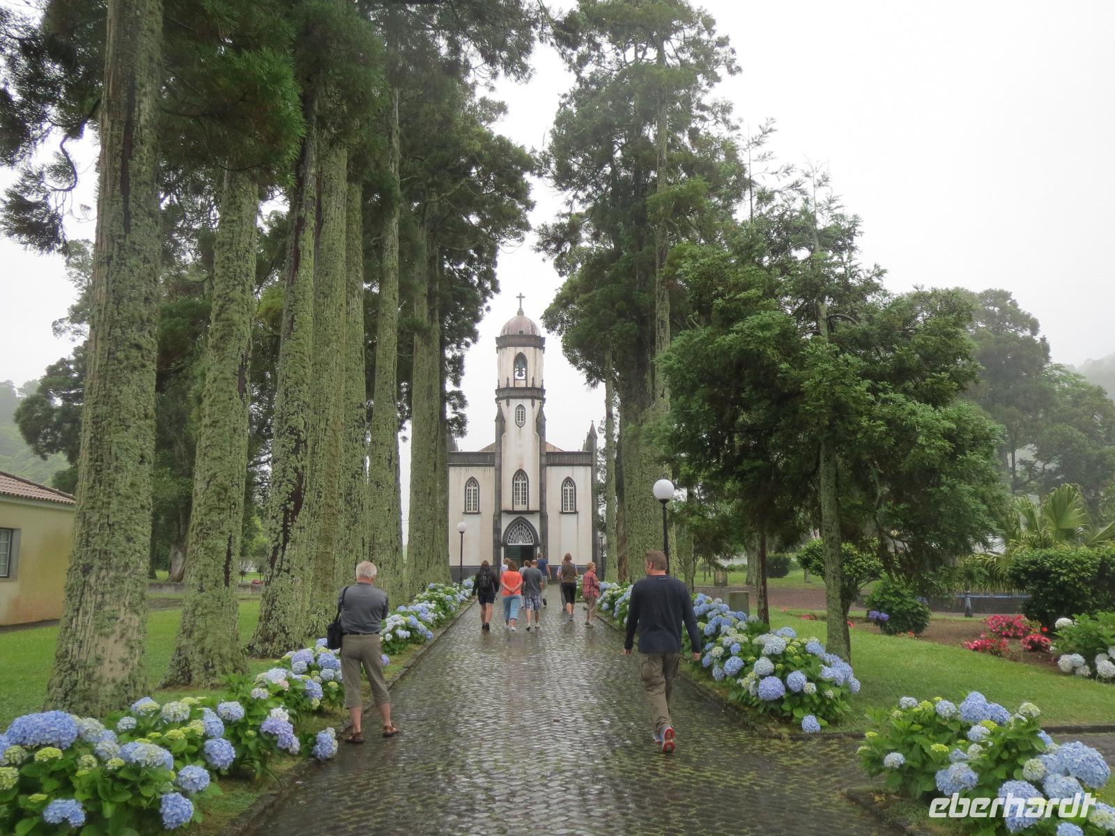Der Ganztagesausflug startete heute mit Besichtigung der Küste auf Ponta Delgada - vom Küstenort Lagoa. In Lagoa gibt es die einzige Keramikfabrik auf der Insel, die seit der Gründung noch in Familienbesitz ist und heute in der 5. Generation fortgeführt wird. Vor der Weiterfahrt liefen wir entlang der Küste durch Lagoa. Unser nächstes Ziel war der Feuersee "Lagoa do Fogo". Dort glühten unsere Fotoapparate. Dieser See befindet sich auf ca. 1.000 m Höhe und lag heute etwas im Nebel. Weiter ging es nach Ribeira Grande. Dort ließen wir uns in einem Restaurant für Einheimische nieder - es konnte zwischen gegrilltem Fleischteller, Kotelett, Schwein, Hähnchen, Fisch, Salat gewählt werden. Bei der anschließenden Stadtführung durften die unterschiedlichsten Geschmacksrichtungen in einem Likörgeschäft getestet werden. Wir besichtigen die Kirche „Igreja Matriz de Nossa Senhora da Estrela". Zum Abschluss des Tages besuchten wir den Strand Santa Barbara und Einige ließen sich ein Eis schmecken ;-)
