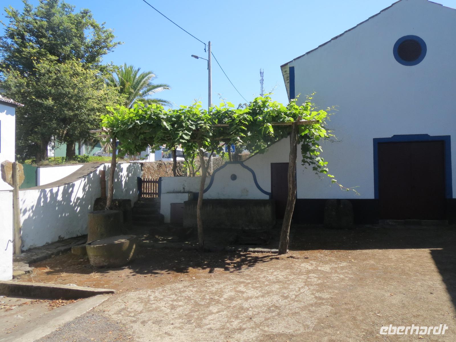Heute fuhren wir nach den Frühstück zuerst auf den Monte Brasil, welchen man schon vom Hotel aus sehen konnte. Man könnte auch sagen, das ist der Hausberg vom Hotel. Auf ihm ist eine Festung der Spanier, welche auch heute noch vom Militär genutzt wird. Von oben hatten wir einen schönen Blick auf die Hauptstadt Terceiras: Angra do Heroismo. Von dort aus ging es im Süden der Insel zu einem Aussichtspunkt mit einem Blick auf die vorgelagerten Ziegeninseln. In Sao Sebastian haben wir die gleichnamige Kirche von innen und außen in Augenschein genommen. In dieser Stadt gibt es auch schöne Imperialhäuser, eins gleich schräg gegenüber der Kirche. Weiter ging es ins Landesinnere auf einen Aussichtpunkt, den Serra do Cume (545 m). Auf der Fahrt dorthin konnten wir die kleinen mit Mauern abgetrennten Felder bestaunen. Diese Mauern sind aus Hand gestapeltes Lavagestein. Auf dem Weg zum Stadtdtrand haben wir noch ein paar Fotostopps eingelegt, u. a. bei der Maria von Padroeira. Am Stadtstrand konnten wir auch kurz die Füße im Atlantik abkühlen. Das gemeinsame Mittagessen in einer alten Mühle in Sao Sebastian war ein kulinarischer Höhepunkt - Kohlsuppe und gekochtes/geschmortes Rindfleisch mit Kartoffeln. Anschließend besuchten wir die Vulkanhöhle "Algar do Carvao". Diese wurde im Jahr 1883 entdeckt, ist 90 Meter tief, nach oben offen und am tiefsten Punkt befindet sich ein See. Treppab ging es 338 Stufen und treppauf auch wieder. Weiter fuhren wir an die Nordküste nach Biscoitos. Dort besuchten wir ein kleines Weingut und durften eine Kostprobe genießen. Die parkähnliche Poollandschaft am Hotel gefiel nicht nur uns, sondern auch den Gelbschnabelenten, welches sie nachts auch kundtaten.